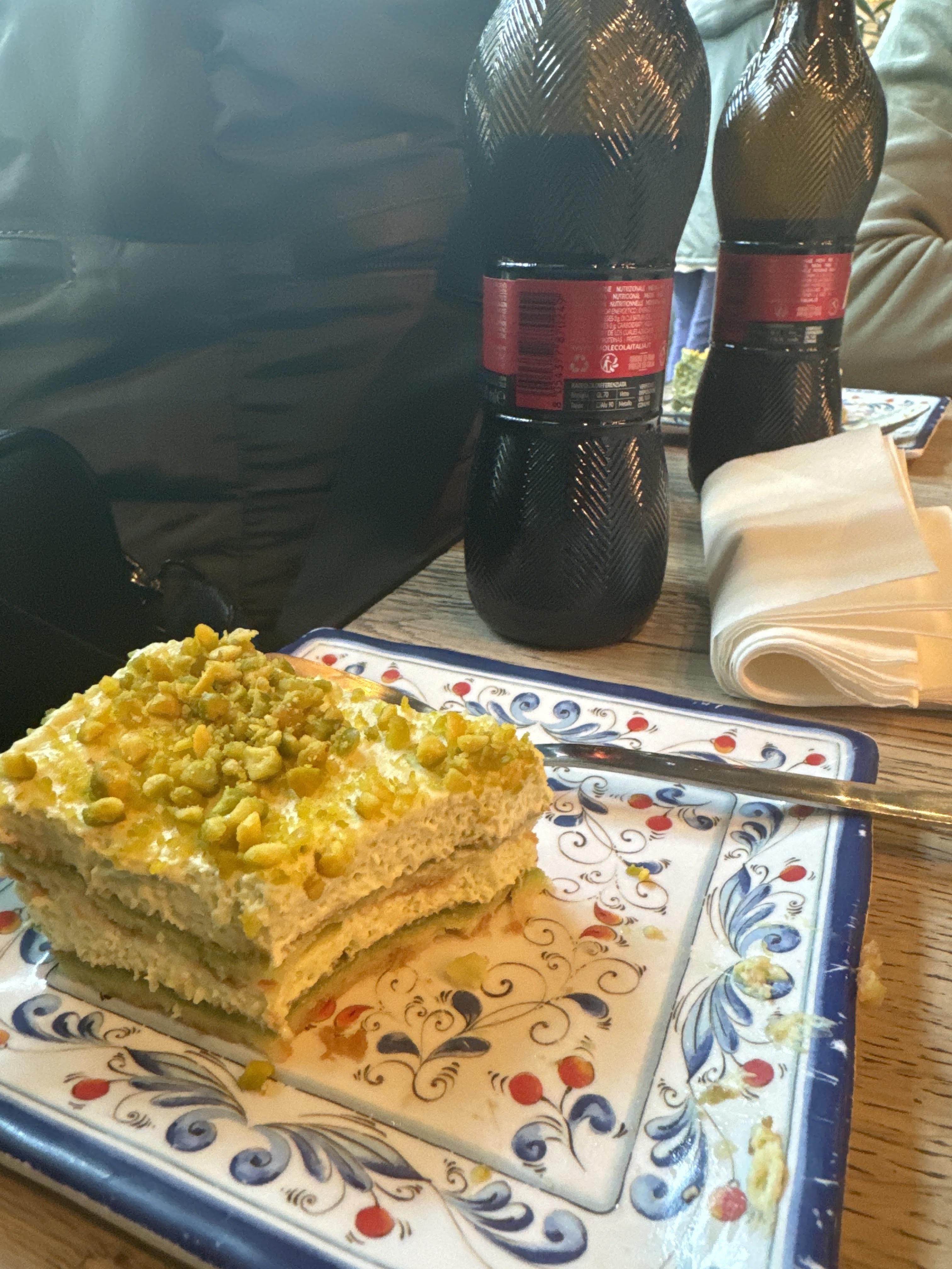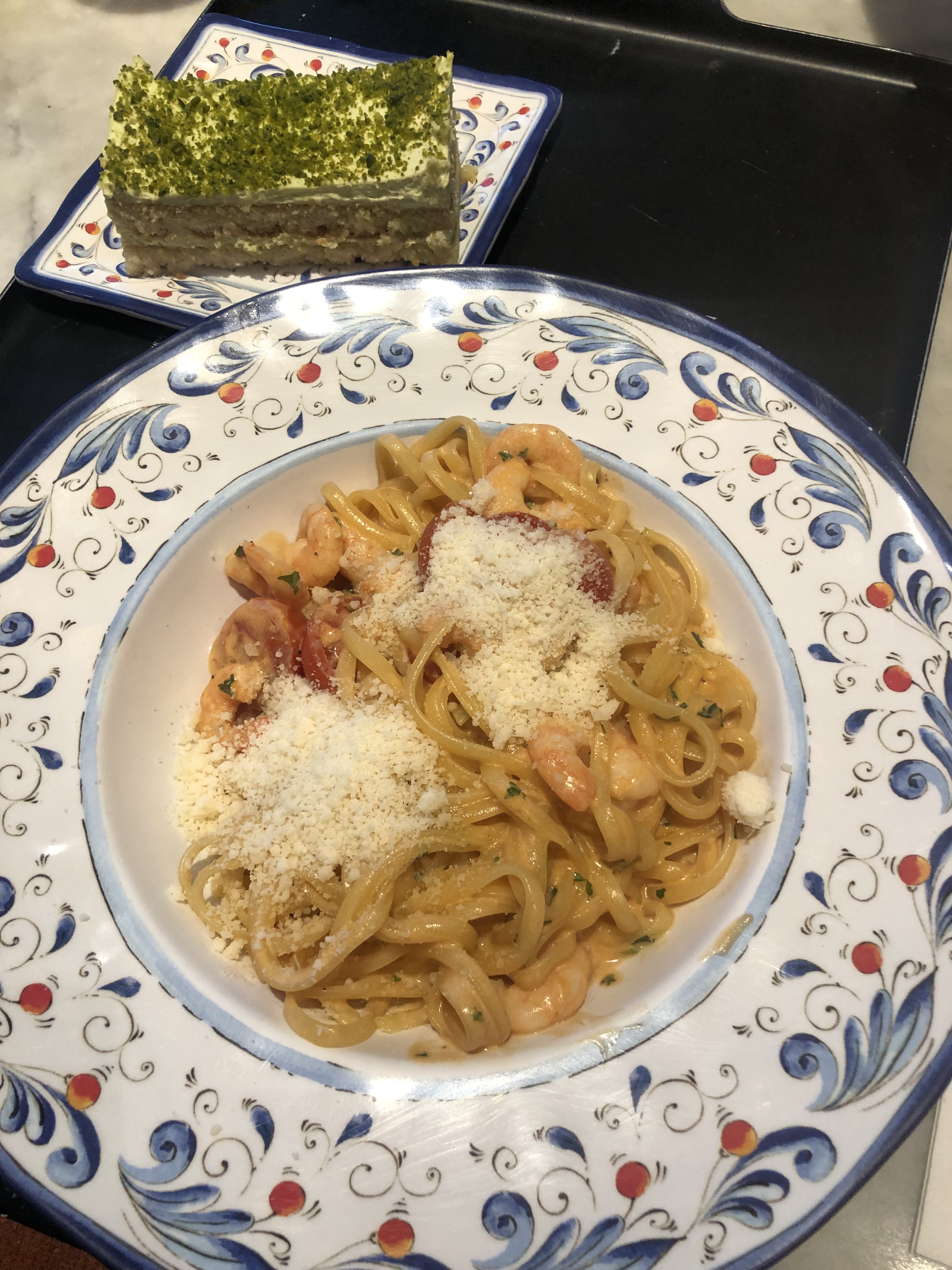 J’y suis allée deux fois déjà et à chaque fois j’ai savouré mes plats! (Pizza à la truffe et pâte à la truffe. Le tiramisu classique est bon mais pas wouaouh! J’ai mangé meilleur. Organisation à revoir parce qu’on a pas été servi toutes en même temps dommage. J’ai tout de même pris le temps de prendre en photo ce petit gâteau à la pistache qui n’a pas de goût je n’ai pas compris d’où la photo parce que je suis assez surprise…