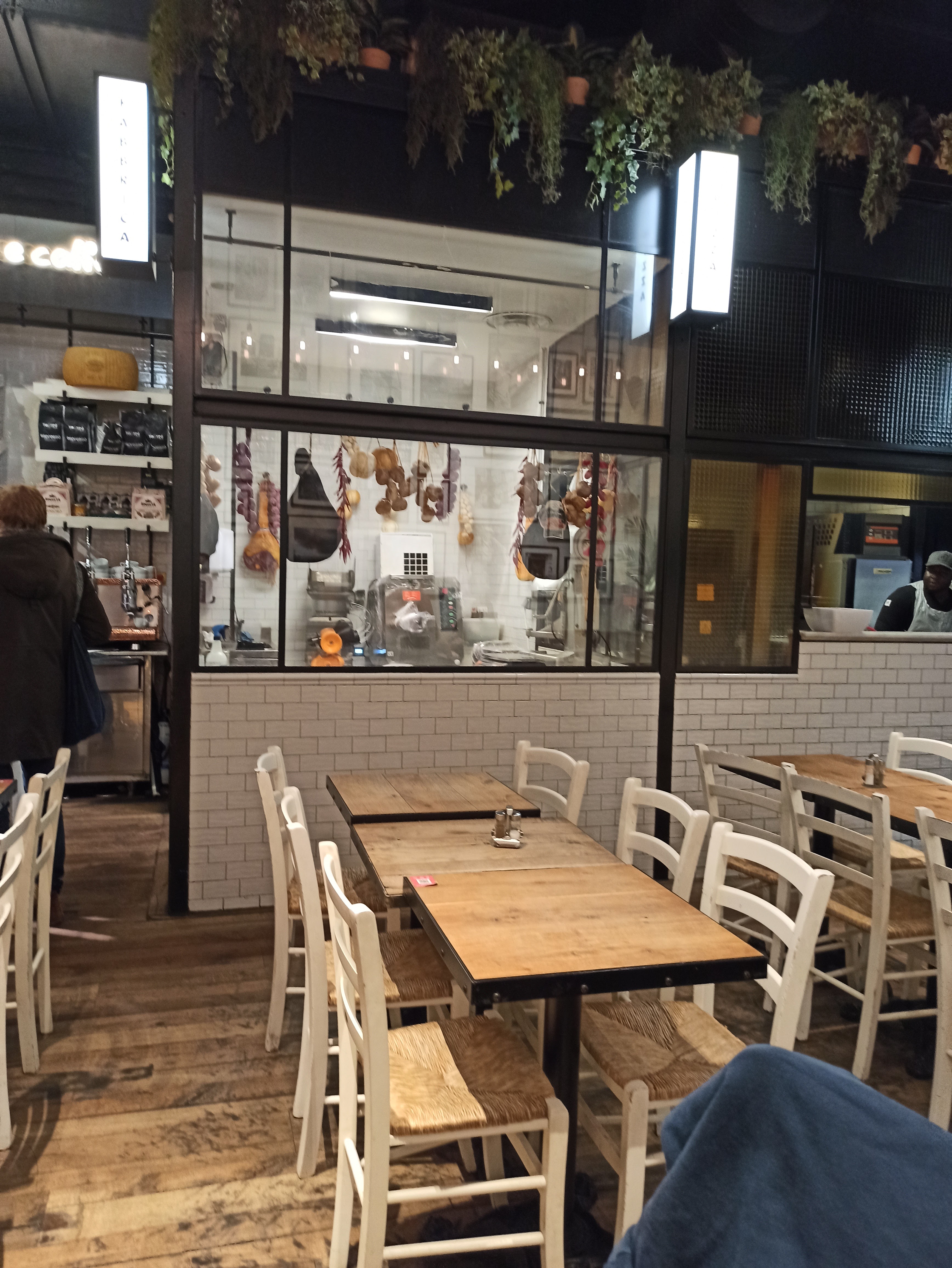 Attention : il ne s'agit pas d'un restaurant a proprement parler. C'est en fait un concept qu'on voit de plus en plus qui est dérivé du self-service mais moyen/haut de gamme on dira. 1- tu fais la queue, tu choisis ce que tu veux manger, tu commandes et tu paies. 2- on te remet un biper et tu vas t'asseoir à une des longues tables communes (donc tu mange a côté d'inconnus) 3- tu va récupérer ta commande lorsque le biper se met a sonner/vibrer Globalement, les pizzas sont bonnes et à tarifs raisonnables. Tous les à côté sont à tarif exorbitant mais tu achètes en connaissance de cause puisque c'est affiché 😆 A noter : espace bruyant ! 24/08/2023 Toujours pareil : on mange bien mais c'est pas donné. De temps en temps c'est sympa et la burrata est top 👍