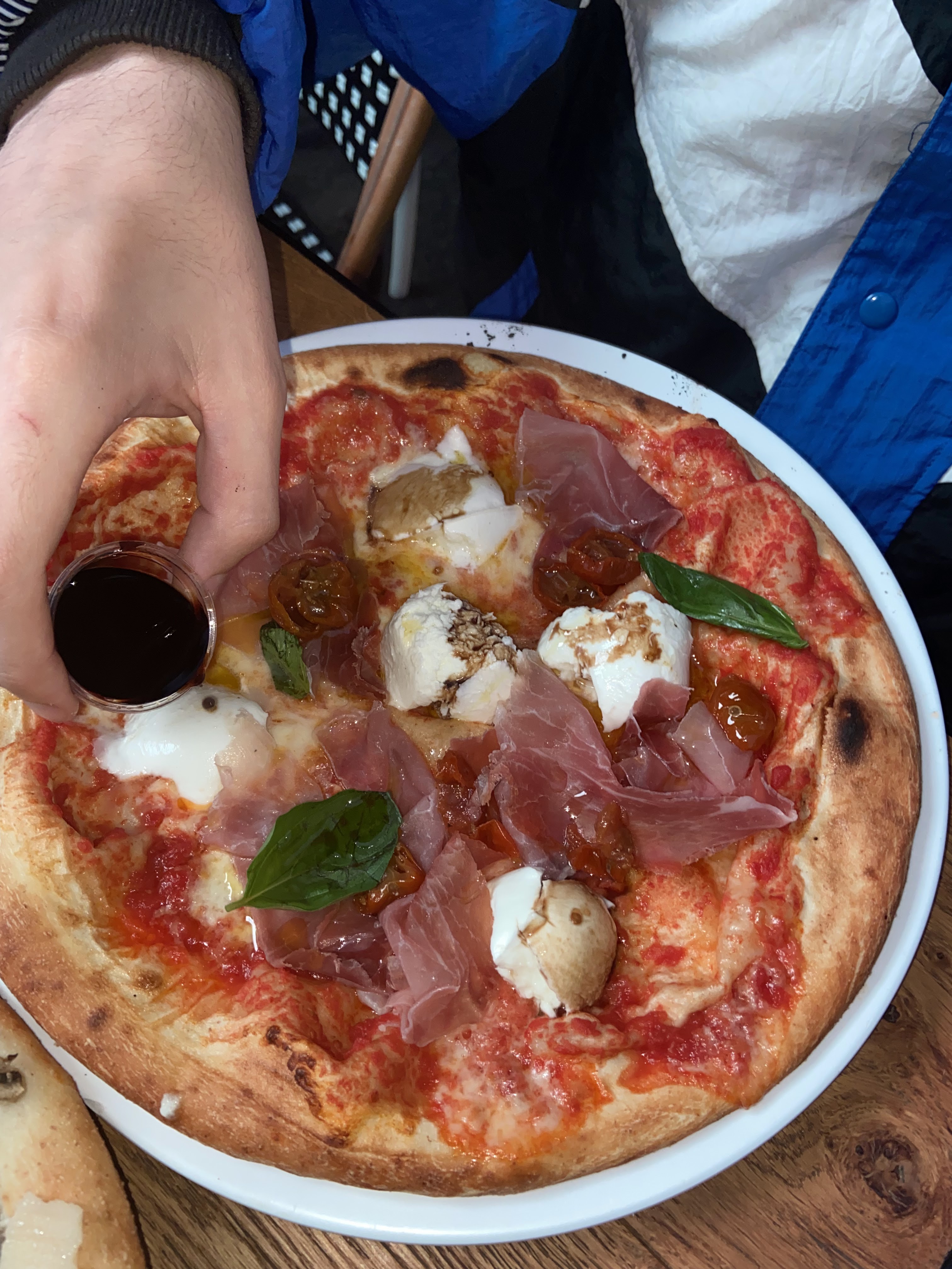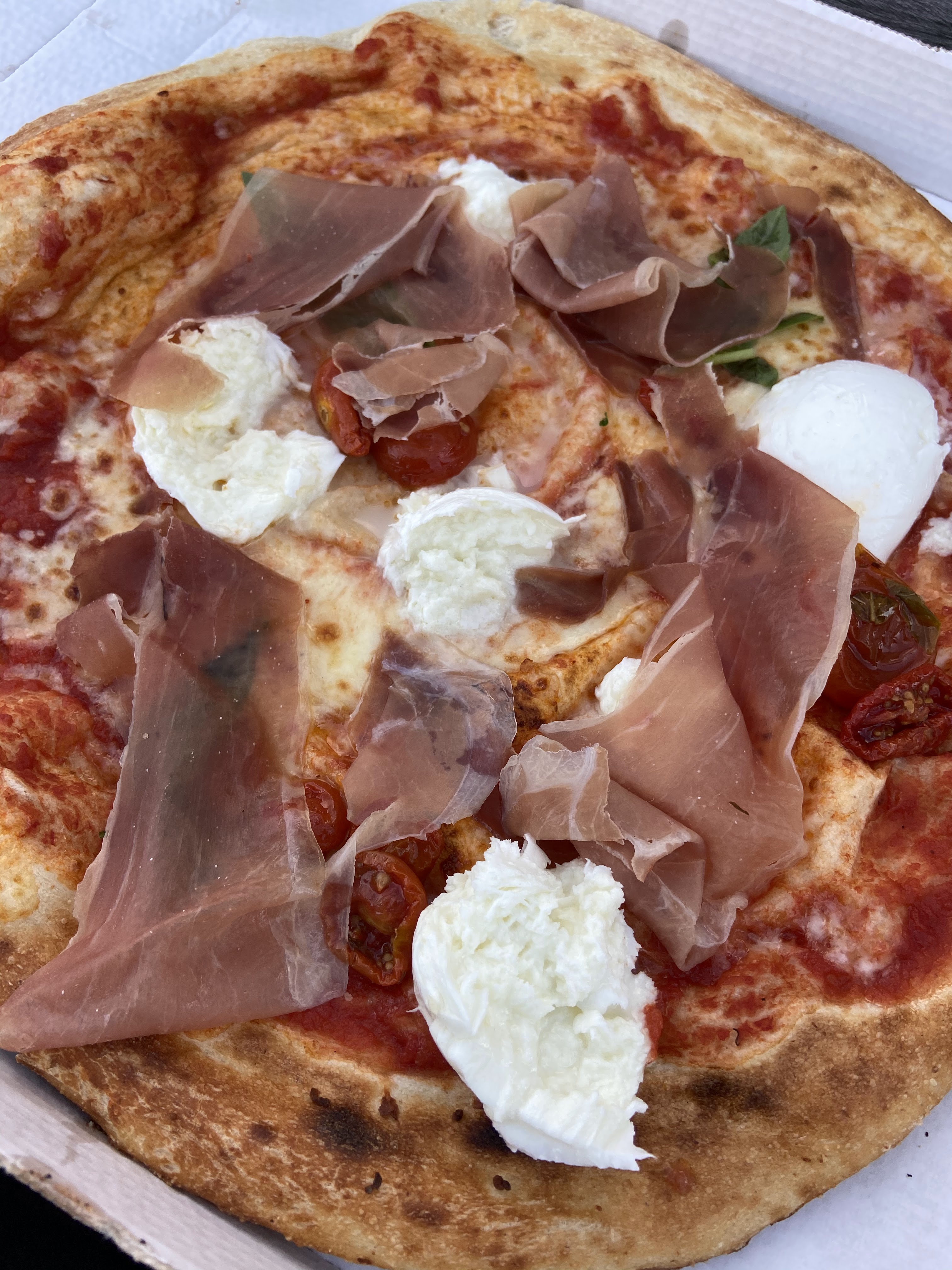 Dans le top 3 des pires pizzas que j’ai mangé de ma vie, et j’en mange beaucoup (~1/semaine) Pâte farineuse, tomates sans goût, burrata sucrée, inondation de balsamique. C’est un self service et les tables sont rarement nettoyées. Rabattez vous sur les food trucks en face, un choix plus safe même si assis dehors sous la pluie.