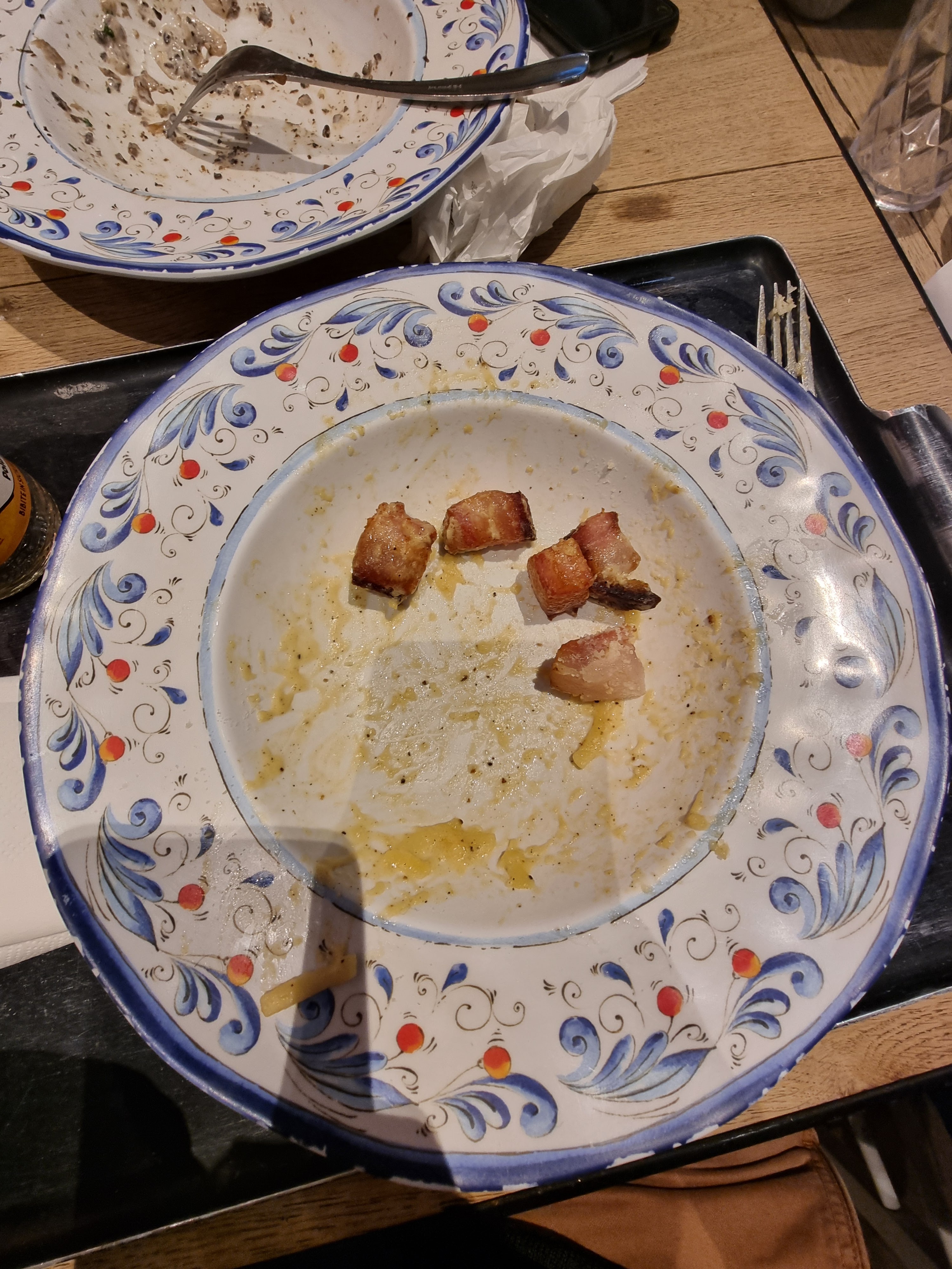 A l'attention du restaurant : Mettez une astérisque à côté du nom du plat : Attention ce plat peut contenir des traces de lardons. Ou Dites clairement que ce sont des pâtes à la carbonara halal. Ça évitera d'éventuelles poursuites pour tromperie commerciale.