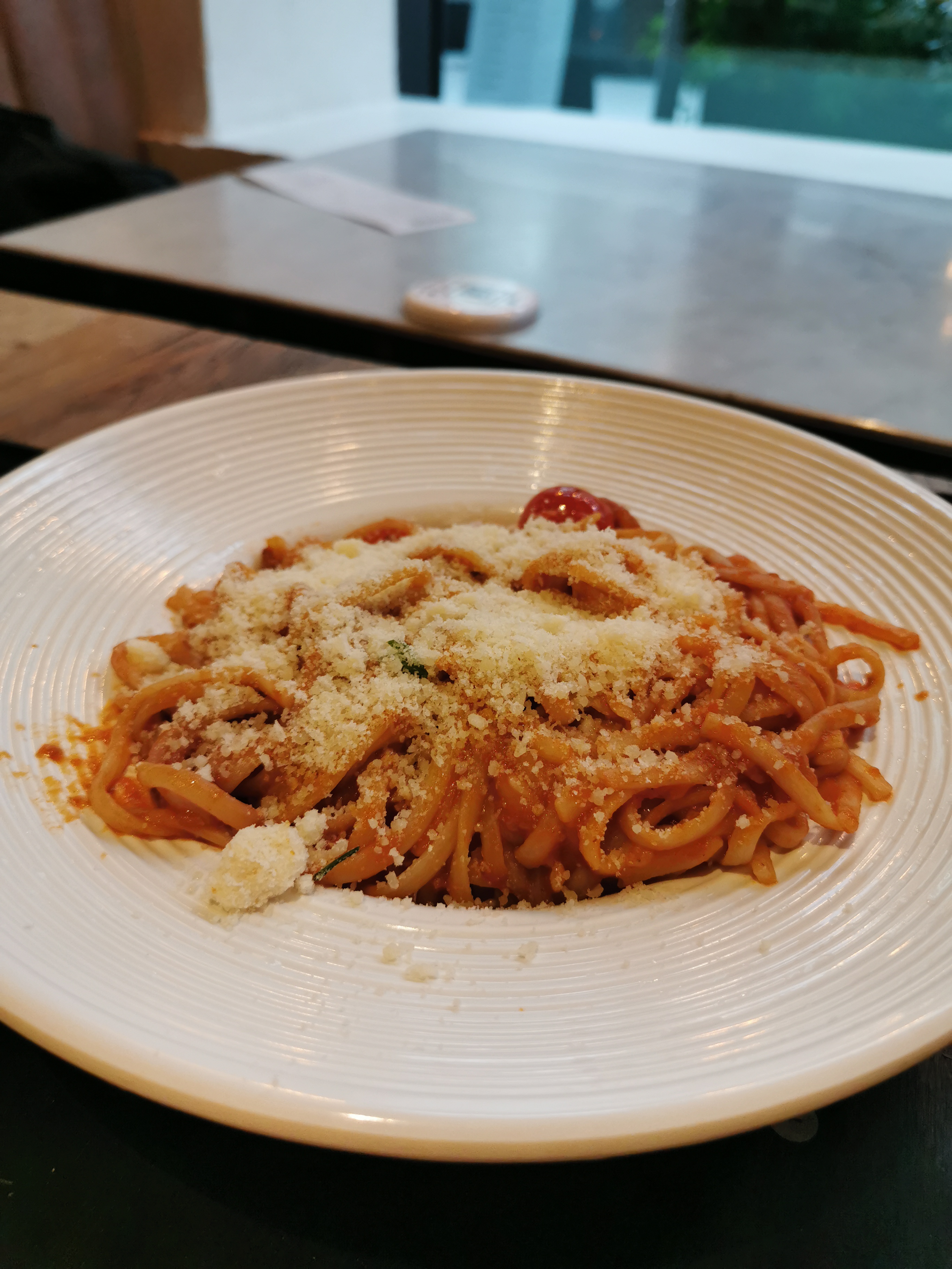 Pâte carbonara très moyen, trop de poivre et le guanciale est tellement en petite quantité que l'on ne sent rien, sinon personnels très serviable, malgré tout je ne recommande pas.