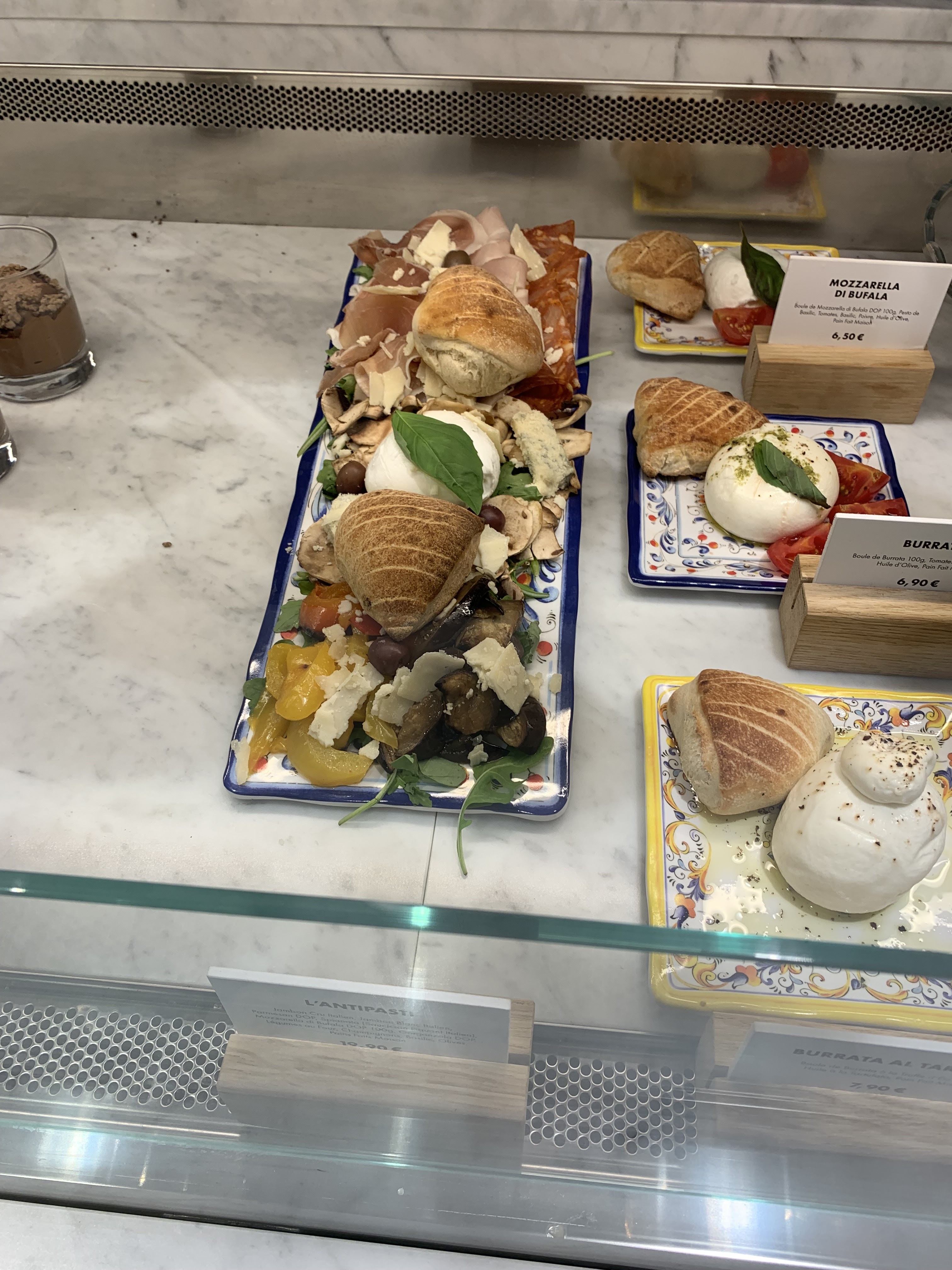 Nouveau concept mais nous n'avons pas trop adhéré à celui-ci. Il faut passer commande au comptoir caisse, les boissons sont remises de suite et les plats sont à récupérer au comptoir de la cuisine lorsque le boitier remis a sonné. Il y a du personnel qui guide mais ce ne sont pas des serveurs. Les boissons Italiennes bien sûr étaient bonnes et bien fraîches. Adeptes de planches, nous avons pris la planche anti pastis à 19,90€. Celle ci était bonne avec de produits de qualité. En revanche, il y avait que 2 petits pains ce qui a été trop juste pour nous 3 et avons demandé un nouveau pain mais celui ci nous a été proposé au prix de 0,50€....c'est la première fois qu'on nous demande un supplément ! Et pour finir, ma fille voulais terminer par un petit dessert proposé en vitrine mais il fallait refaire la queue (et il y avait pas mal de monde ce soir) il n'était pas possible que le personnel prenne ce complément de commande à table. Sinon belle déco, vitrines et cloches très alléchantes de pâtisseries et produits italiens, personnel agréable. Nous restons donc mitigés sur le fait que le client doit se débrouiller comme dans un self dans un lieu plutôt chic.