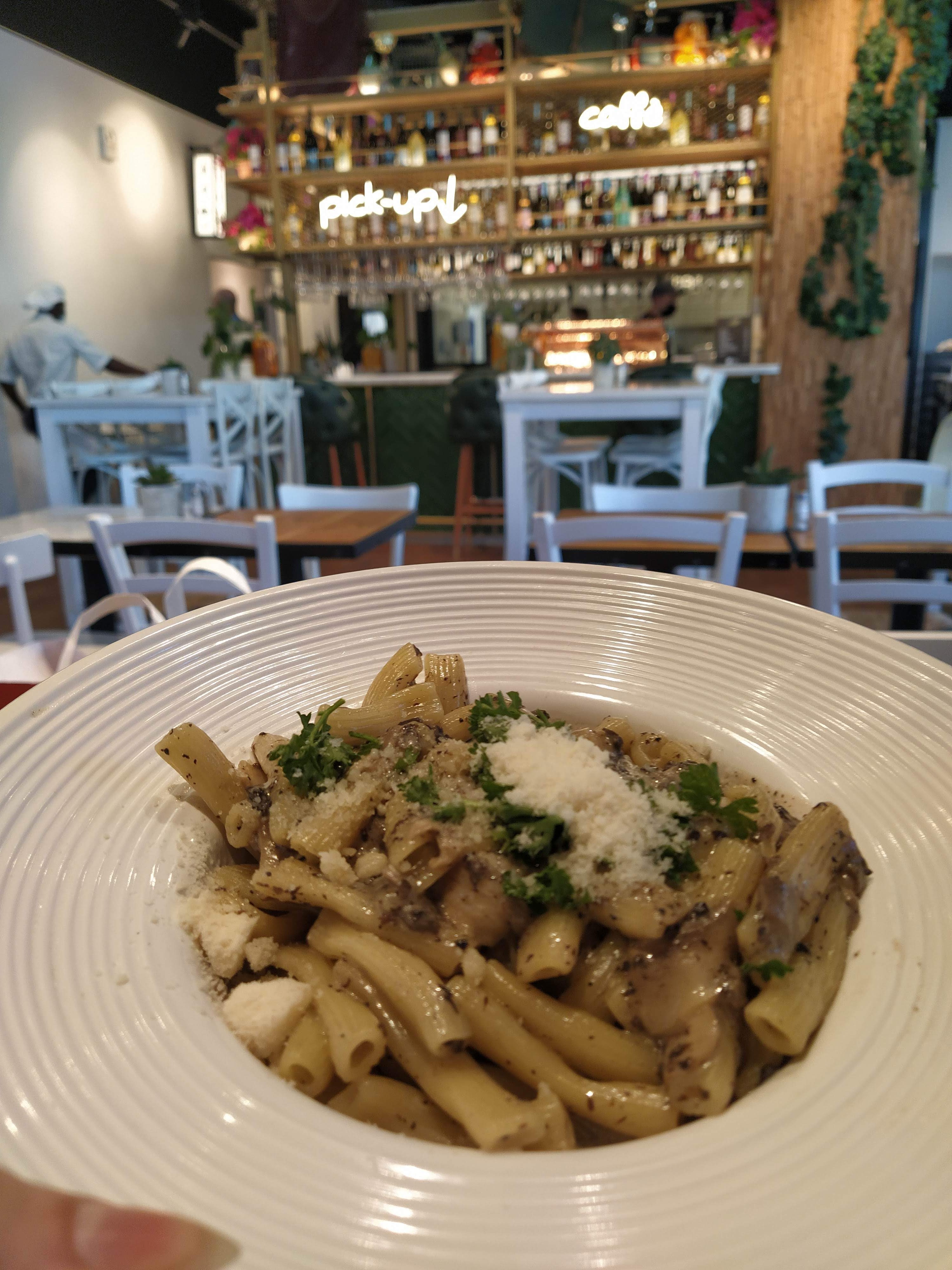 Endroit super jolies , le bar est juste trop beau. Pizza tartufata et pâtes carbonara avec burrata top ! Tiramisu café bien équilibré, Rapport qualité prix excellent, personnels très agréable et souriant.