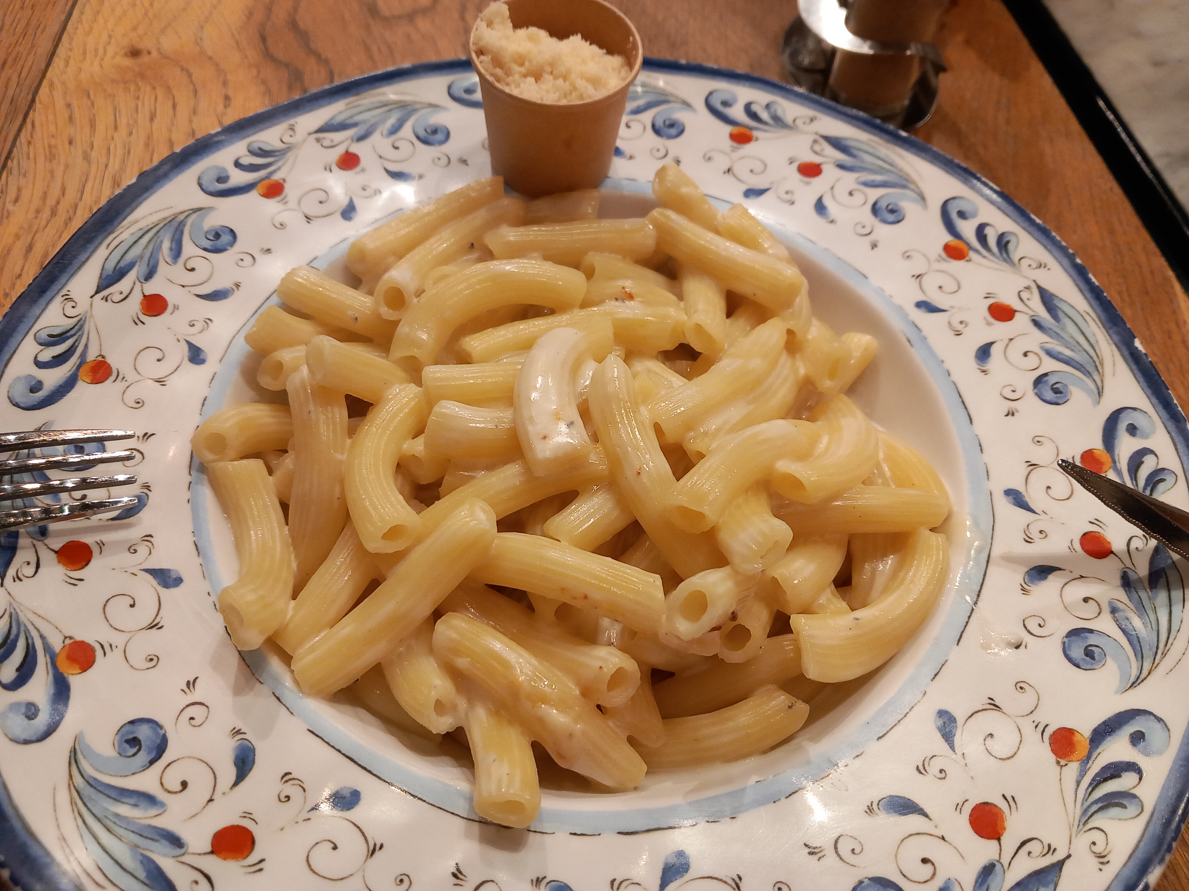Le lieu est plutôt accueillant et agréable. Les pizzas sont de tailles généreuses, mais les assiettes de pâtes plutôt peu garnies restent cependant délicieuses, et le voyage en Italie s'est fait ressentir. Seul point noir, l'attente (30 mn pour une assiette de pâte et une pizza) Le principe est plutôt innovant, pas de serveurs mais un bip remis à la commande, et qui sonne lorsque les plats sont prêts. . Ma note : 8,5/10 car pour ma part la tradition du service à table reste un point prépondérant. À recommander fortement.