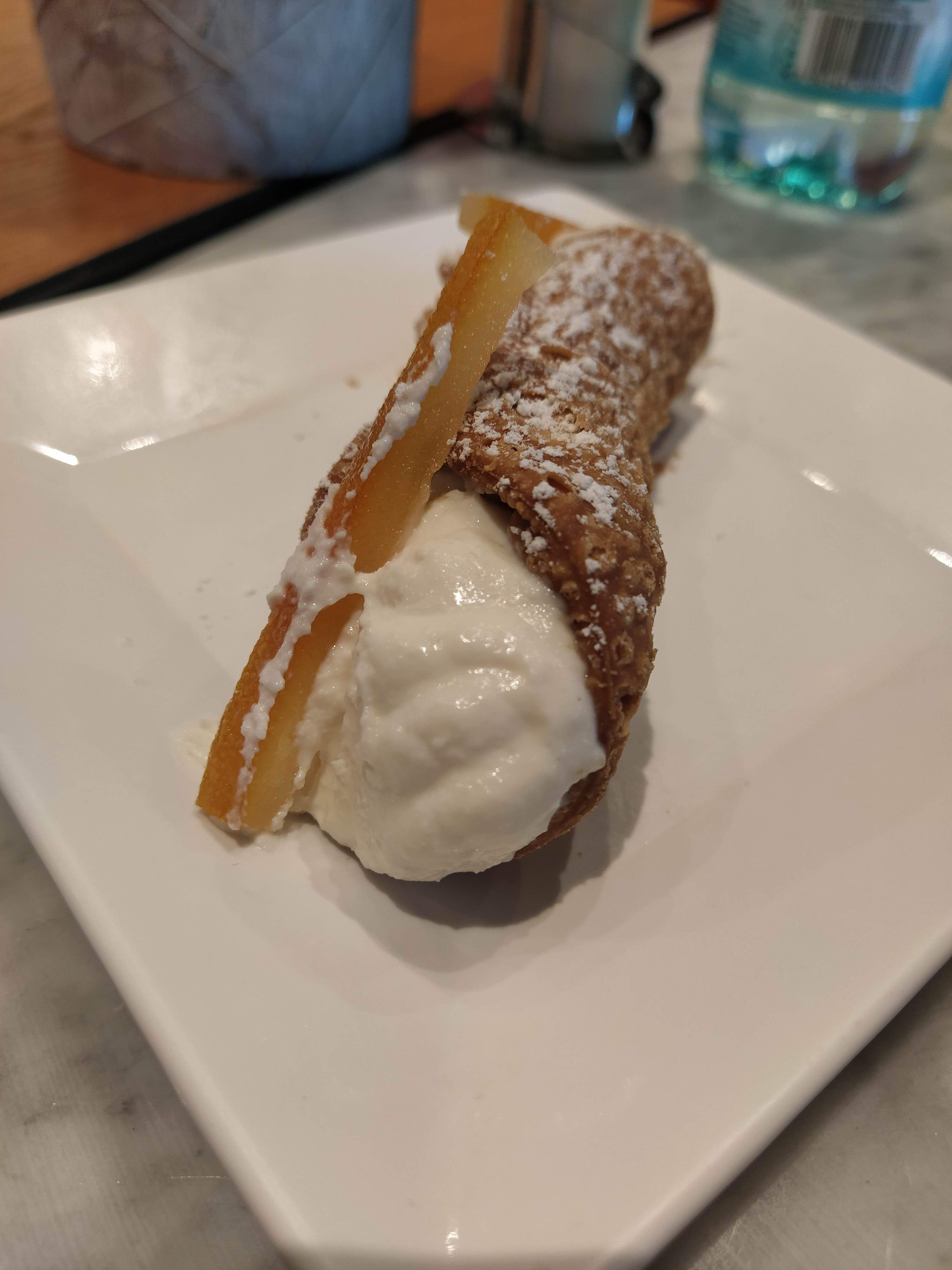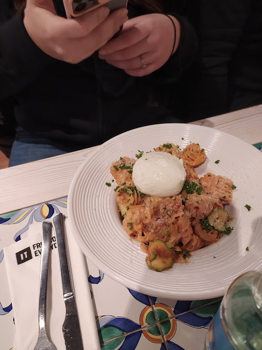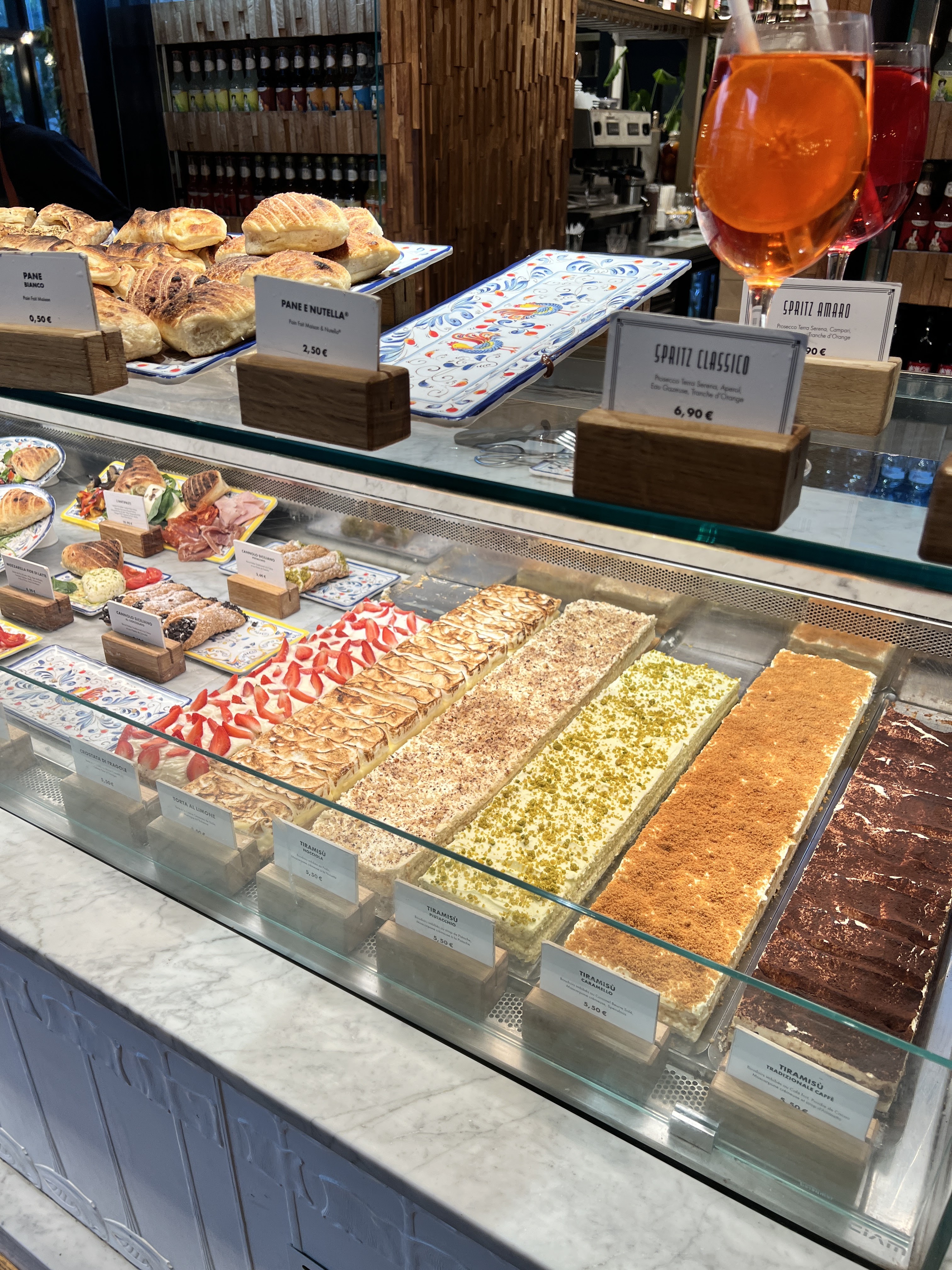 L’accueil efficace,le cadre très sympa,avec enfin une playlist italienne très agréable .Nous avons opter pour des pâtes au truffes excellente et un spritz bien réalisé (ça aussi,pas souvent le cas ).Les cannolis étaient très bons,et la présentation des salades/dessert en vitrine c’est vraiment bien,et les tiramisus avaient excellent également .Bref un bon repas et nous reviendrons c’est certains .