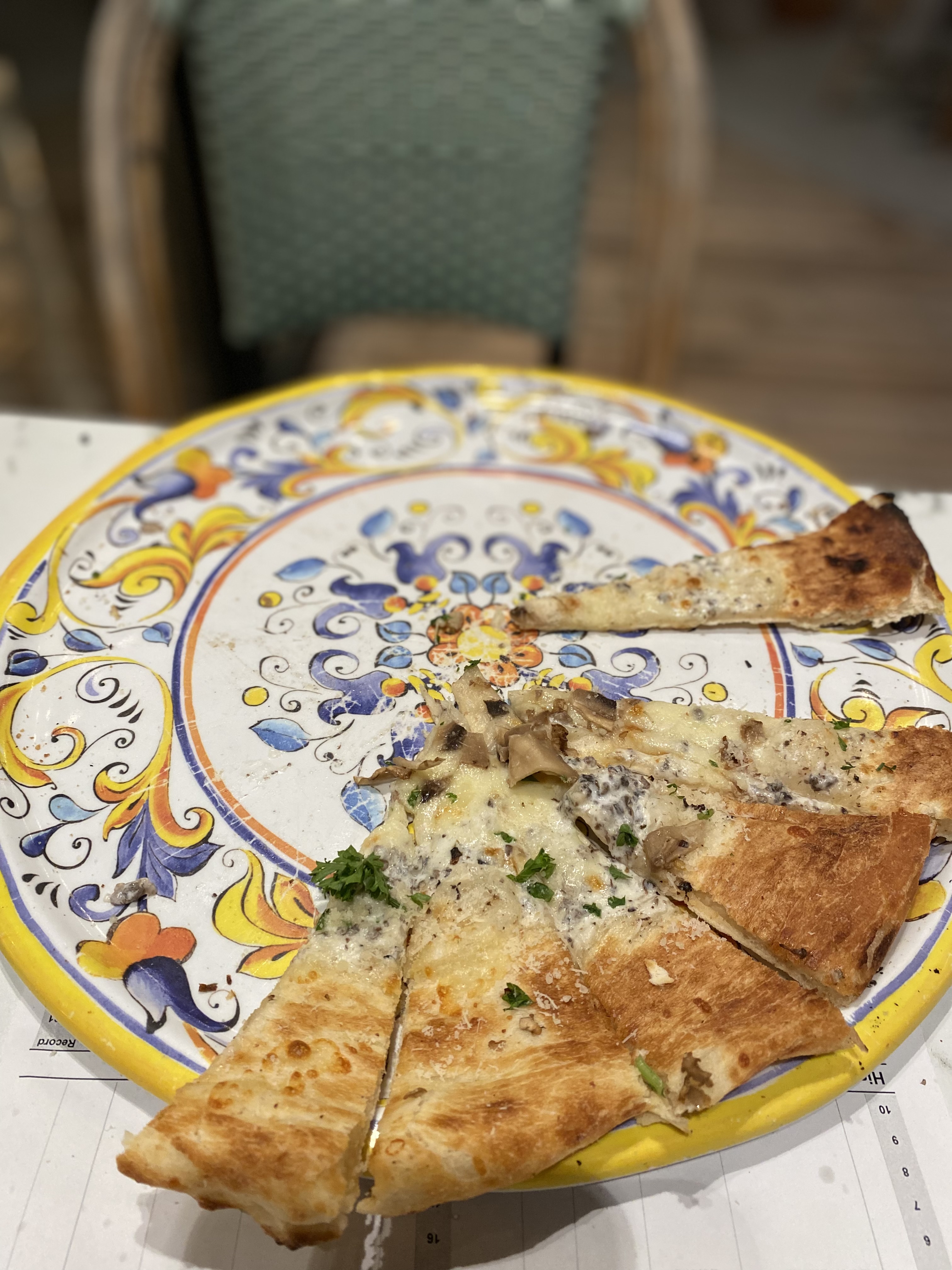 Nous avons hésité avant d'entrer dans ce restaurant et le déclic fut la dégustation de la pizza à la crème de truffe à l'entrée. On en a même commandé 4 😂. Le restaurant est beau, le personnel est super attentionné, souriant et aimable. Une superbe équipe ! Nous avons pris des pizzas, pâtes, salade et desserts. Tout était bon ! Les plats sont généreux et prix corrects. Le service rapide. J'ai juste eu le temps de prendre les desserts en photo, le reste à été mangé trop vite. Je recommande.