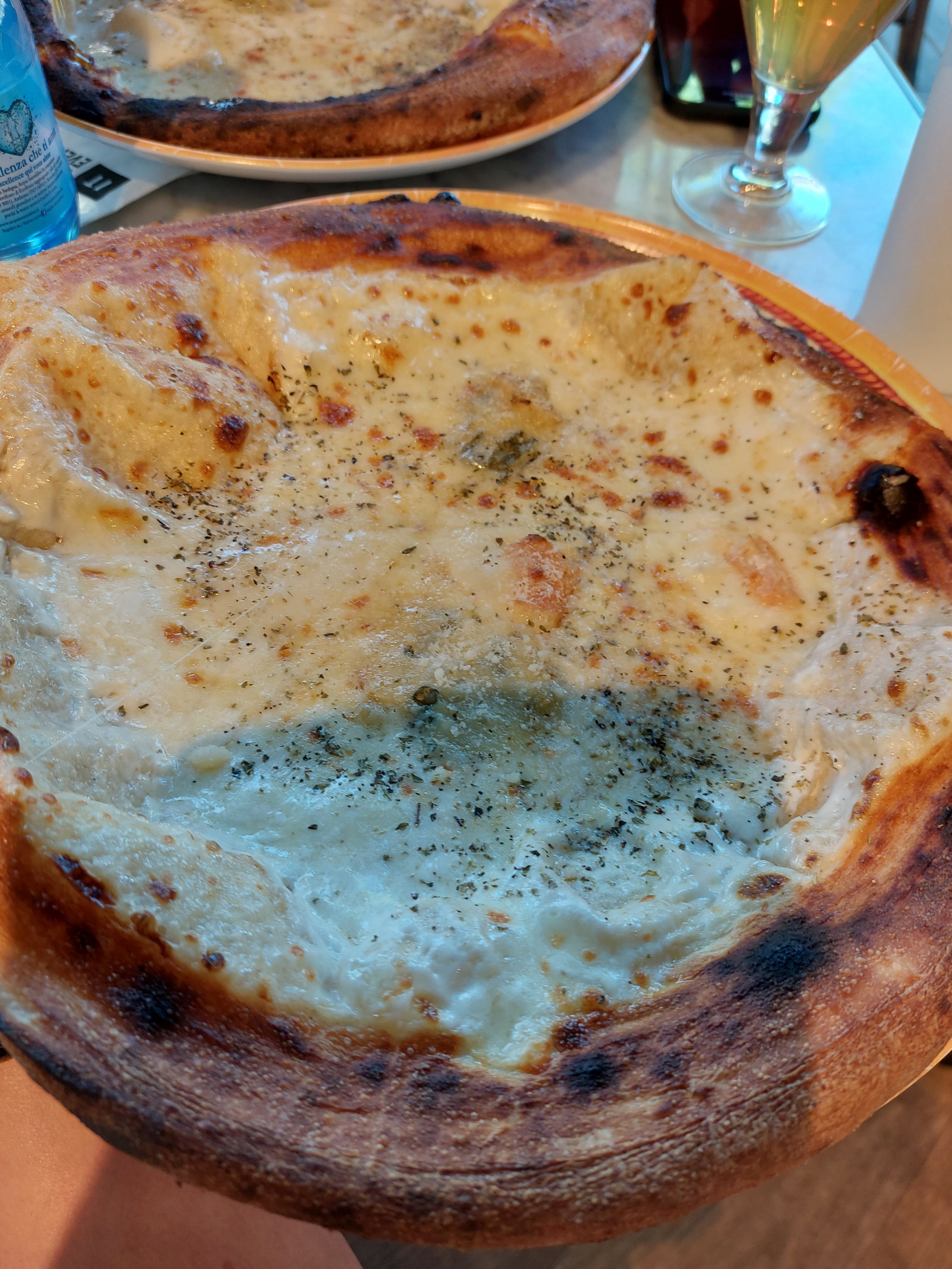 soit ce restaurant est en restriction budgetaire soit le cuisinier etait fatiguer mais c’est pas possible de donner des pizzas aussi eclatées a ses clients!!! une 4 fromage regarder la photo c’est plutot une pizza bourré a la creme fraiche horrible dsl pour ce commentaire mais c’est affreux!!!