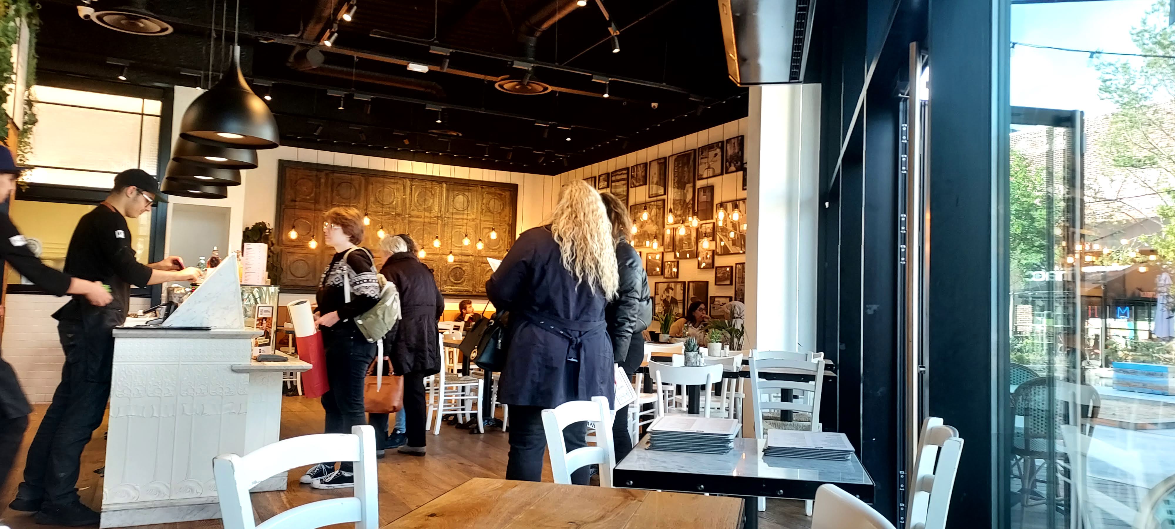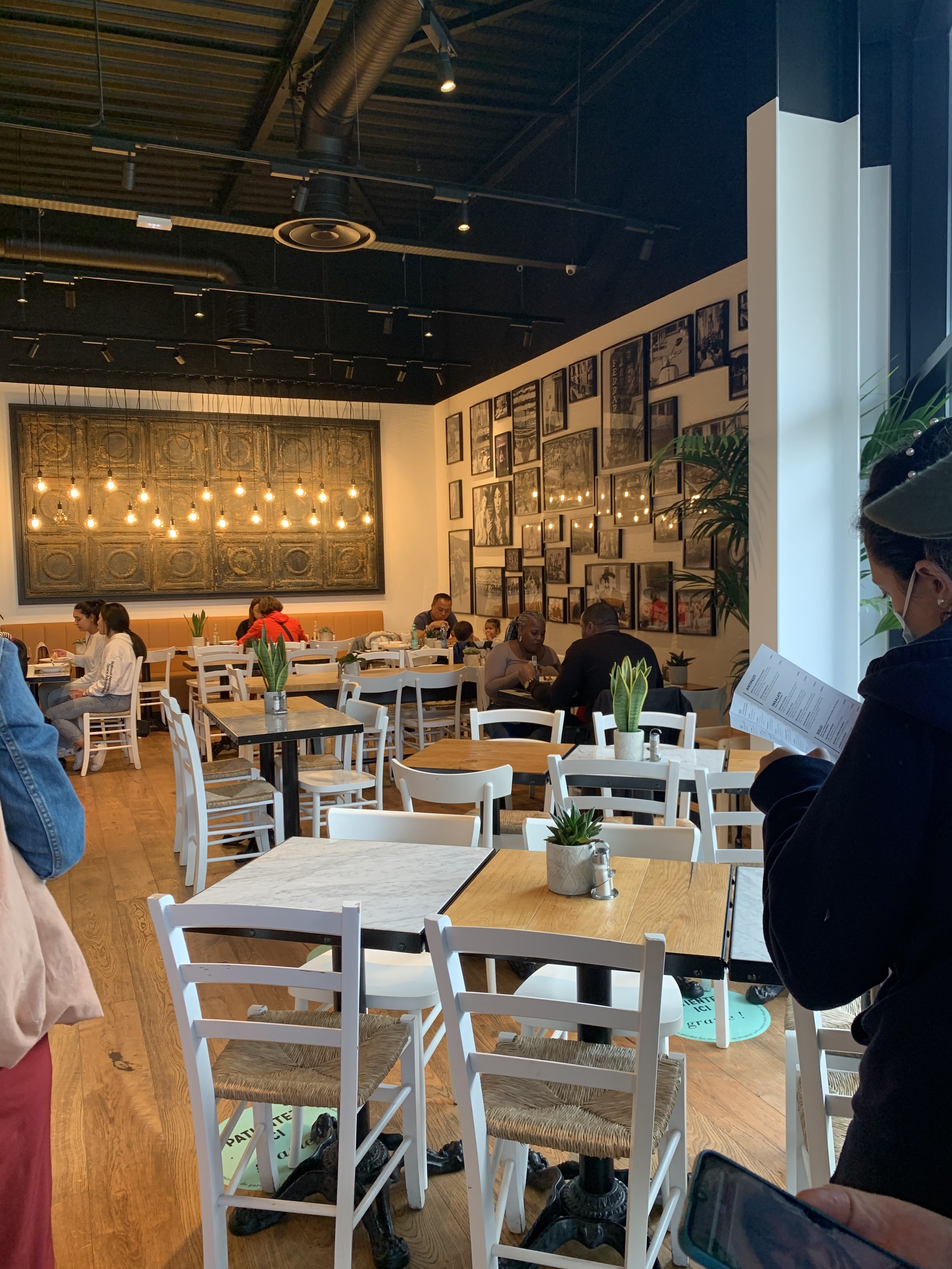 Lieu très agréable, possibilité de s'installer en terrasse comme à l'intérieur. Le concept : se positionner dans la file d'attente, passer la commande à la caisse, payer, s'assoir avec le bip en attendant qu'il sonne pour récupérer son plateau. La carte est succinte mais suffisante: quelques antipasti, 4 salades, pâtes et pizzas. Les desserts sont en exposition à la caisse. Les prix sont excessifs pour ce concept: 2 salades et 2 limonades au cédrat à 33€, même s'il manque un ingrédient, comme l'avocat ce jour là, on ne nous propose rien pour le remplacer 🤷🏼♀️ Le staff est agréable et très courtois; un jeune serveur est venu débarrasser notre table et échanger amicalement, petite attention très appréciable et qui donne plus de vie à ce concept bien trop cloisonné. À tester sans sans hésitation!