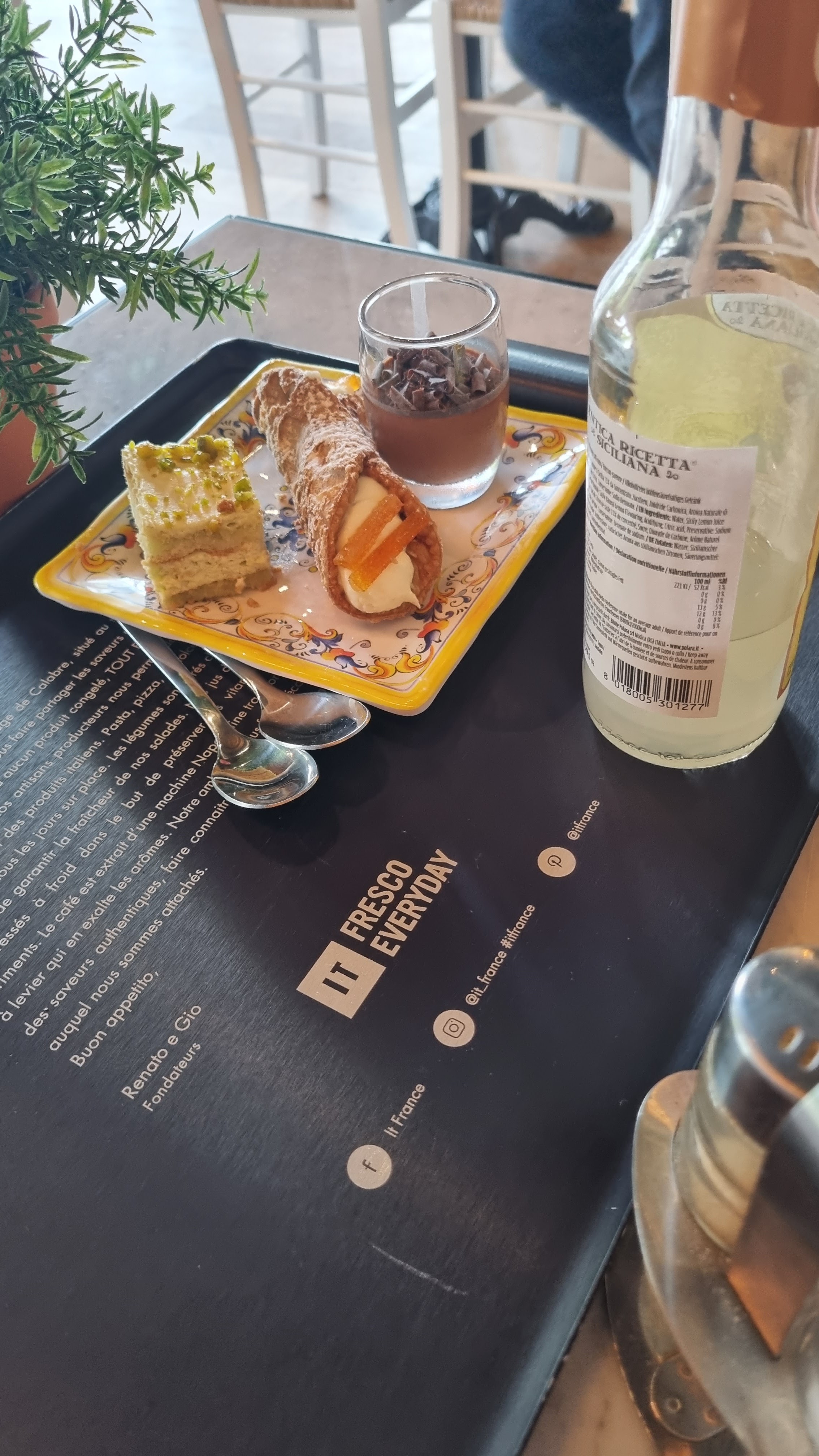 Je viens tout juste de quitter le restaurant avec une seule envie : Y retourner De la nourriture italienne avec des boissons italiennes le tout d’une qualité incroyable et à un prix hyper bas J’y suis allez en hésitant car je suis très très difficile et pourtant je ne me souviens pas du jour où j’ai manger aussi bien que ce soir. Nous avons était accueilli de manière très chaleureuse et nous avons même eu la chance de papoter avec Miriam (pardonner la mauvaise orthographe) qui est d’une gentillesse très rarement vue dans la restauration ! Croyez moi sur parole allez-y vous ne serez absolument pas déçu