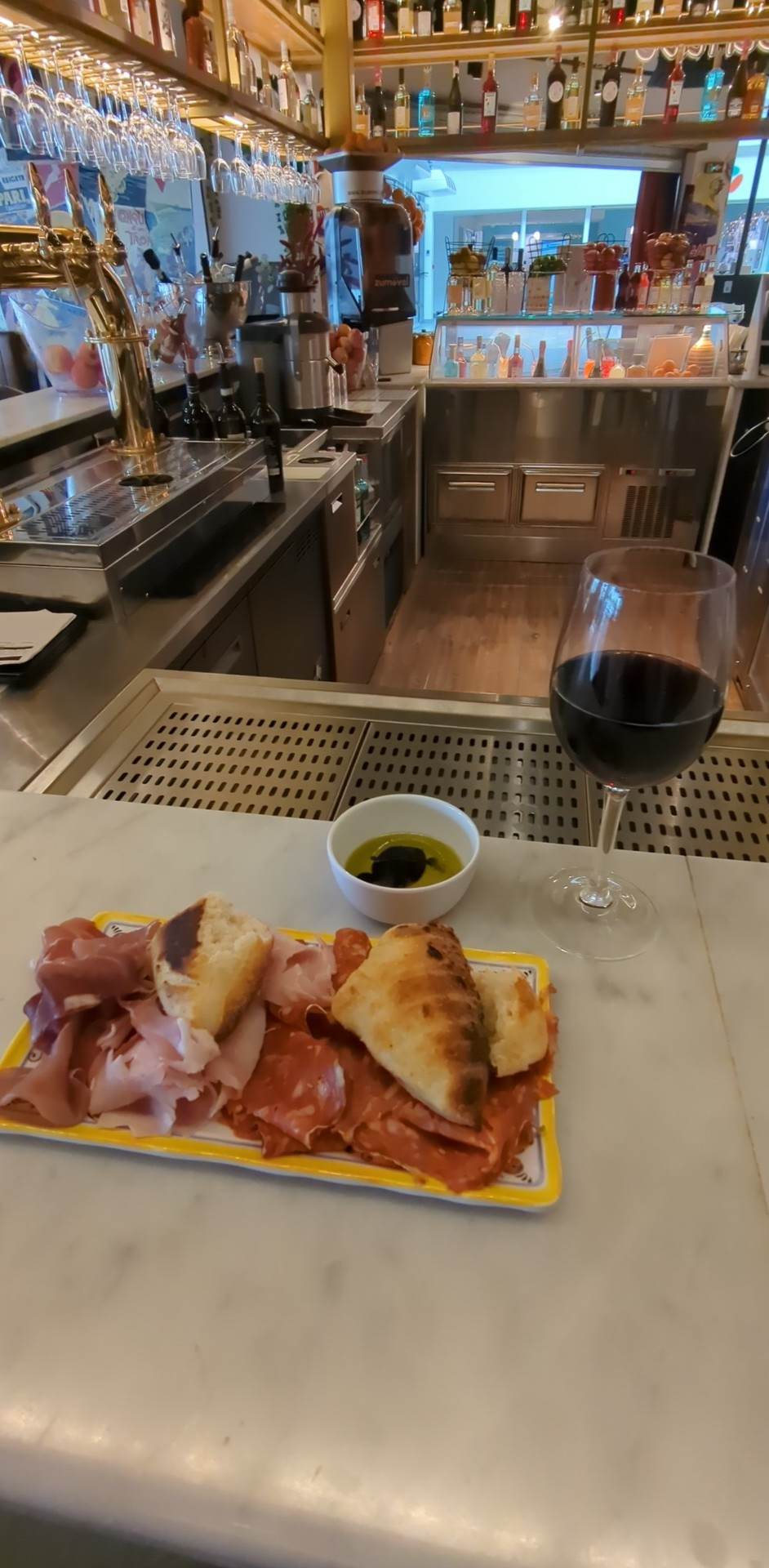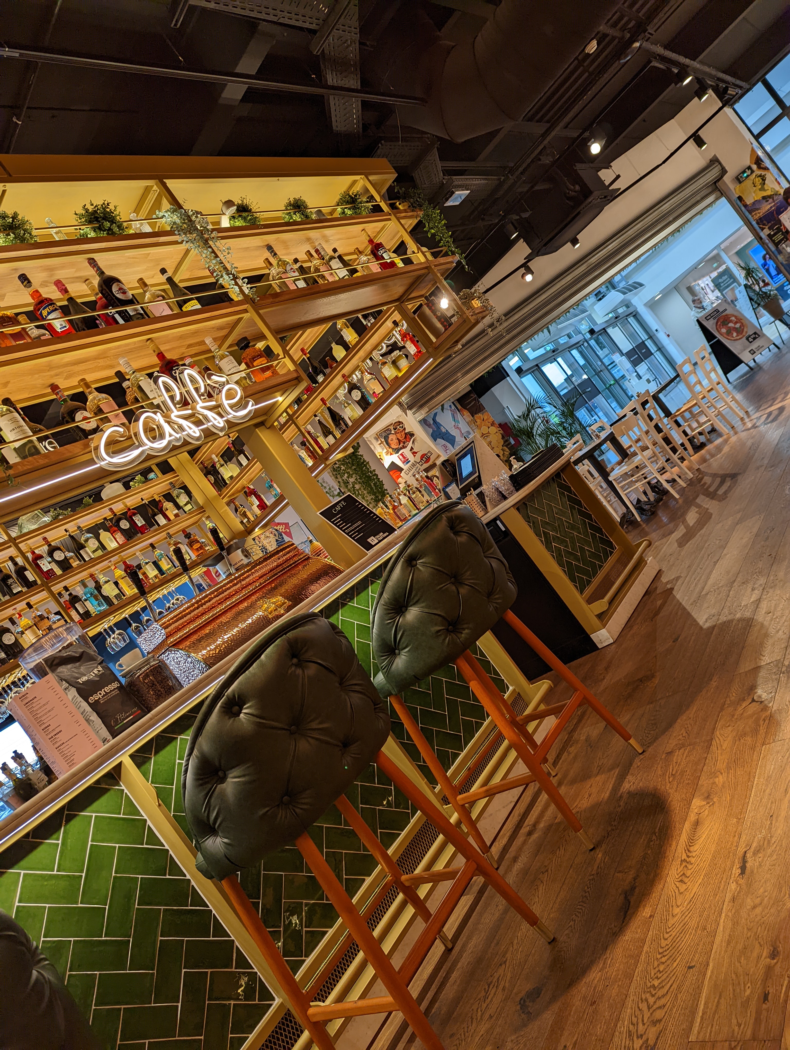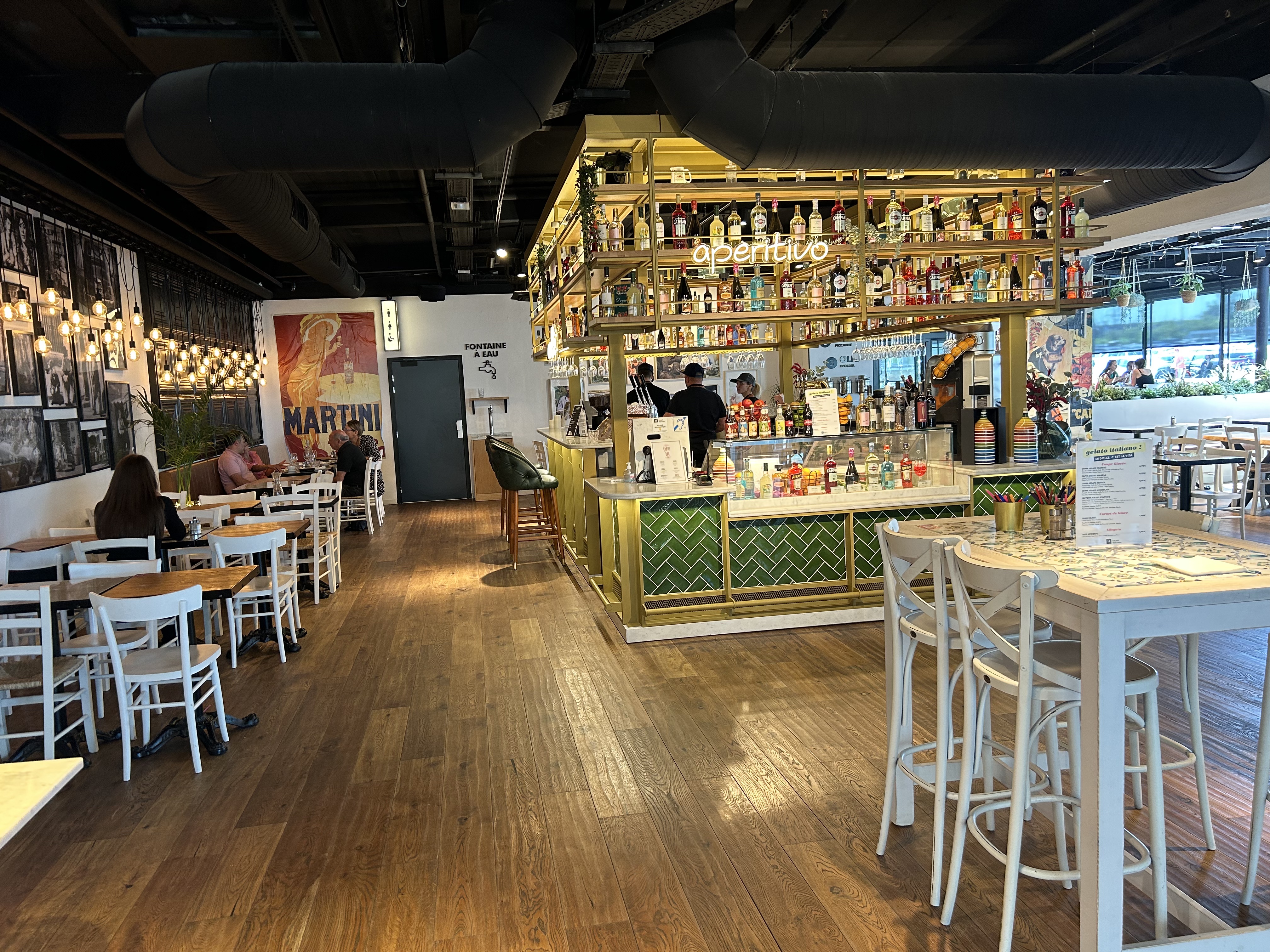 Nous y sommes allés un vendredi soir, joli visuel, pas trop de monde, personnel très agréable et sympa. Concept spécifique car pas de service à table. Vous commandez vos plats puis à l'aide d'un bippeur, vous récupérez vos plats. Nous avons mangé en apero des antipastis, assiette composée de légumes aubergine, poivrons, roquettes, buratta, Toutes sortes de charcuterie très joli visuel, c'était bon mais trop de saucisson piquant qui n'est pas au goût de tous. Puis certains ont pris des pâtes les autres des pizzas. C'est bon mais pas sensationnel parcontre le tiramisu speculoos caramel beurre salé est extrêmement bon et vaut le détour. Nous y retournerons plus pour l'heure du goûter car les desserts valent d'être goûtés !