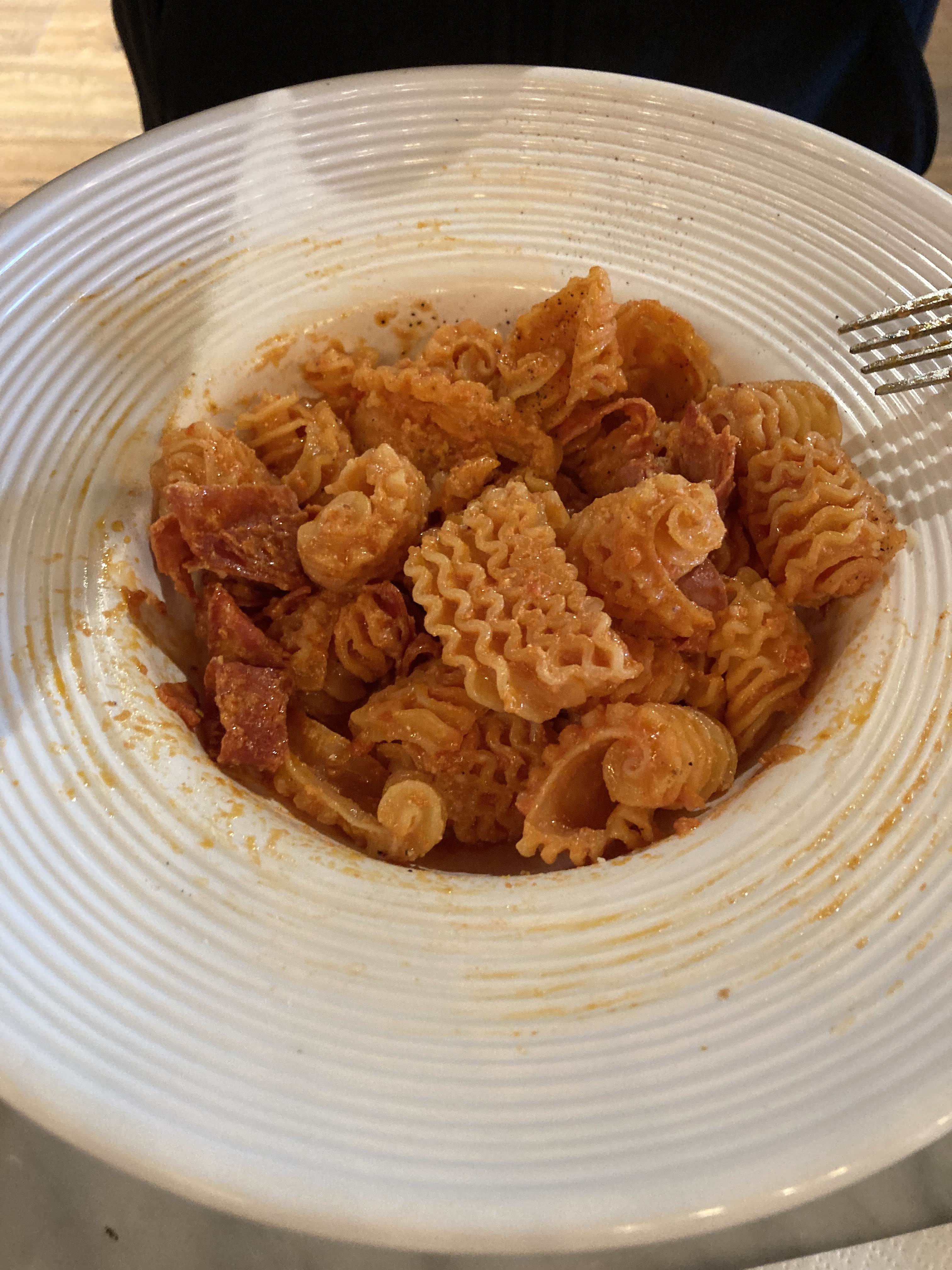 Cher pour ce que !! c’est une micro assiette de pâtes bolo pour 14€ !! Camouflée dans une grande , pas de parmesan à dispo ni pain , sauce bolo : viande ( presque pas )diluée dans l’eau Honteux