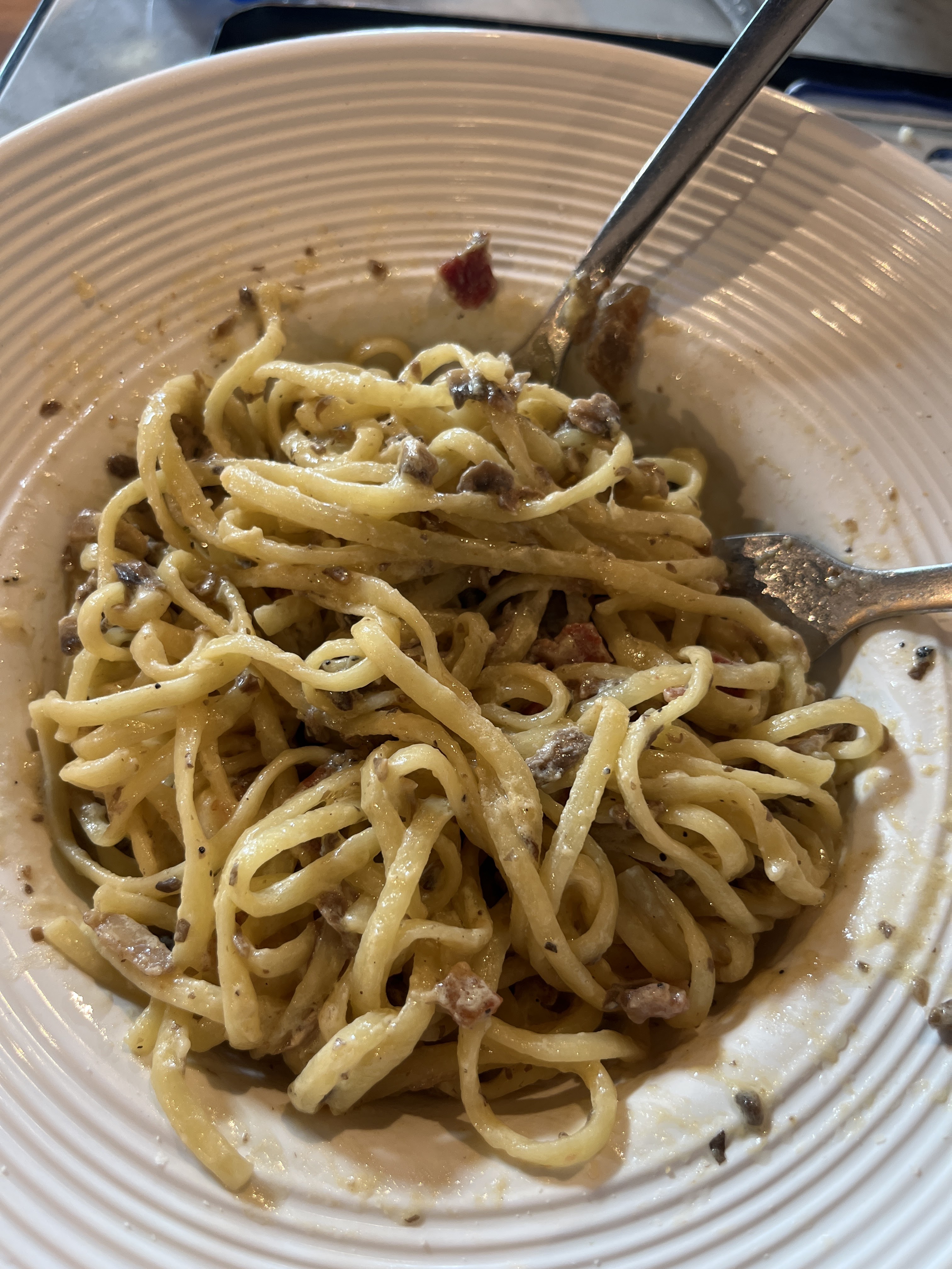 Nourriture bonne, accueil agréable. Points négatifs : musique beaucoup trop fort, assez chers, et pâtes très salés (carbonara)