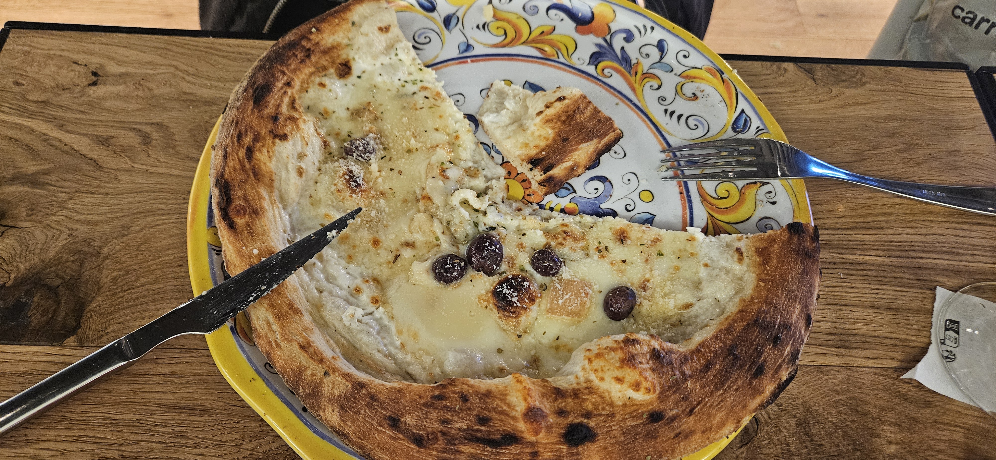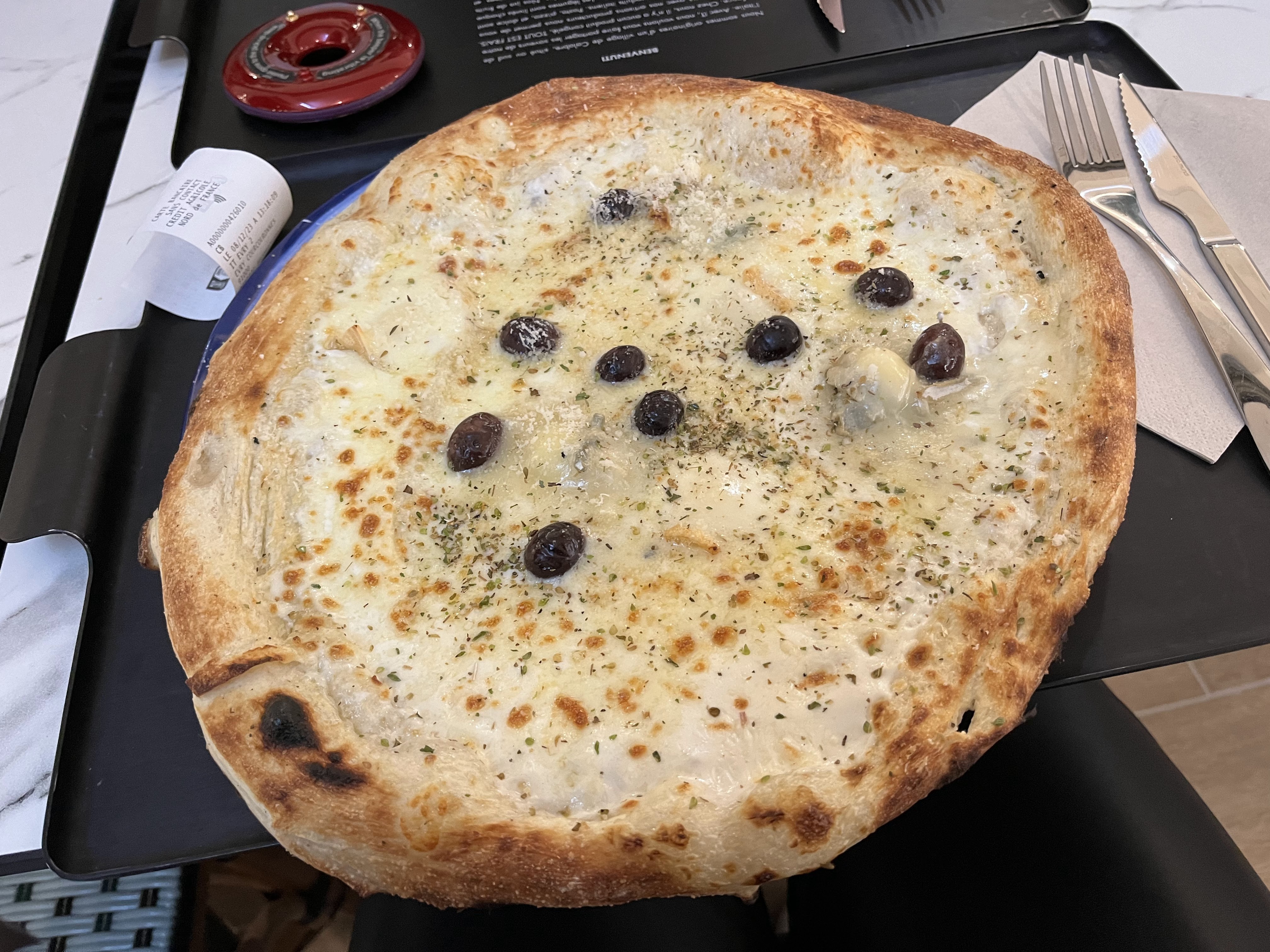 La pizza était pas mal. La pâte très bonne Par contre attention quand la serveuse te demande si tu veux des olives sur ta pizza, elle oublie de te mentionner que c’est un supplément payant. 1 euros les 5 olives, je les ai savourées 😏