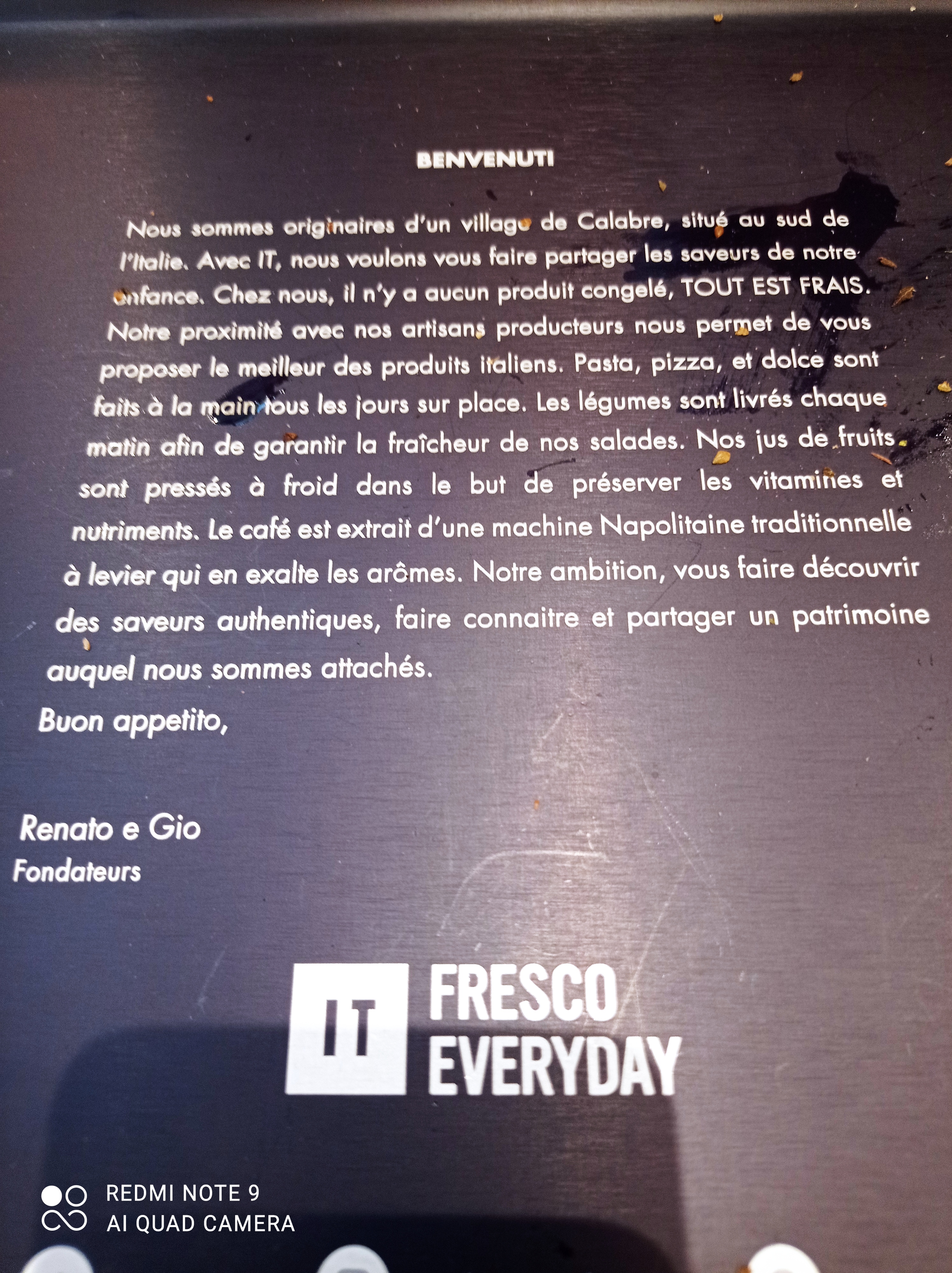 Nous avons gouté les pates trufata et la pizza trufata. Les deux avec un leger goût de truffe qui se devine. Les plats n’étaient pas terribles, sans réellement de saveurs, sauf le persil qui venait prendre le dessus sur tout le plat pour finir de l’achever. Le lieu était agréable. Mais première et dernière fois à l’IT de Fenouillet