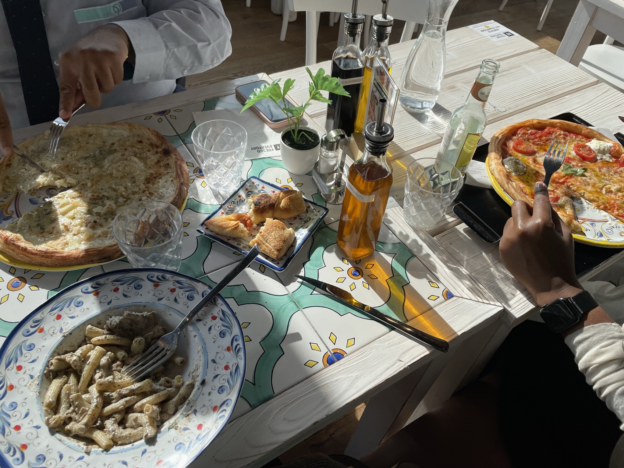 Belle décoration. Nourriture 100% frais 100% fait maison.super Ambiance. pas bruyant.les serveurs sont adorables. Dégustation offerte (parts de pizza,boisson italienne,datte pour les Gens qui faisaient le ramadan Recommandé a 100%