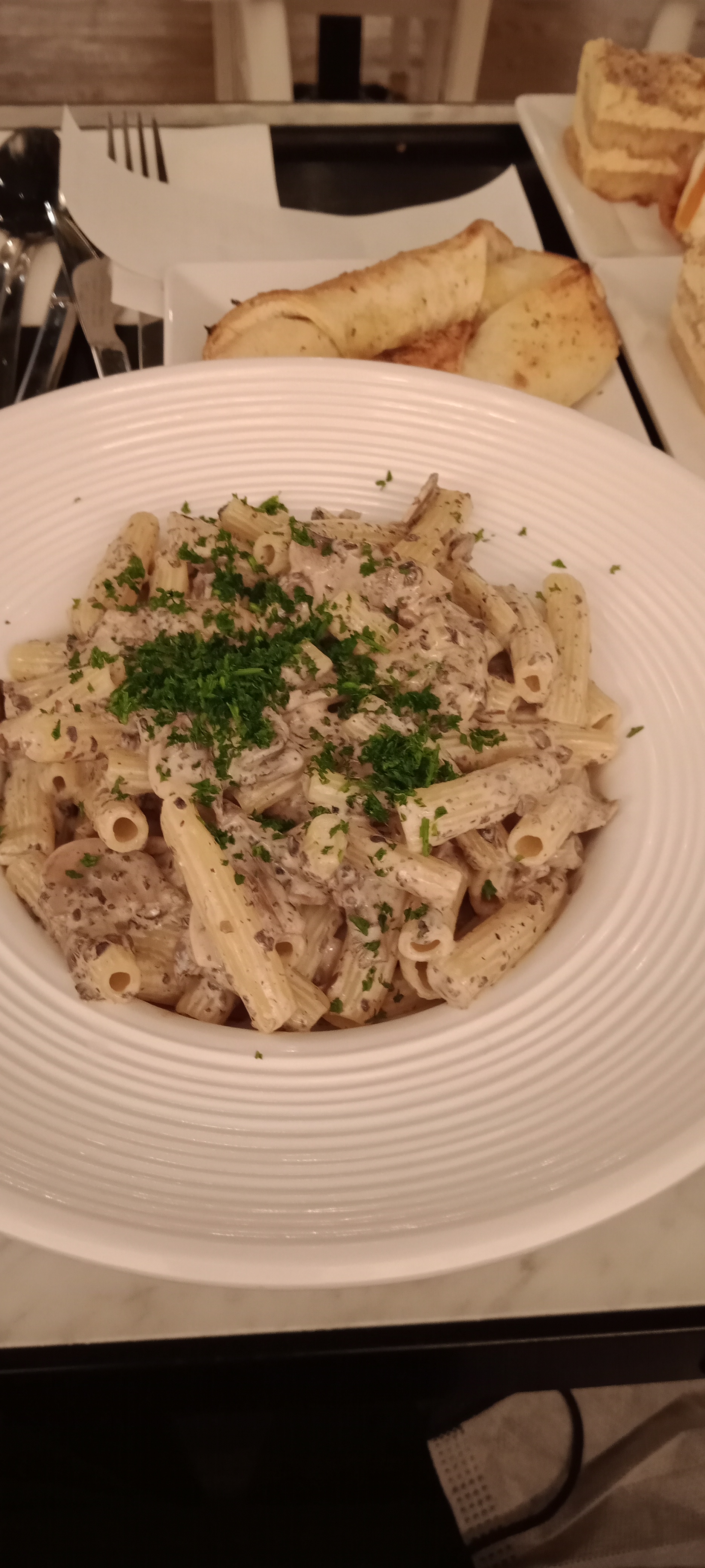 Belle présentation, beau décord service assez rapide mais quelques défauts baisse la note: Le pain n'est pas en libre service avec seulement un petit morceau de pain pour une planche assez conséquente a 19€. La salade reste assez fade avec une légère quantité de produits a l'intérieur. Pour ce qui est du plat de pâtes il est excellent !