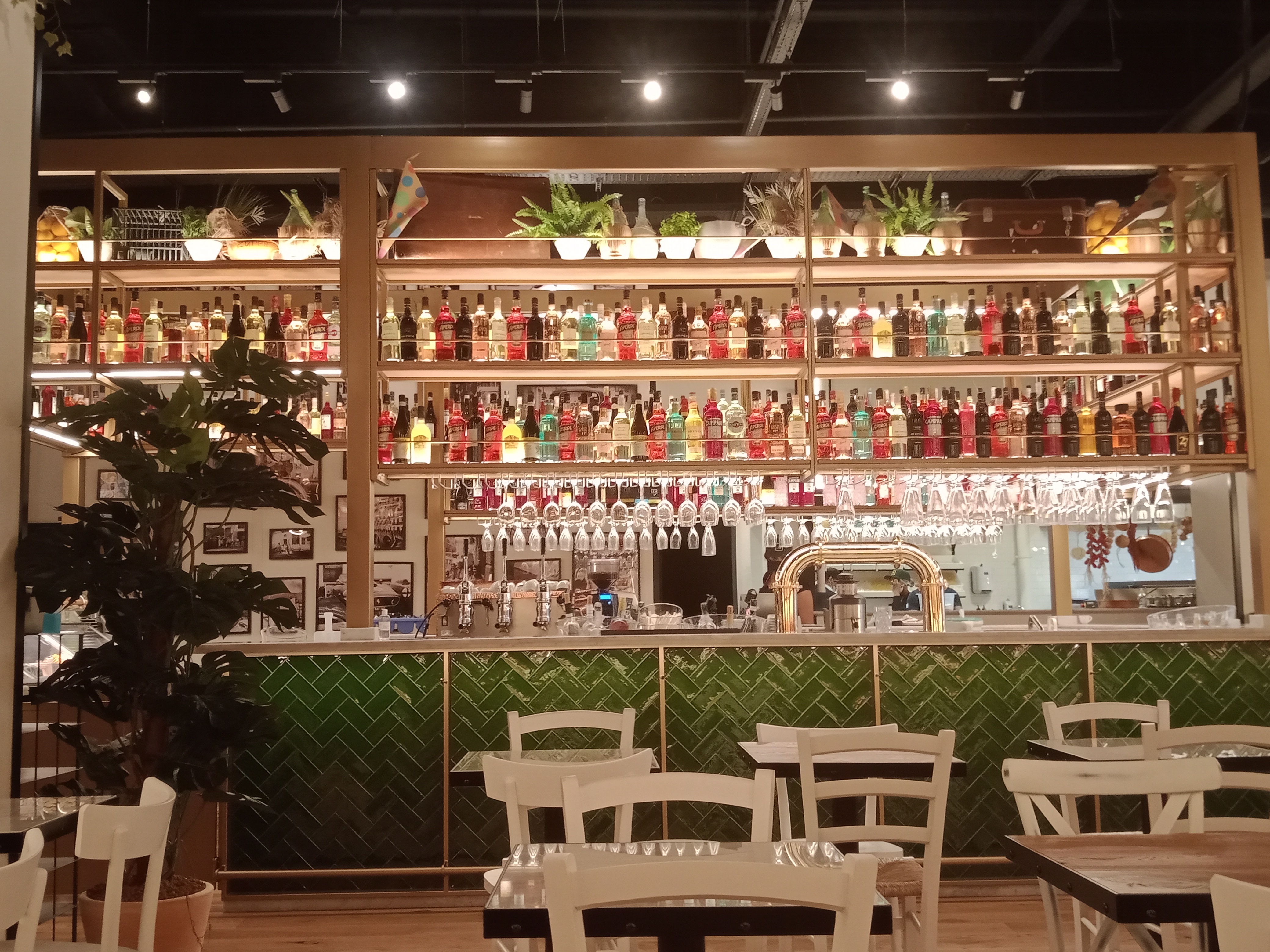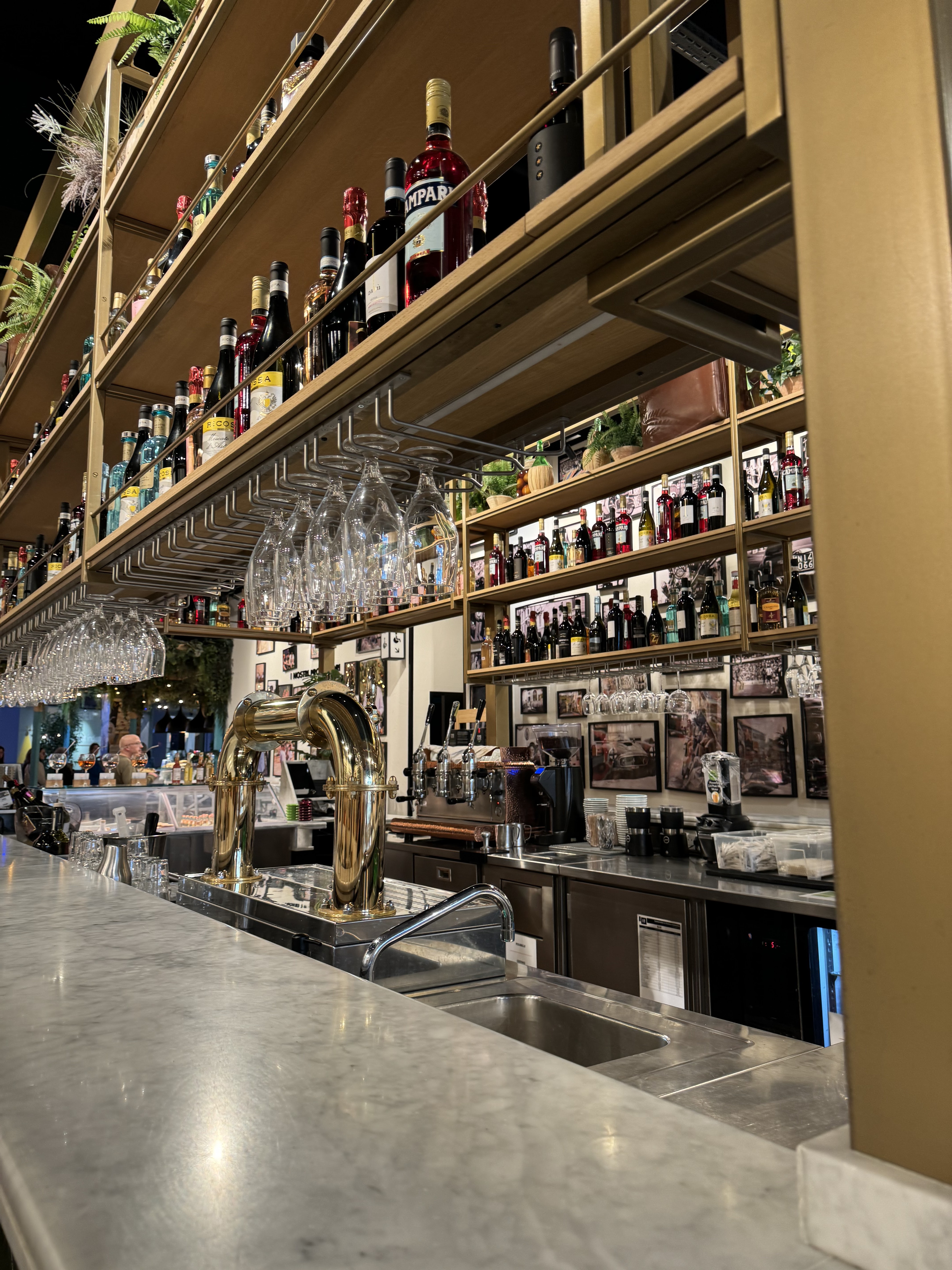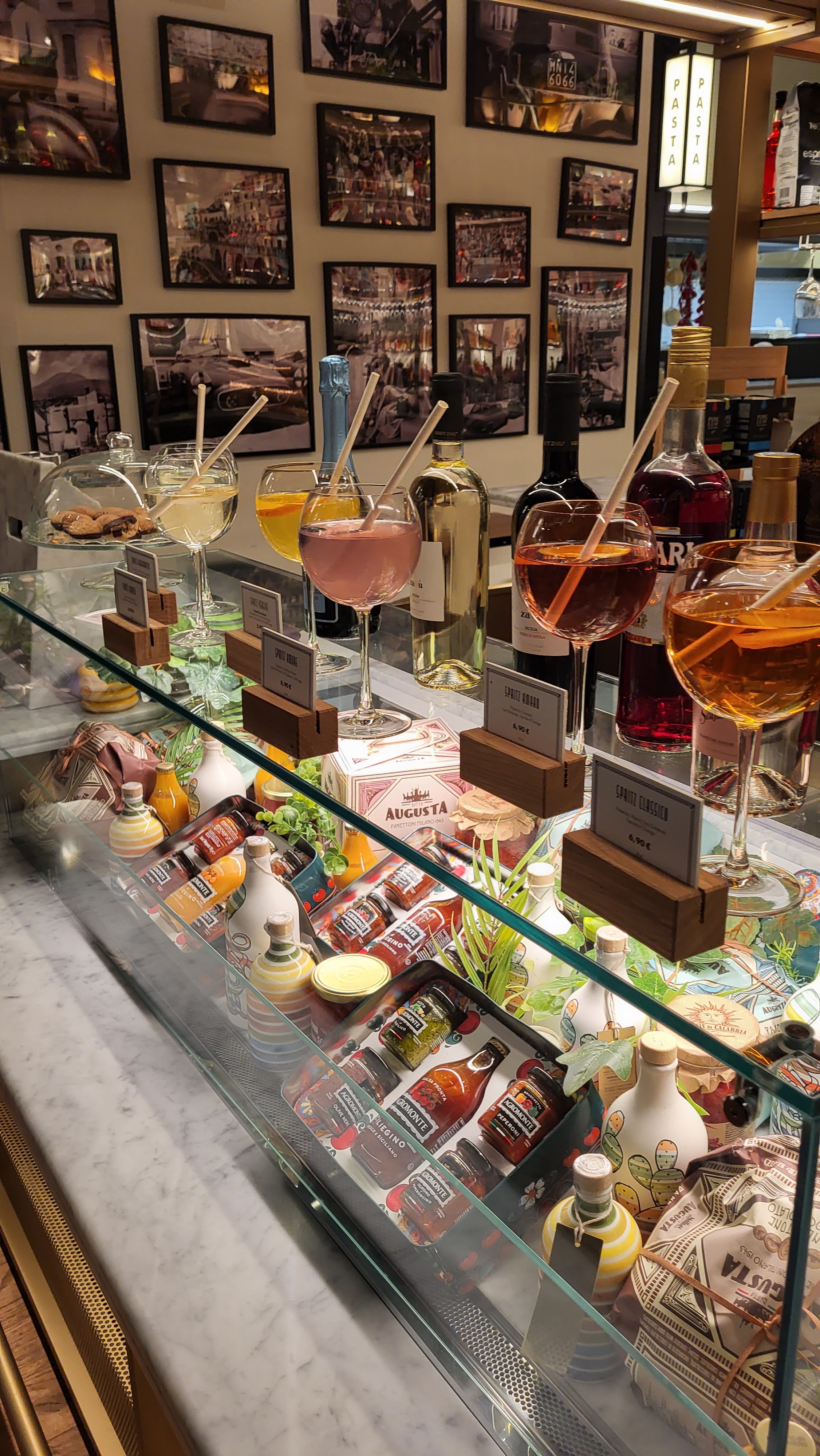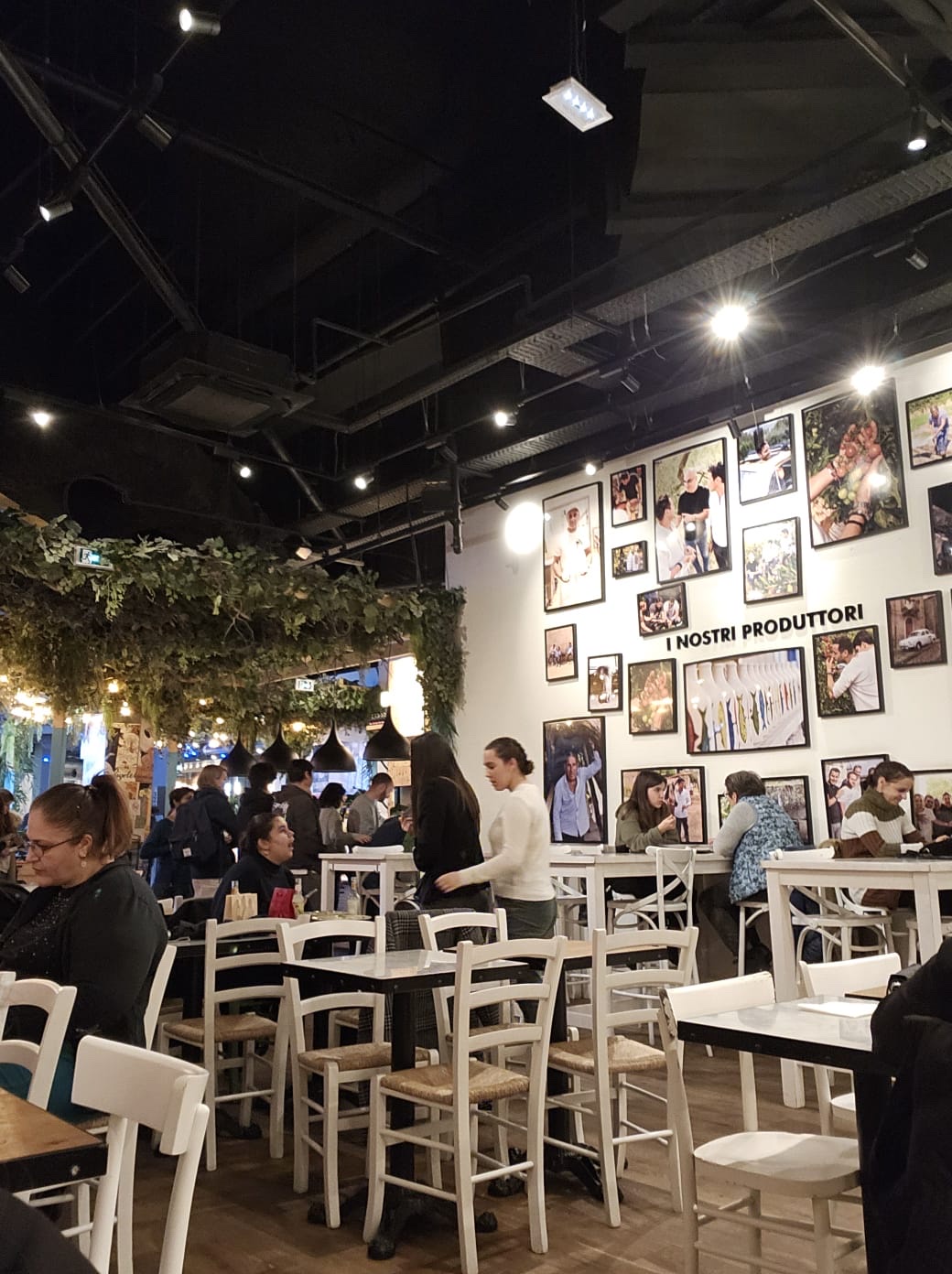 Nous y sommes allez pour boire un verre et grignoter. La décoration du resto donne envie de s'y asssoir et les antipasti de les manger. Lorsque l'on fait la queue pour commander on peut même voir ces derniers présentés en vitrine pour le plus grand plaisir des yeux. Quelle ne fût pas notre surprise quand lors de la commande on nous serva une des planches présentées. Je ne sais pas depuis combien de temps elle y était mais les tranches de viandes et la mozza étaient totalement secs, ajoutons à cela leur goût insipide très loin de ce que l'on attend d'une bonne charcuterie italienne. Malgré tout, les légumes et le vin étaient bons mais les premiers trop froids et le second trop chaud. Dommage, surtout lorsque pour une planche et 2 verres de vins (20cl) la note s'élève a une quarantaine d'euros. C'est beaucoup trop cher pour une nourriture de supermarché. Enfin nous nous sommes placés proche de la cuisine et aucune odeur n'en sortait, ce qui est encore une fois bien dommage. Le restaurant est peut être joli, mais malheureusement ni convivial, ni chaleureux. En somme il est fade tout comme la nourriture qu'ils servent. Première et surtout dernière fois pour nous.