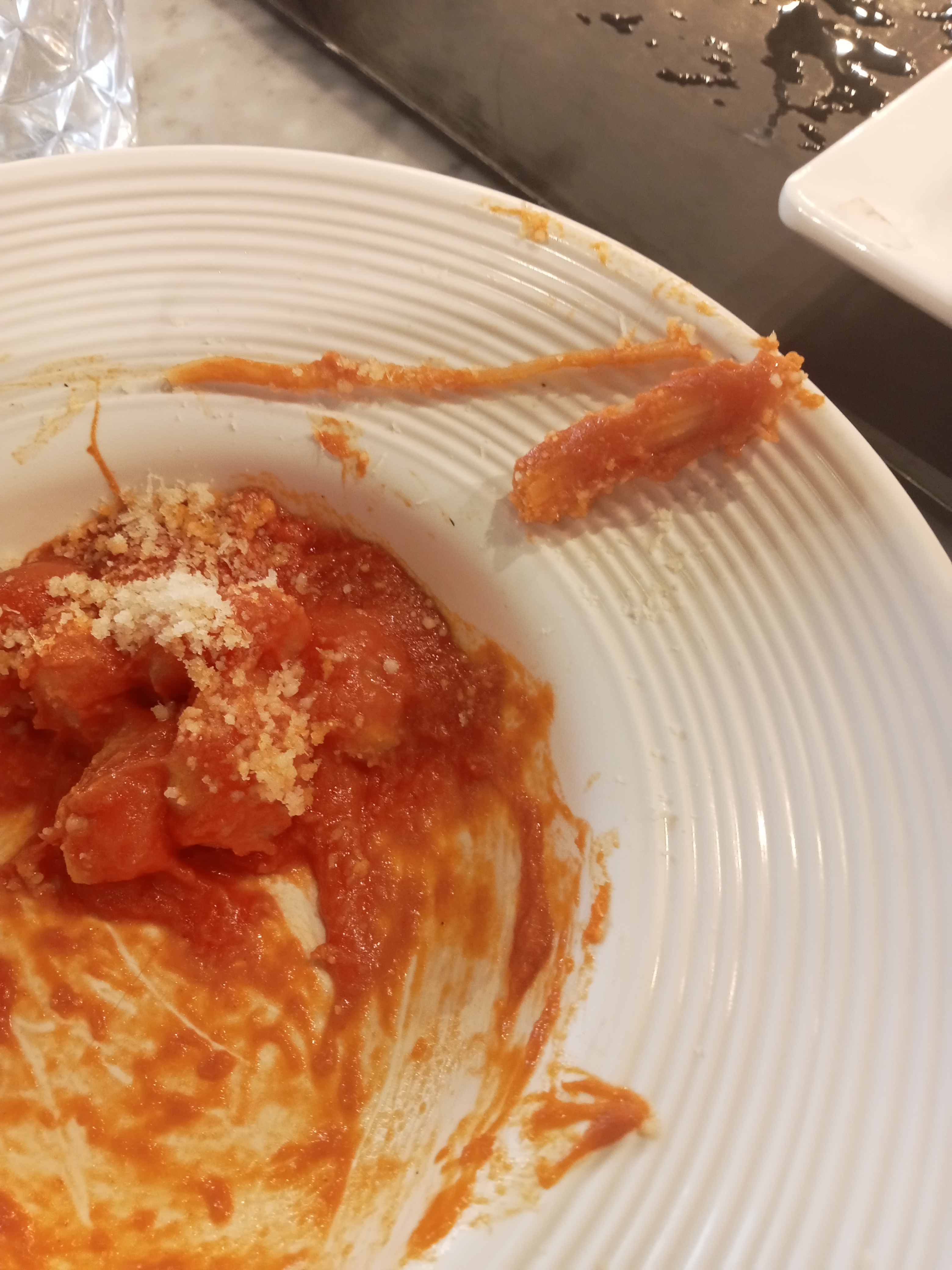 Catastrophique Personnel incompétent, à l accueil notre vendeur va chercher les couverts un par un. A table nous sommes 3, nous n avons pas pu manger ensemble 30 minutes pour faire une pizza. Des carbonara beaucoup trop salées ( peut-être un objectif de vente de boissons) Des gnocchis avec des invités ( autres pates au milieu) Et je vous passe les assiettes sales et ébréchées. Attention au cuisinier des pâtes que s essuie le front. Oui il faut aimer aussi la transpiration