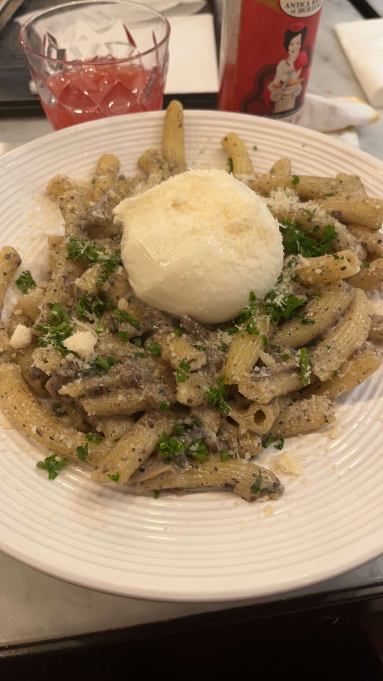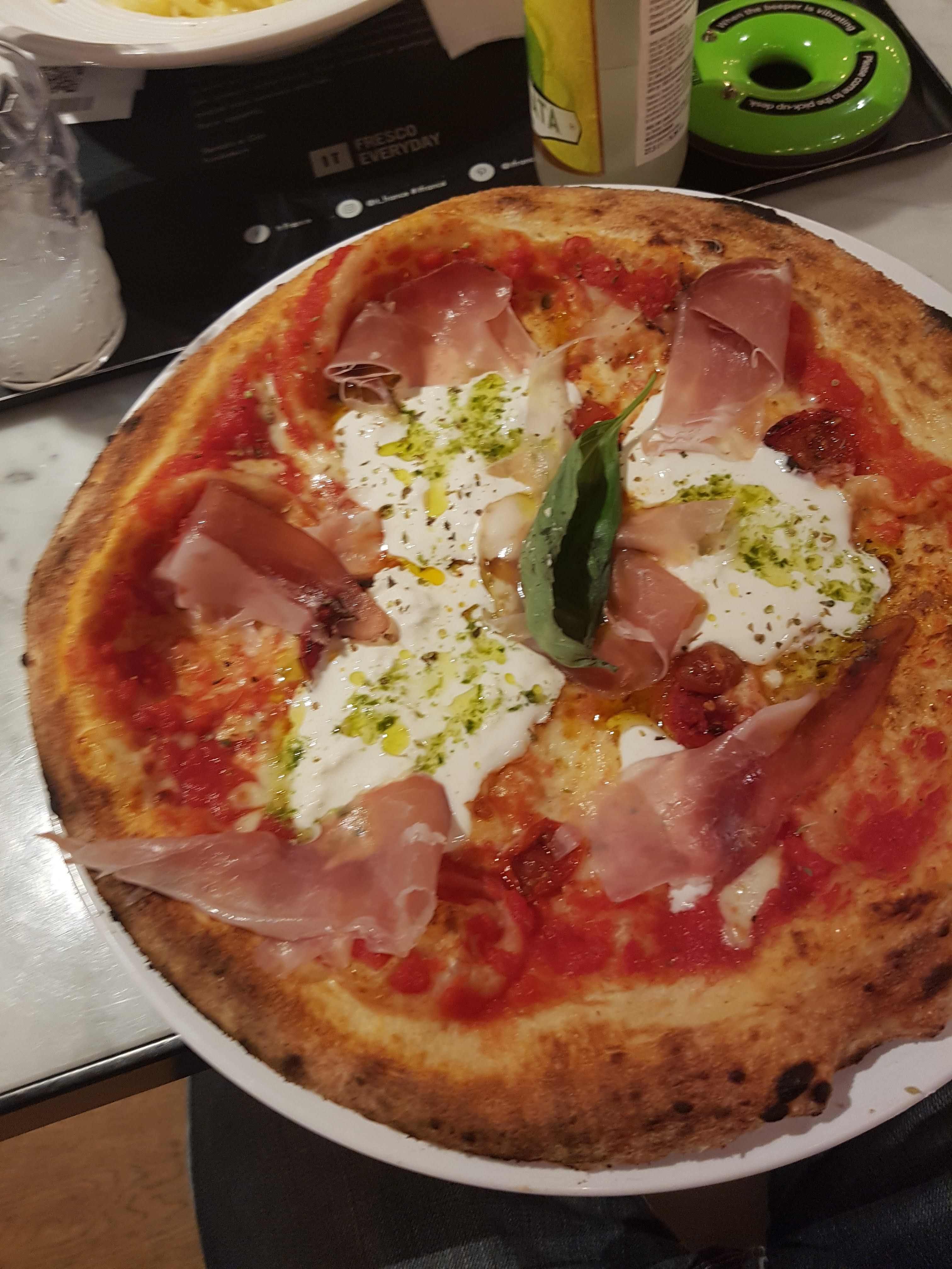 Super restaurant, j’ai commandé une bouteille de vin blanc, malheureusement après même que le serveur (très efficace au passage) m’a déposé ma bouteille, un saltimbanque de la pire espèce s’est précipité sur la bouteille et l’a descendue. Je reste choqué de ce geste encore aujourd’hui….. Point bonus pour la burrata qui est sur la pizza ce que la cerise est sur le gâteau 🤝