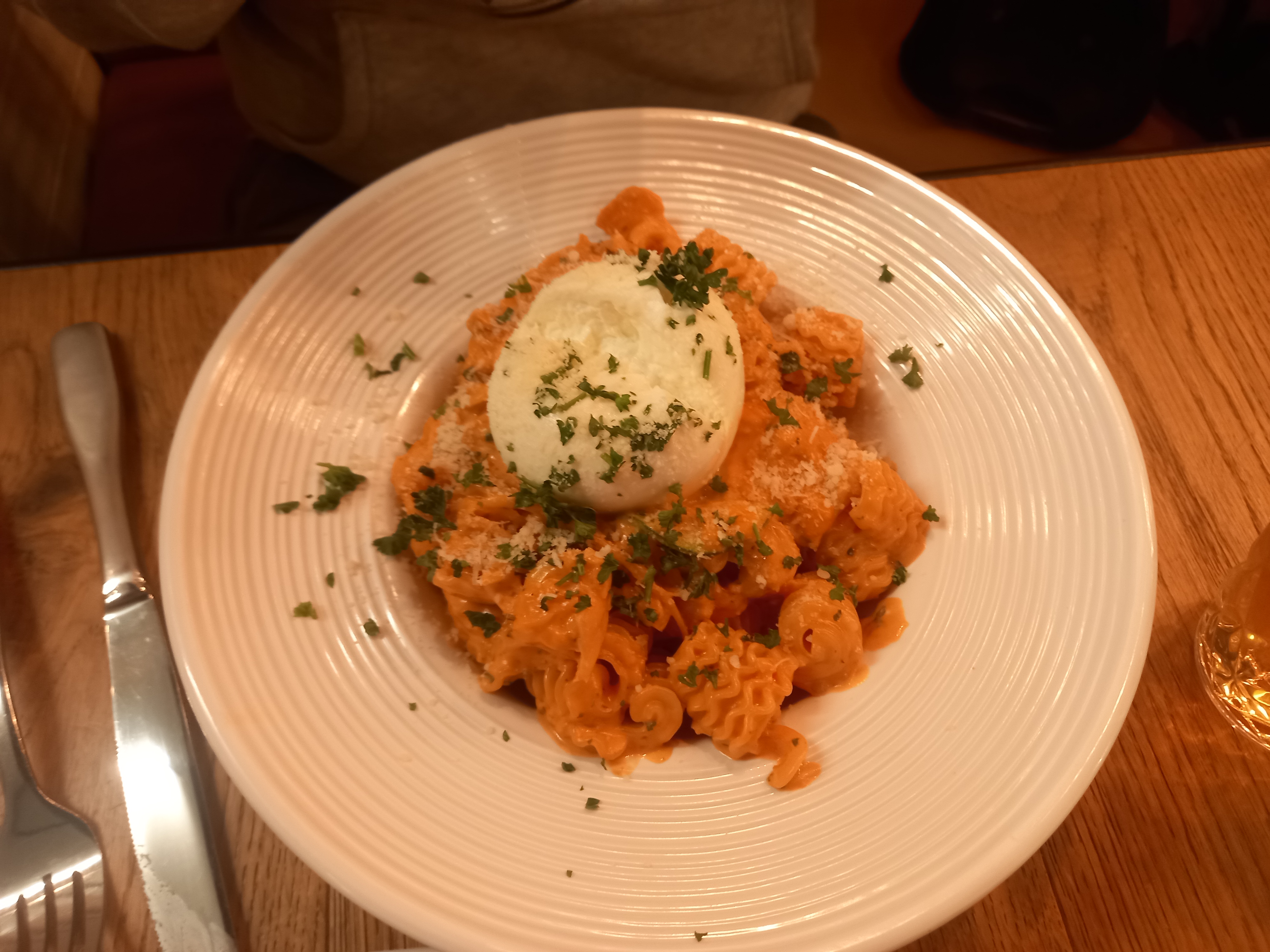 Bien que ambiance très chaleureuse mon plat de pâtes n’étais pas accompagné de sauce basilic mais d’huile basilic et je ne grince pas à revoir l’état de la carte