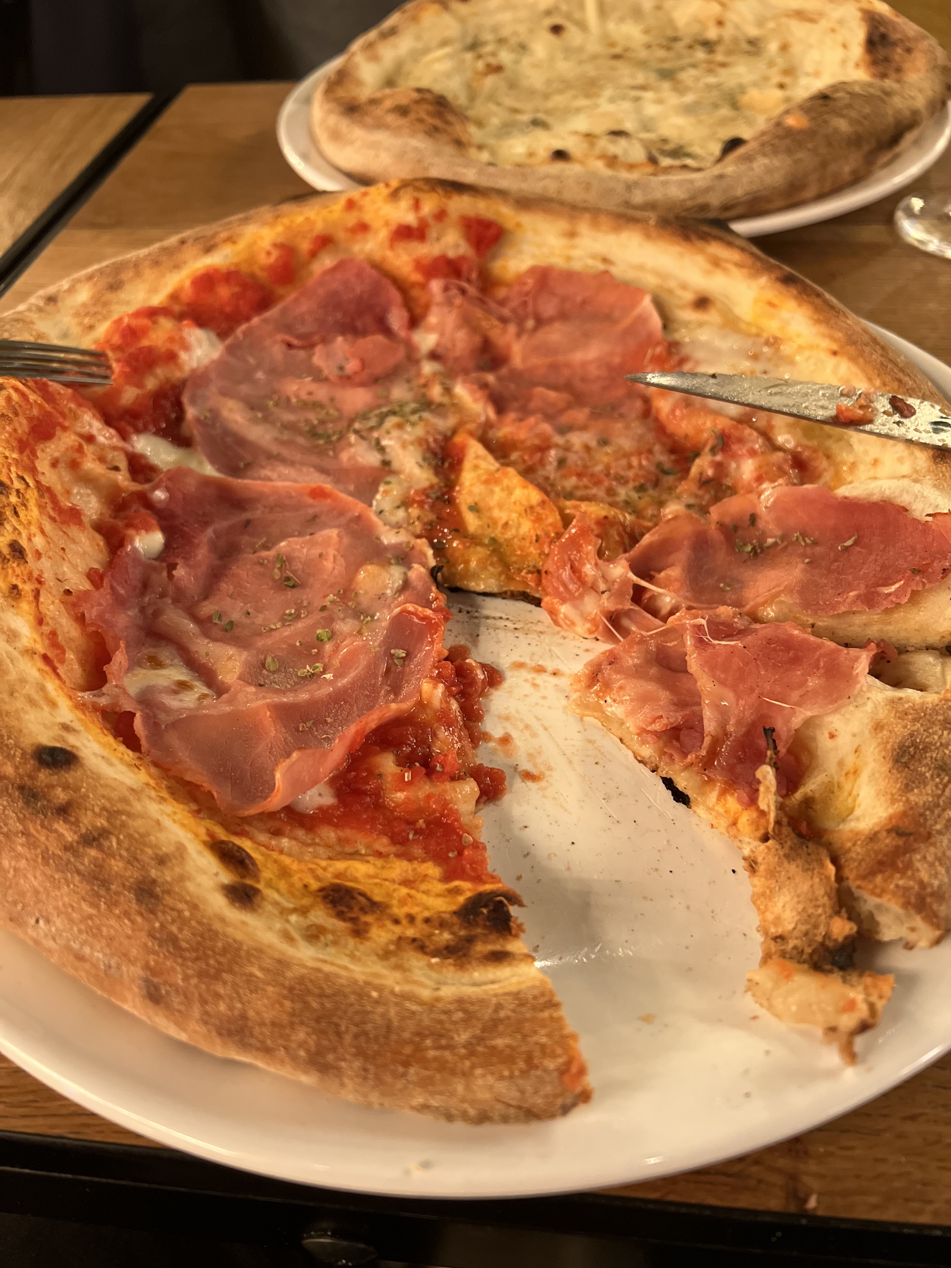 Par où commencer… Prise de commande désorganisée, et parcours du combattant pour récupérer ses plats et ses boissons : certain à demander soi même directement en cuisine, mais seulement après avoir mangé l’entrée (qui nous attendait depuis un moment en cuisine puisque notre « buzzer » n’a jamais buzzé). On va aussi chercher ses boisson au bar, mais non finalement on ne va pas les chercher on nous les prépare puis on nous les ramène. Puis on attend les plats, avec 2 salades italiennes et une pizza au jambon blanc 1er prix parceque la cuisine « est en rupture de jambon italien » (oui, dans une trattoria, un samedi à 20h 🤣). Salades vraiment pas terrible, avec une mozzarella qui a plus la consistance du babibel. En même temps ça se marrie mieux avec le jambon herta. On se sent presque mal à l’aise pour le personnel qui se débat dans cette espèce de bazar, qui, ce soir là en tout cas, ne fonctionne pas. Il semble y avoir dans cette cafétéria/trattoria autant de personnel que dans un restaurant classique, mais sans le service en table. Deux étoiles pour le cadre, sympa mais ça ne rattrape pas tout.
