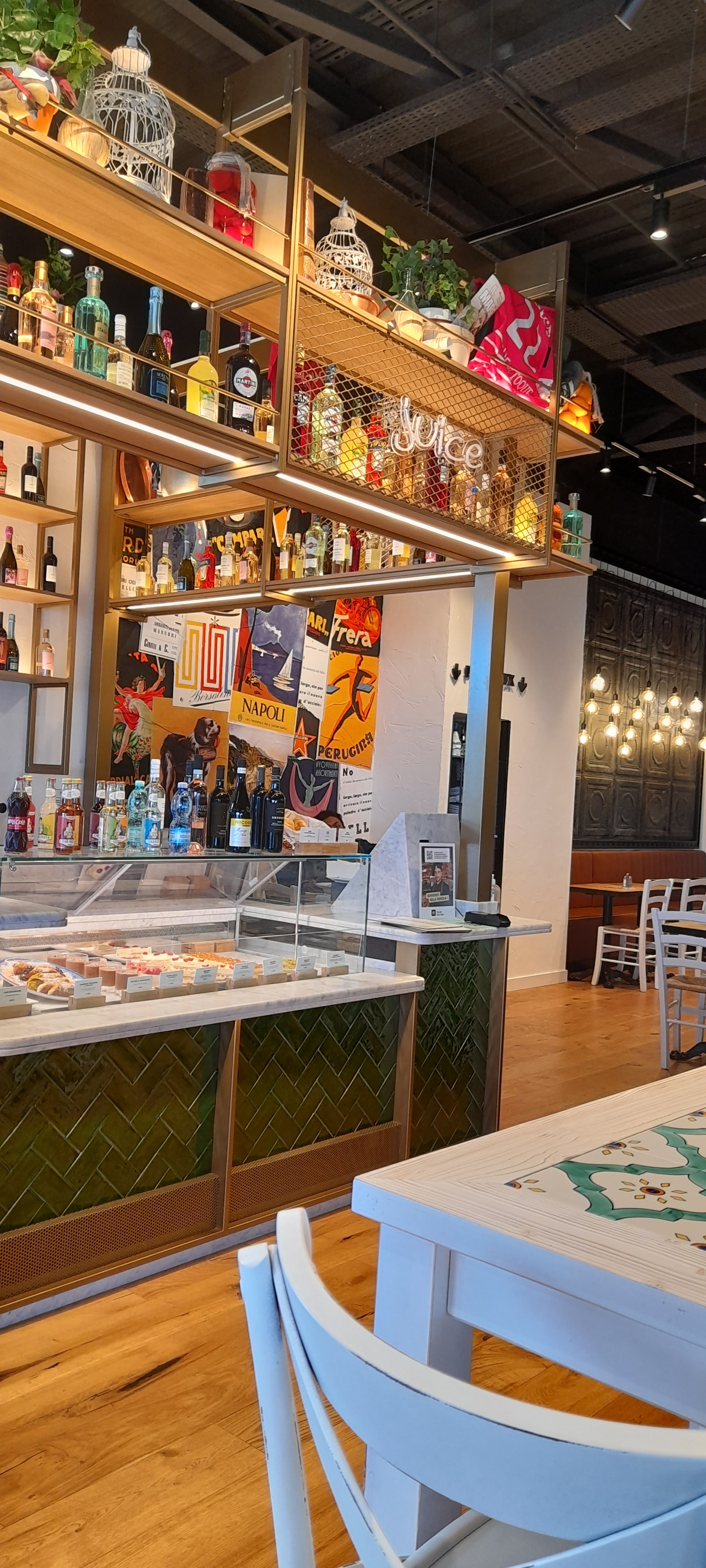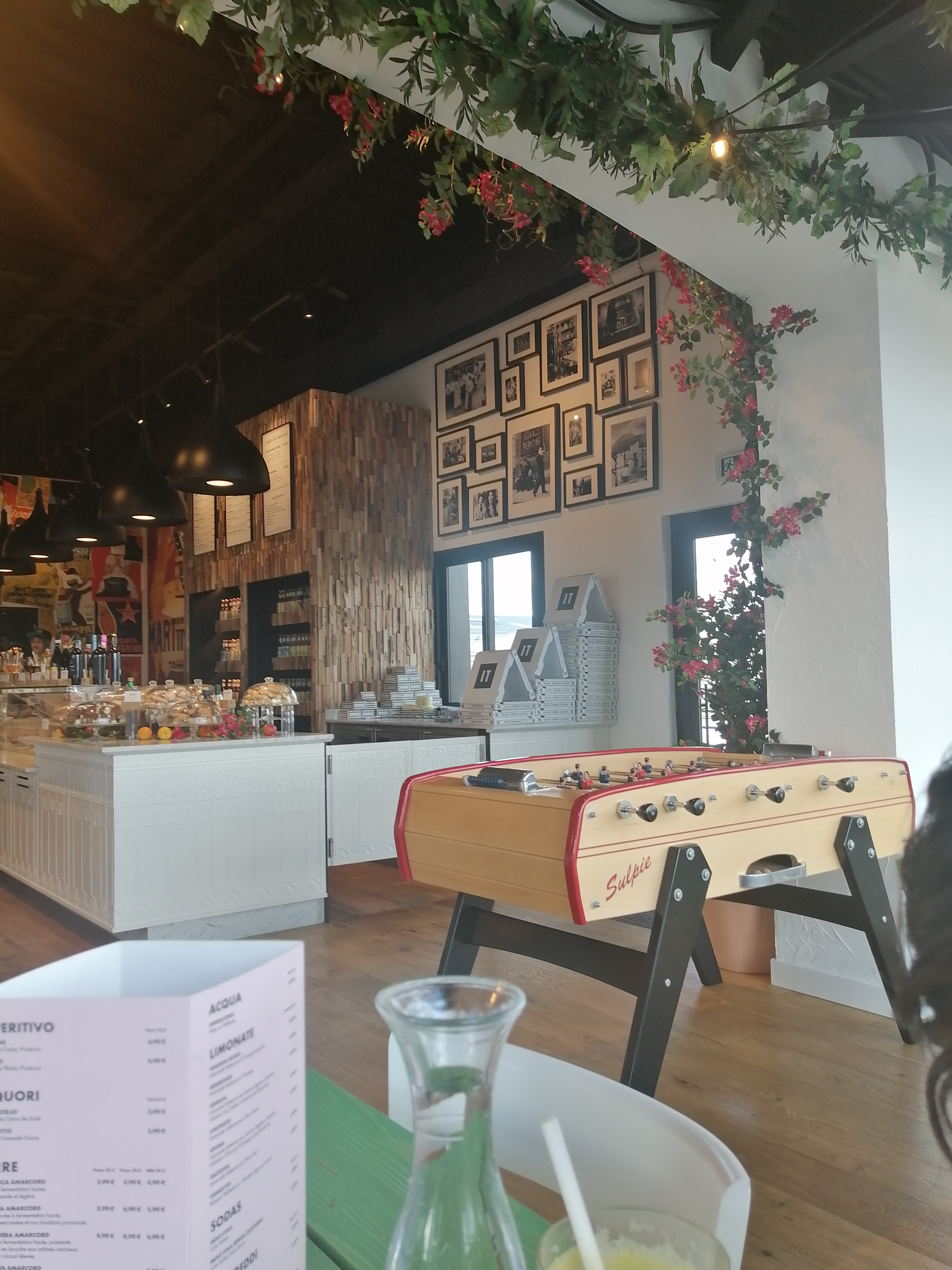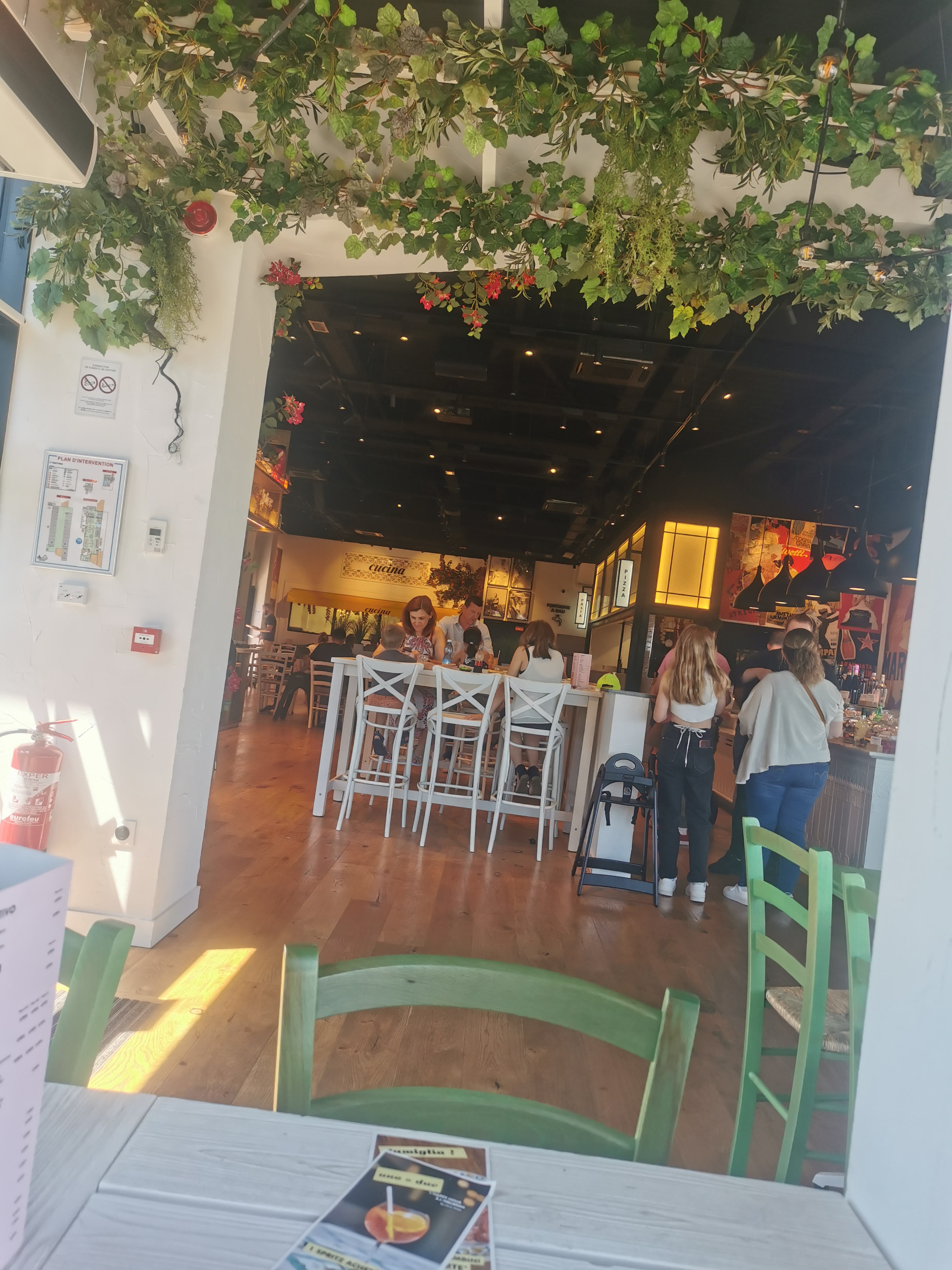 Un vendredi soir . Nous sommes allés mangés en famille 3 adultes et 1 enfant . Première fois , le concept avait l'air sympa . Le jeune homme nous a très bien expliqué pour les entrées / plats/ desserts... Des bipers pour les plats...des tickets pour les boissons...nous ne pouvons pas prendre notre apéro sans payer tout de suite ni sans notre commande complète .. et oui il faut aussi débarrasser...( Bon ça c'est moins grave).. la déco est superbe. Mon mari a pris des pâtes del capo avec du saucisson italien ( genre 1 ou 2 tranche coupé en tout petit morceaux melangé a une sauce tomate basique) aucun goût de ricotta non plus. Lantipasti de mon gendre a 19.90 pour un plateau de charcuterie pour 1 personnes avec jambon blanc etc..très bon mais c'est le prix d'un plat. Ma fille a très bien aimée le plat Bambino a 3.50 même si pour elle les pâtes manquait beaucoup de saveurs Quand a moi jia pris une salade romaine. 3 bout de poulet ...2 tr d'avocat...1c a café de parmesan en poudre + 1/4 d'une aubergine . Et 10feuilles de salades...il ne faut pas abuser ( même les salades césar de chez mc do sont plus grandes ) les produits sont de qualité par contre pour le prix et si vous avez faim . Vous ne serez en aucun cas calés. Par contre personnel très gentil serviable souriant et respectueux. Vraiment dommage nous tenterons pas malheureusement mais bon continuation