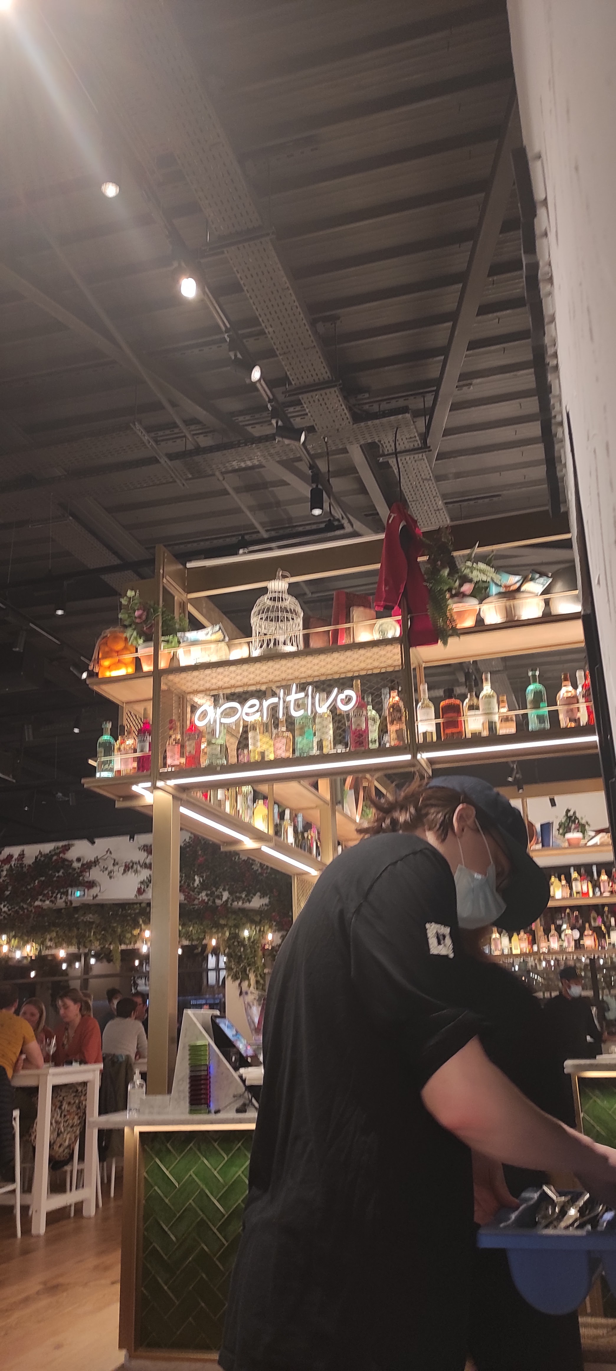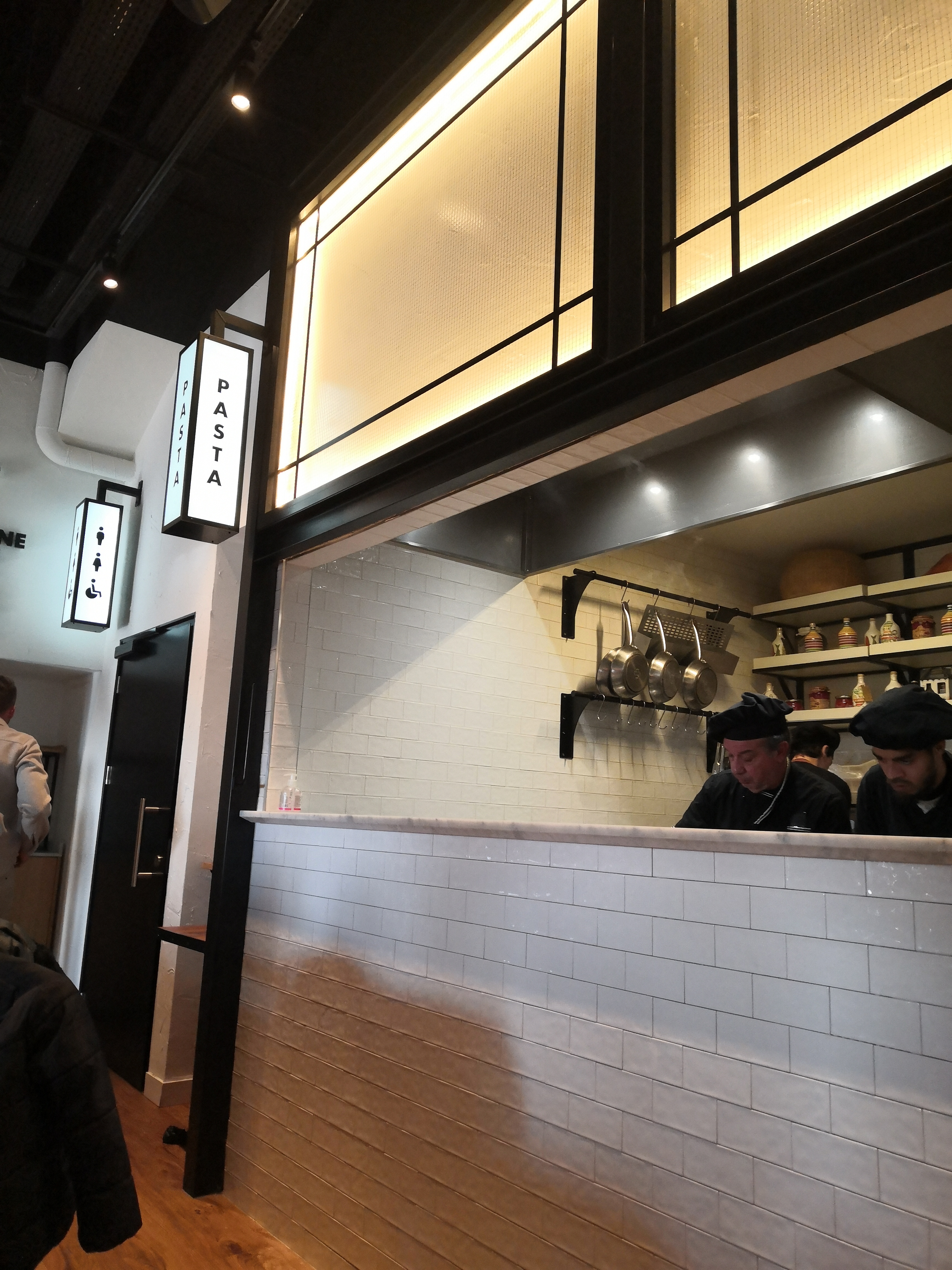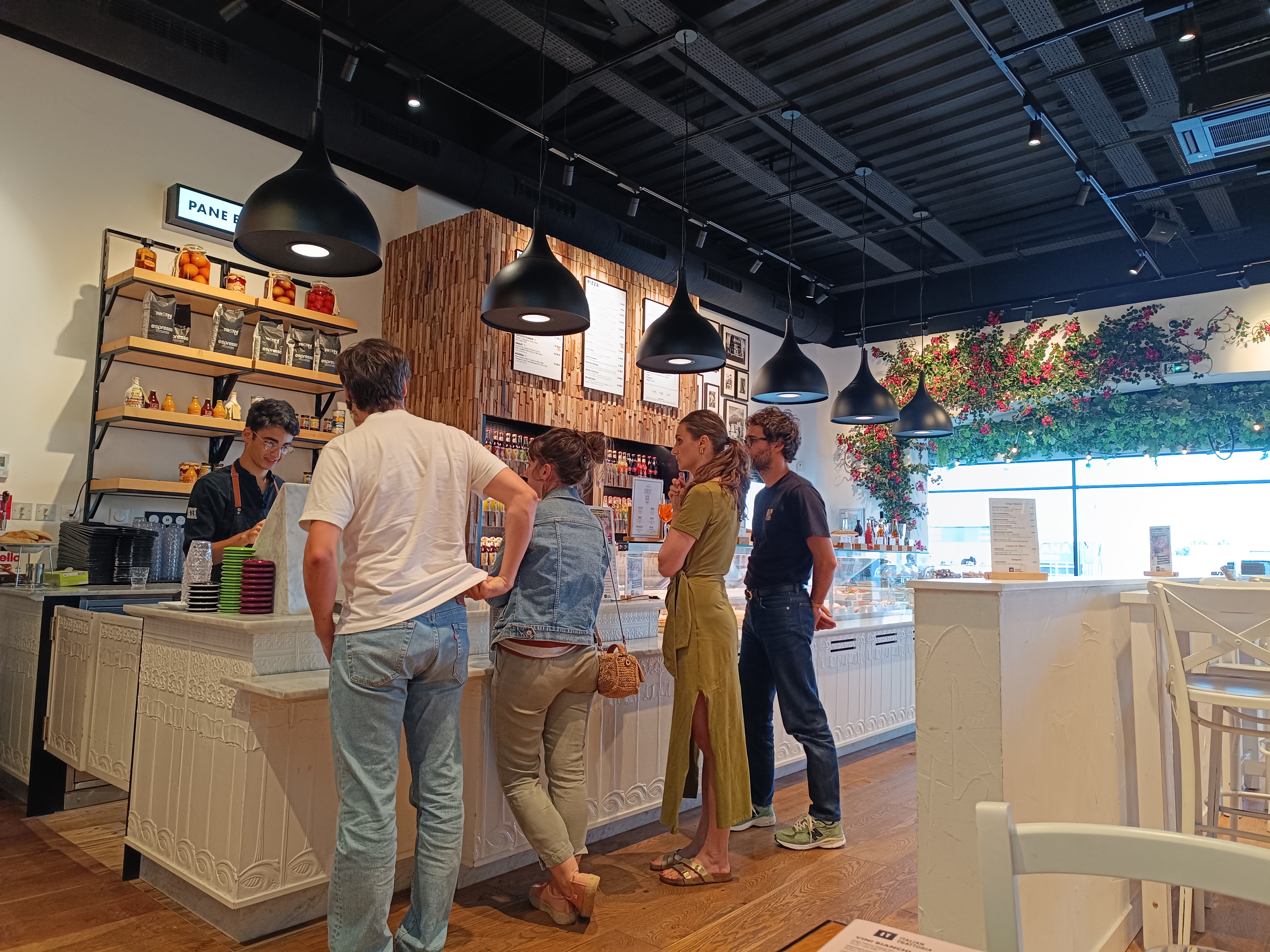 Un vendredi soir . Nous sommes allés mangés en famille 3 adultes et 1 enfant . Première fois , le concept avait l'air sympa . Le jeune homme nous a très bien expliqué pour les entrées / plats/ desserts... Des bipers pour les plats...des tickets pour les boissons...nous ne pouvons pas prendre notre apéro sans payer tout de suite ni sans notre commande complète .. et oui il faut aussi débarrasser...( Bon ça c'est moins grave).. la déco est superbe. Mon mari a pris des pâtes del capo avec du saucisson italien ( genre 1 ou 2 tranche coupé en tout petit morceaux melangé a une sauce tomate basique) aucun goût de ricotta non plus. Lantipasti de mon gendre a 19.90 pour un plateau de charcuterie pour 1 personnes avec jambon blanc etc..très bon mais c'est le prix d'un plat. Ma fille a très bien aimée le plat Bambino a 3.50 même si pour elle les pâtes manquait beaucoup de saveurs Quand a moi jia pris une salade romaine. 3 bout de poulet ...2 tr d'avocat...1c a café de parmesan en poudre + 1/4 d'une aubergine . Et 10feuilles de salades...il ne faut pas abuser ( même les salades césar de chez mc do sont plus grandes ) les produits sont de qualité par contre pour le prix et si vous avez faim . Vous ne serez en aucun cas calés. Par contre personnel très gentil serviable souriant et respectueux. Vraiment dommage nous tenterons pas malheureusement mais bon continuation