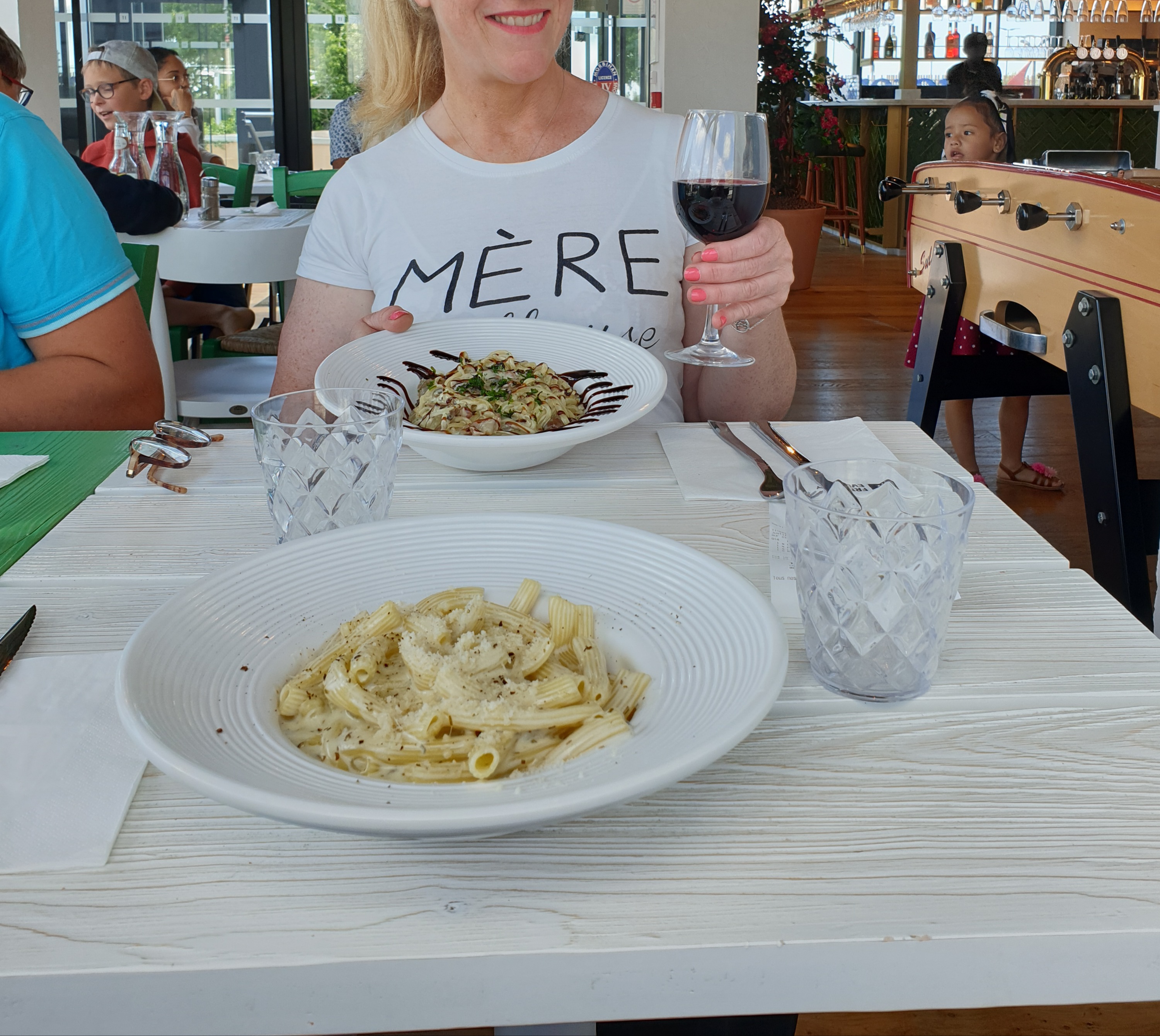 Une première pour nous mais certainement la dernière ! Déco très sympa mais pour ce qui est de la cuisine ce n'est pas à la hauteur. Pâtes sans saveur...la première fois que mes enfants ne finissent pas leur assiette. Prix trop élevés si l'on y regarde la qualité des mets servis. Vaisselle en plastique.... surprenant.