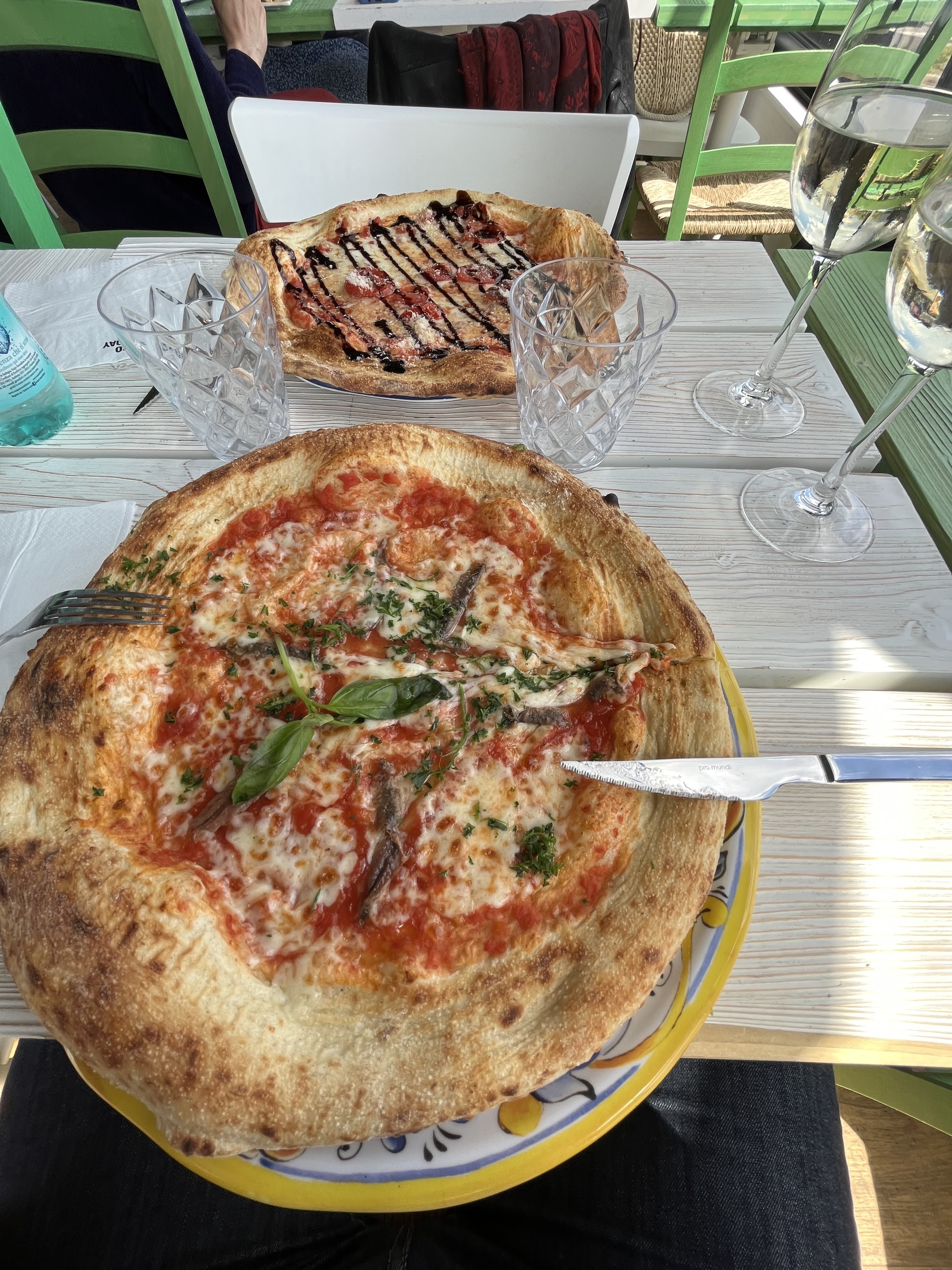 Très beau restaurant extérieur comme intérieur. Nous avons commandé nos plats nous avons été servi dans les 5 mn suivantes . Salade Romana basique , rien d’exceptionnel pas de petit plus comme oignons ou germes de soja ou même une feuillle de persil. L’apéritif a été servi en milieu de repas ( car nous l’avons réclamé) J’avais commandé un lambrusco qui n’a pas pu m’être servi car aucunes bouteilles étaient au frais. Ma fille a pris des carbonaras, il y avait que du gras et les pâtes étaient collées et pleine d’eau. Cerises sur le gâteau …. Des assiettes horribles en plastique ainsi que les verres. Dommage, ça mériterait un bon cuisinier et un responsable plus vigilant.