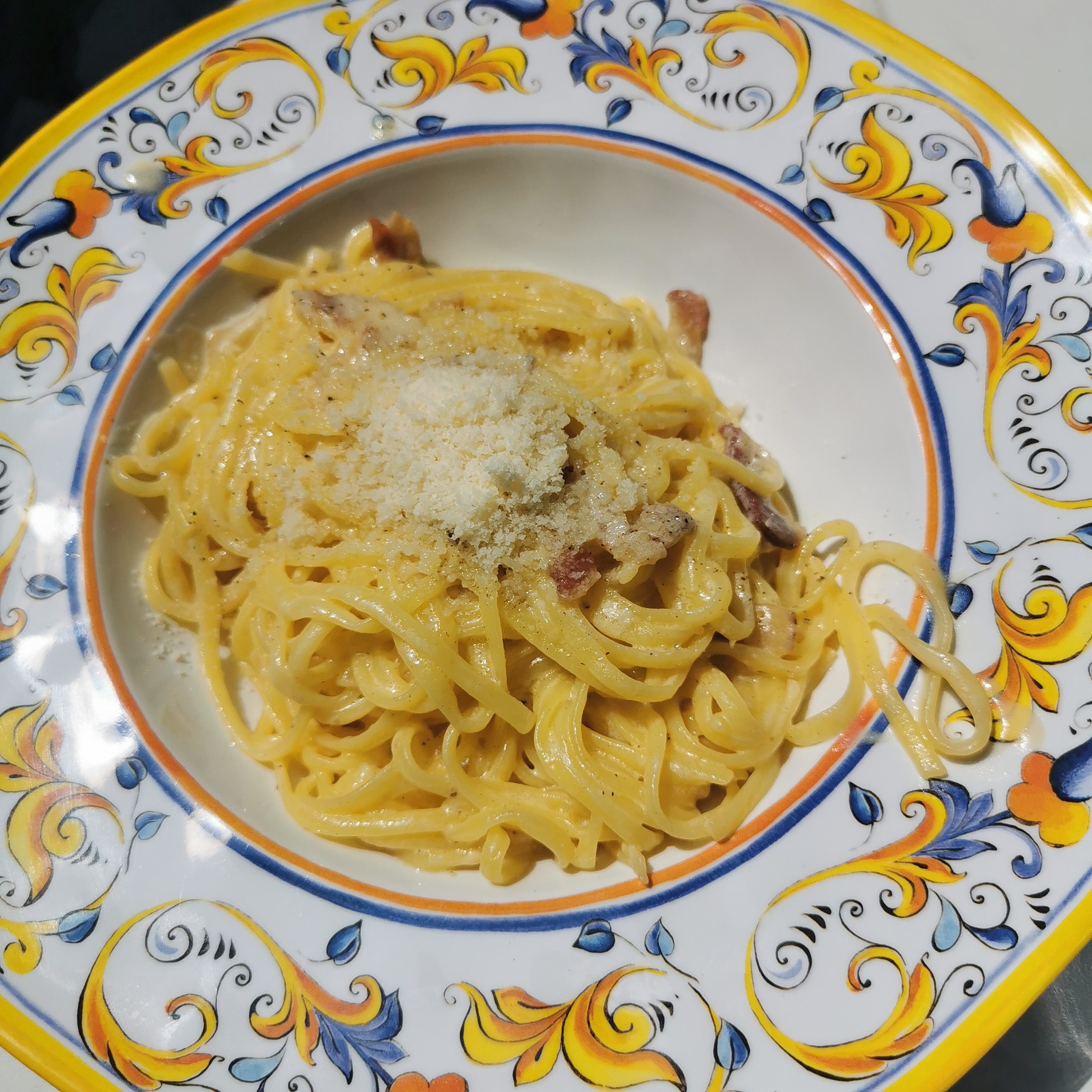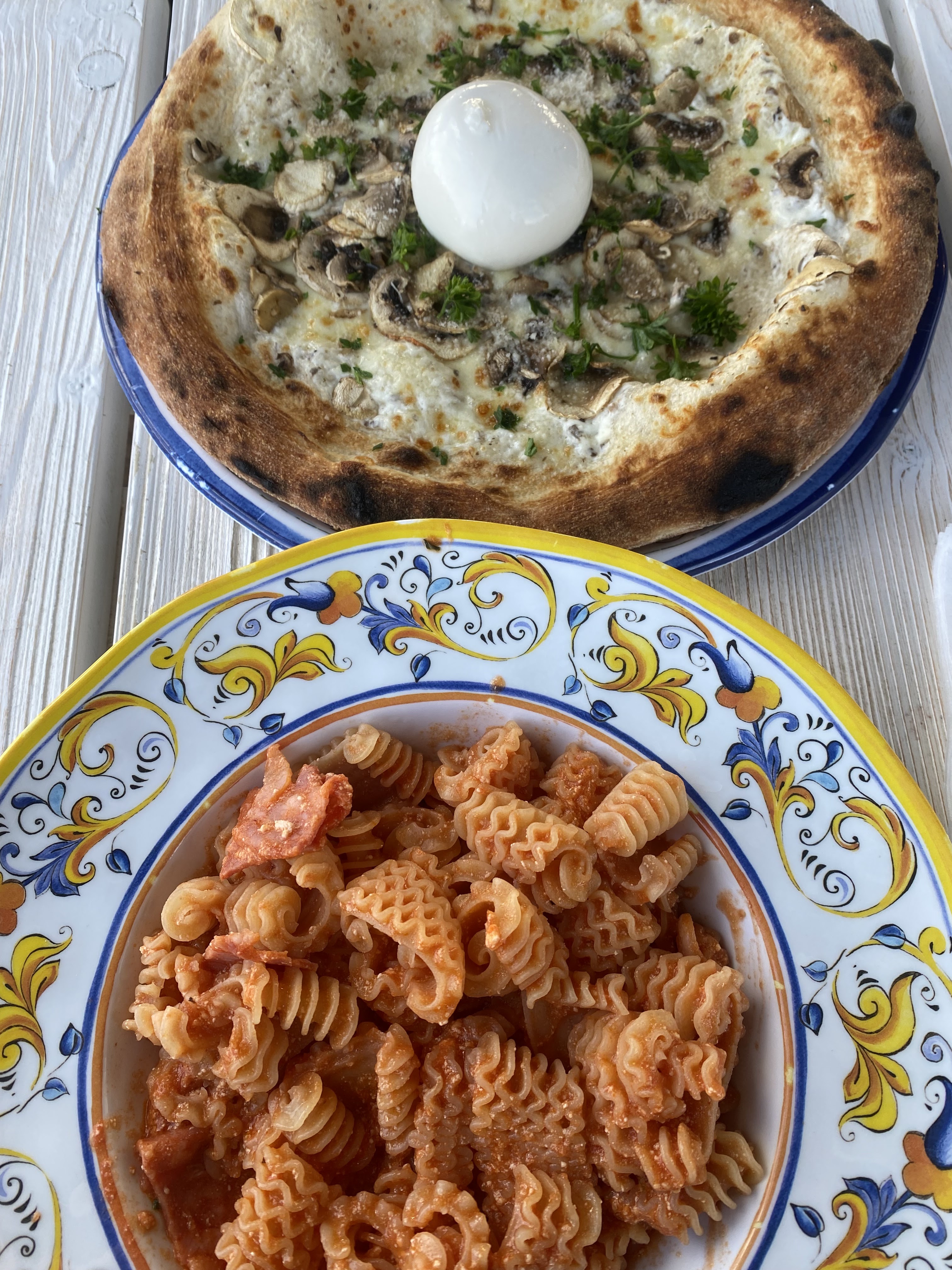 Très petites portions, très cher pour la qualité et quantité. Il faut payer pour un simple morceau de pain pour accompagner des pâtes.. Très raccro ! Les lardons n'étaient pas bons, que du gras et mauvaise odeur..De plus, il faut changer votre cola italien qui, je suis désolée, a un vraiment un goût de médicament..Dommage car le lieu est joli, le concept est bien, mais le contenu est décevant 😔