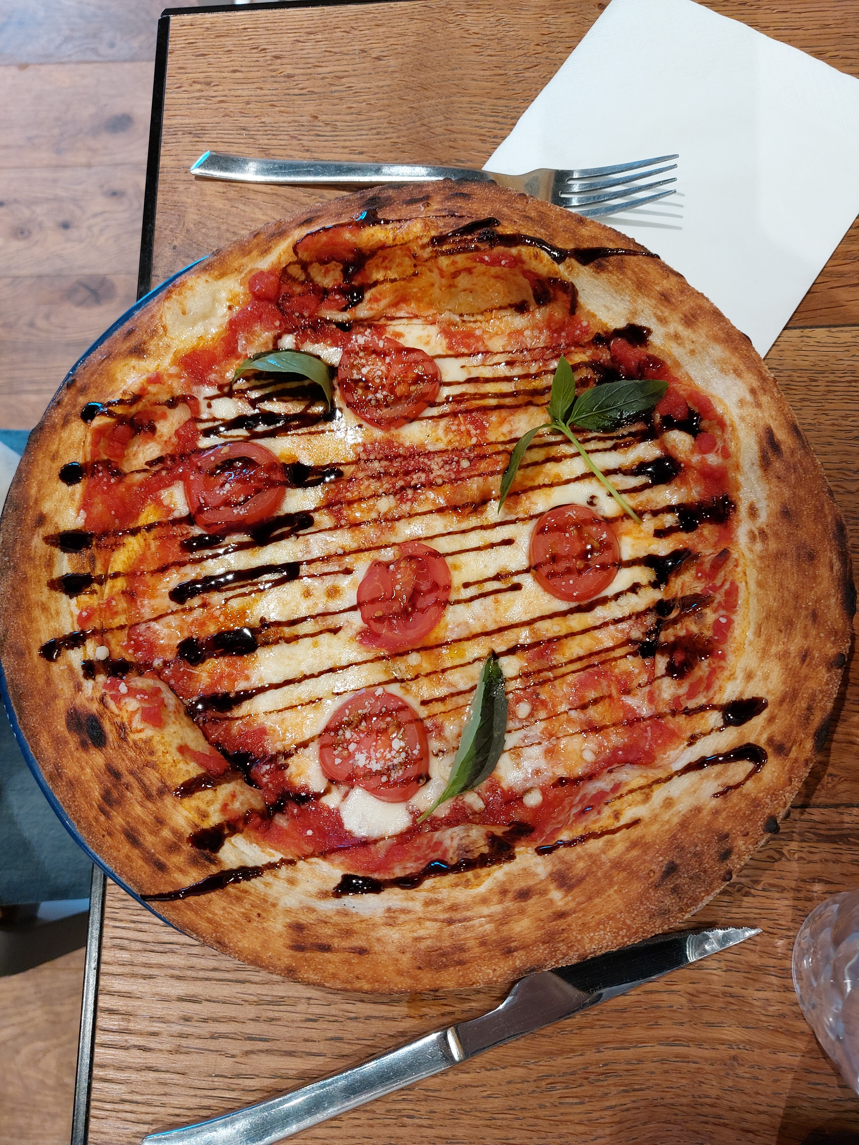 Cadre très sympathique, personnel accueillant et efficace. Cependant, très déçu de la qualité des pizzas que nous avons commandés par rapport au prix. Beaucoup de jus, pâte peu croustillante, vinaigre balsamique qui couvre beaucoup trop le goût du reste et un manque de sel. Nous avons choisis à emporter pour manger à l'extérieur, nous avons été surpris de voir que les pizzas n'ont pas été prédécoupées et qu'il aurait fallu les réchauffer dans un four. Les boissons sont bonnes, les pâtisseries que nous avons choisis sont correctes, mais font très industrielles.