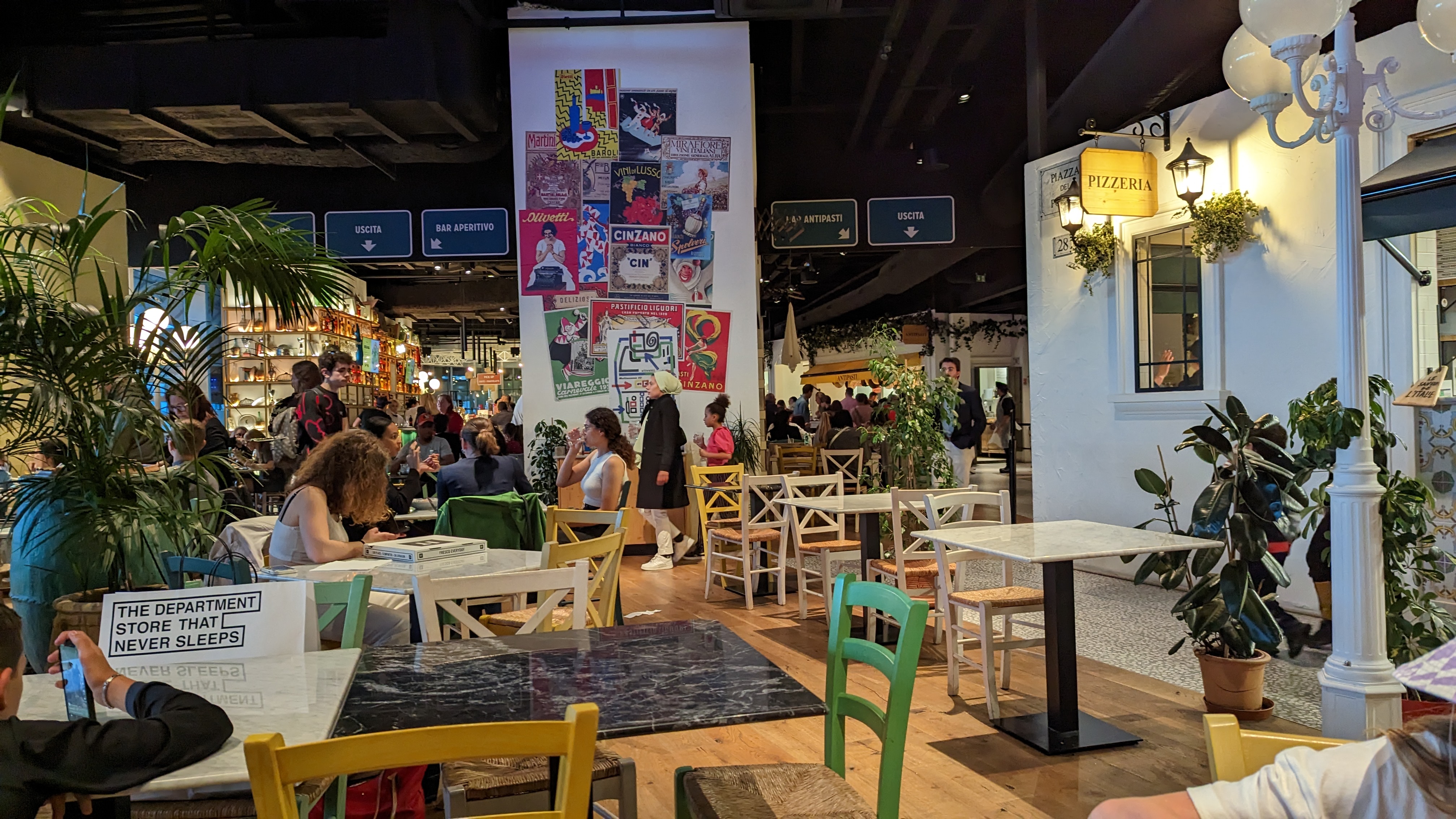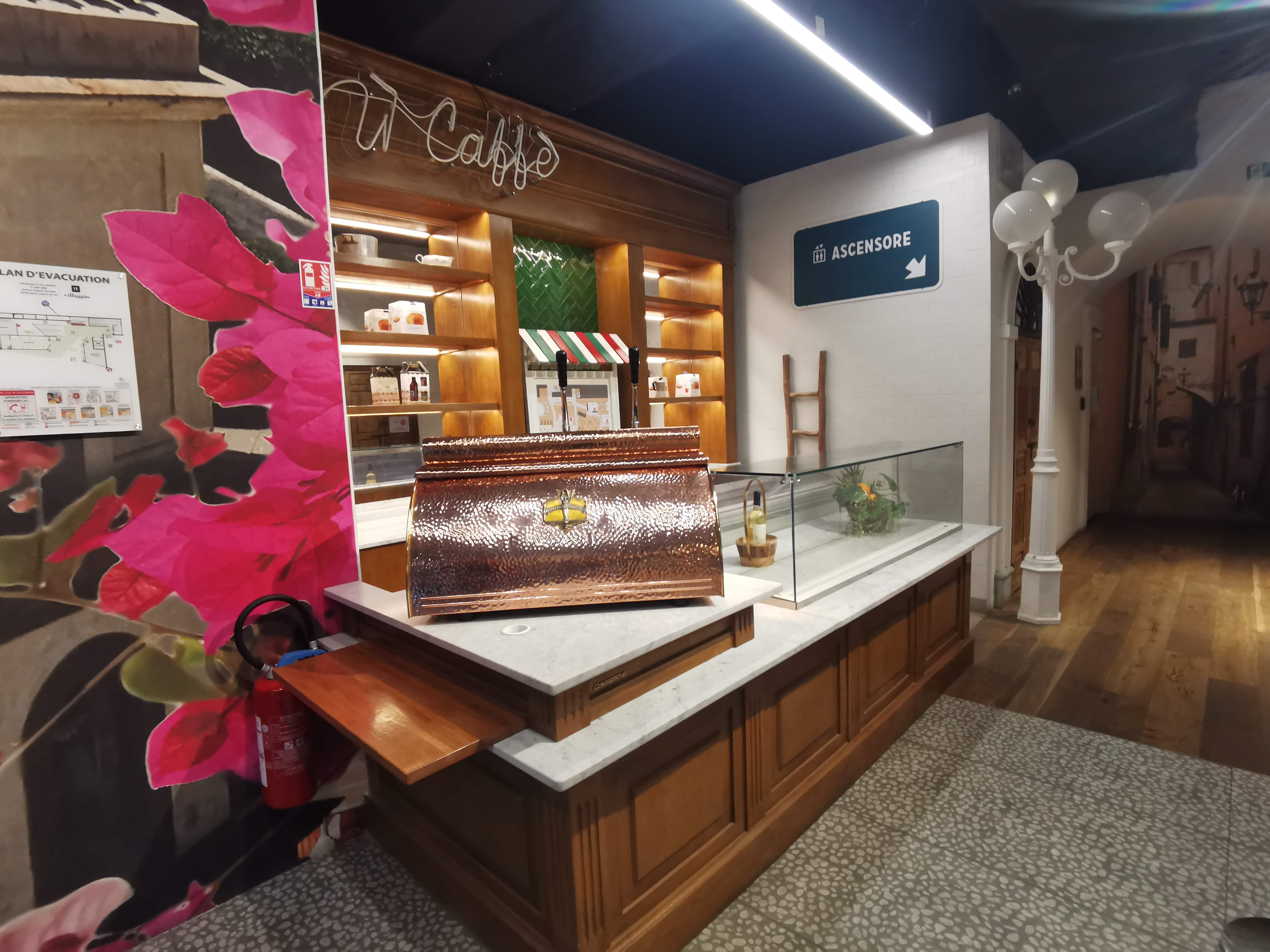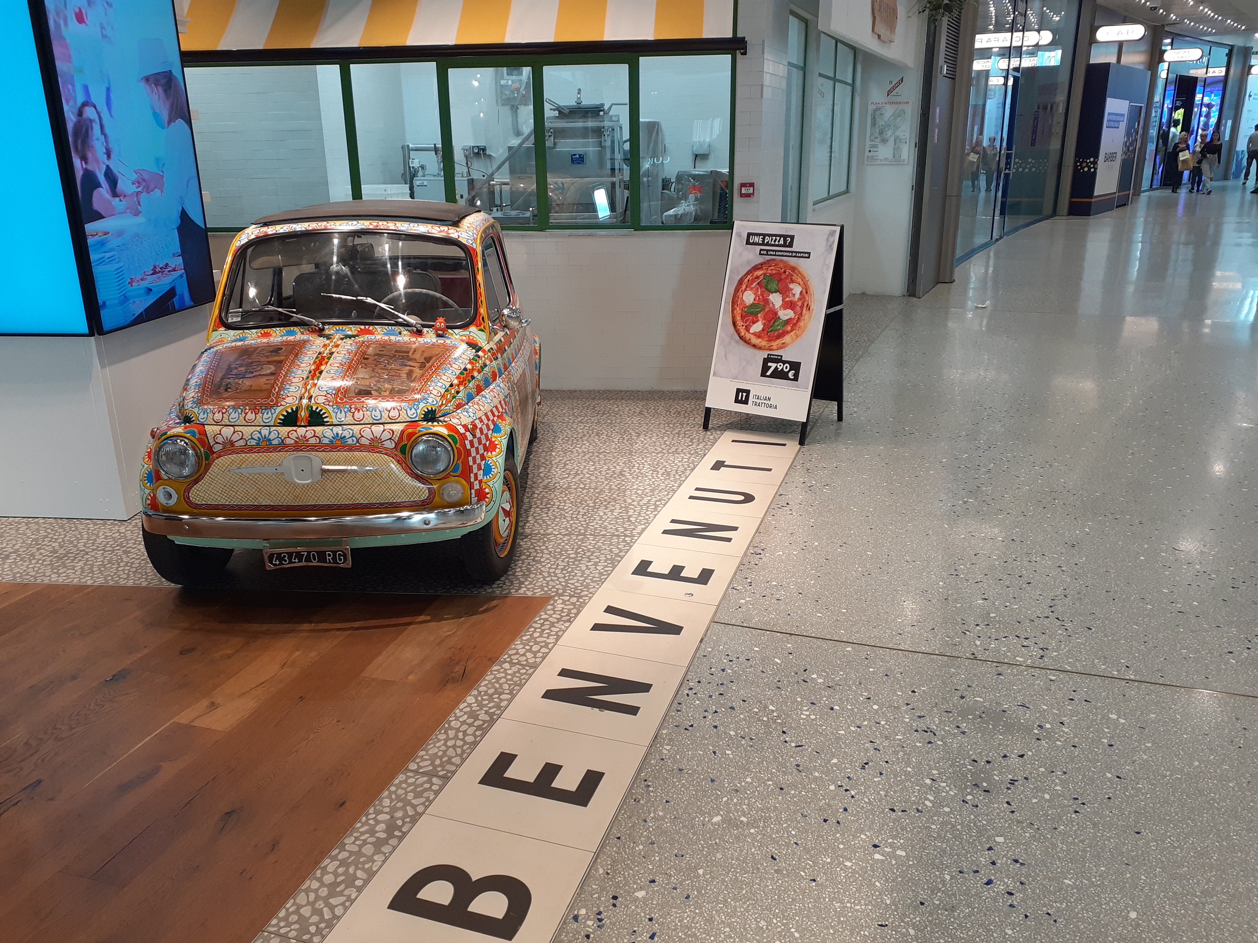 Passez un escalator pour quitter la France et vous retrouver dans une petite Italie. La déco et l'ambiance sont au rendez-vous. Pastas, pizzas, pâtisseries... Bienvenue en Italie !