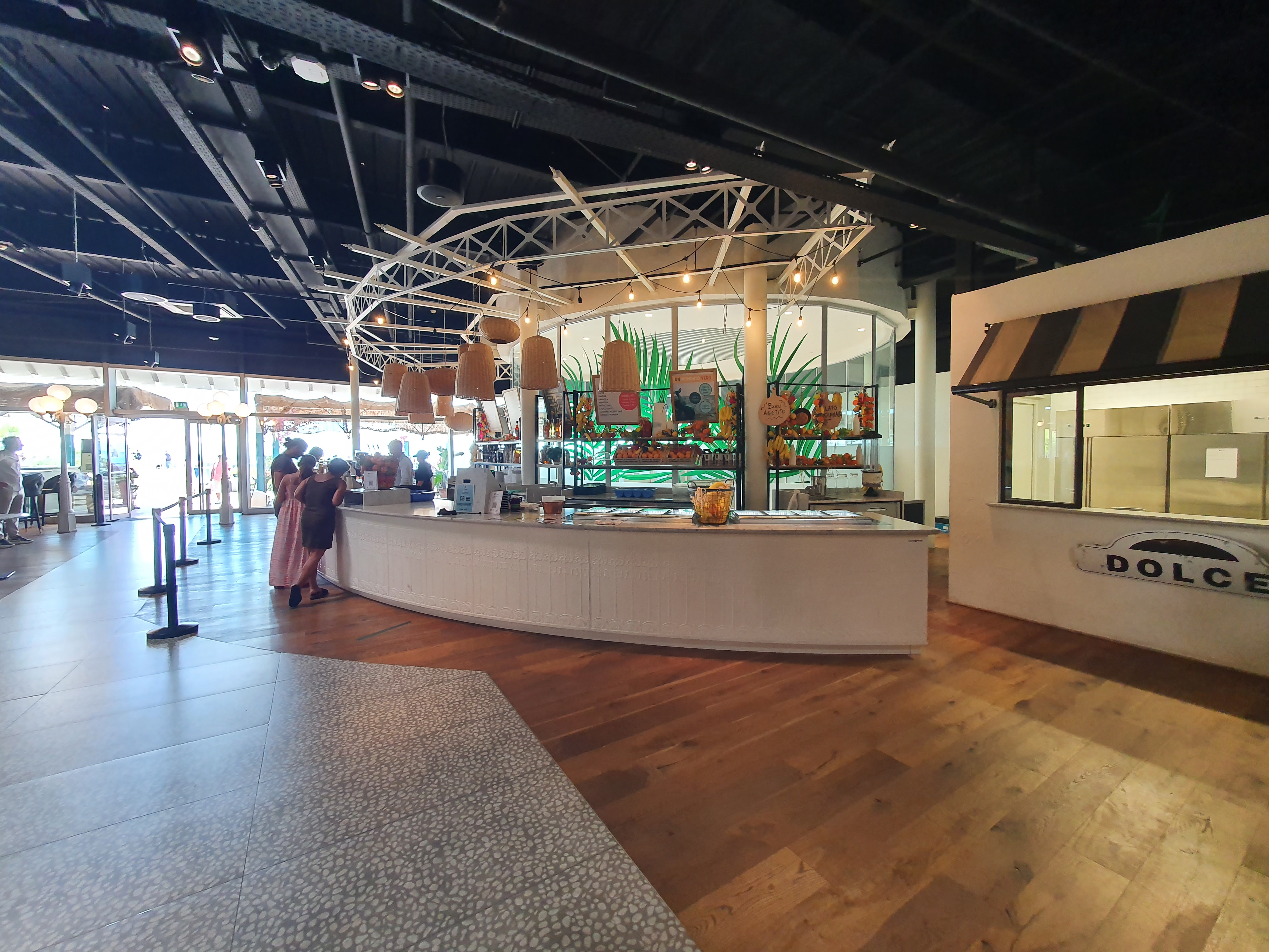 Vraiment pas mal, bonne cuisine italienne, mais quand même un peu cher pour ce que c'est. La décoration, le lieu est top. Des qu'on monte les escalators on se croit en Italie ! On peut sintaller dans n'importe quel coin avec une ambiance différente pour chacun. Pareil pour les plats on les choisit dans plusieurs stands, spécial pâte, spécial salade, spécial pizza et on va s'asseoir. Le petit plus est l'immense terrasse parfait quand il fait soleil avec vue sur la mer. Je conseille