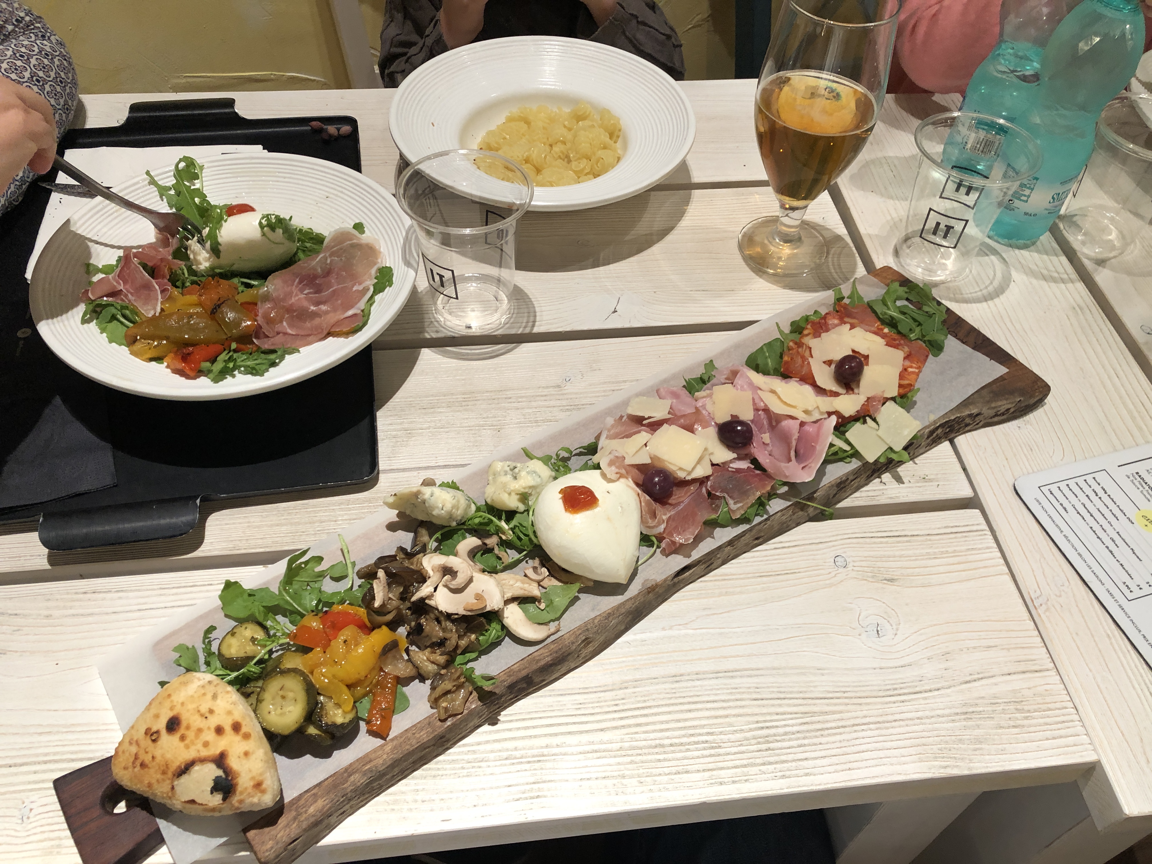 Endroit sympathique. Concept original. Antipasti très chouette. Torsadé al limone délicieuse. On peut voir les avions atterrir ou décoller