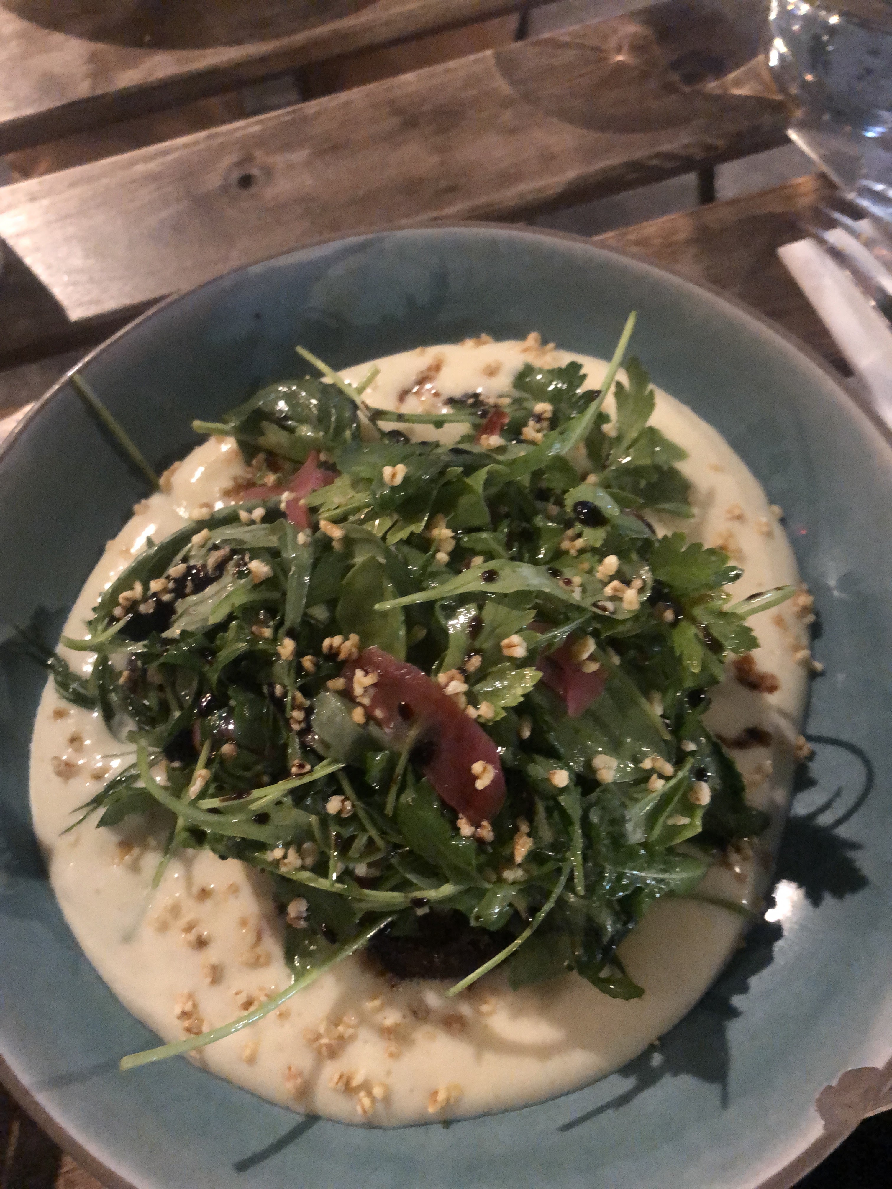Cuisine chouette et originale, lieu convivial. Gros bémol sur le service.. On a pu se mettre à table à 22h30 pour une réservation à 21h30 alors que la contrepartie lors de la réservation est de laisser une empreinte bancaire de 150 euros... Disons que l'un ou l'autre, ça peut encore passer.. Les 2 à la fois, c'est un peu gonflé ! Surtout quand on nous presse ensuite pour passer commande.. Pensez donc a réserver sur le premier service ou à bien manger pr le goûter :)