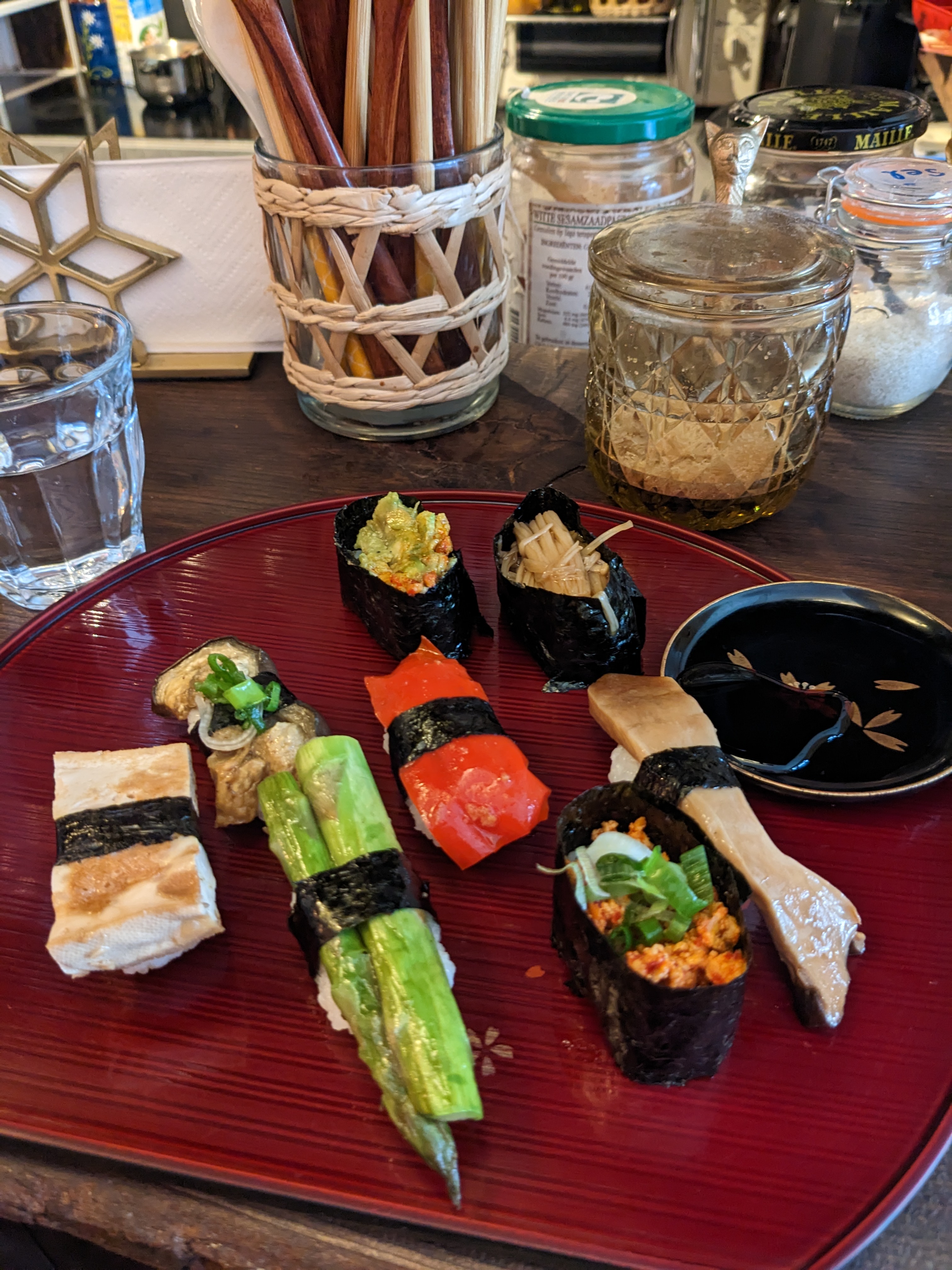 Un petit restaurant japonais sympathique 100% vegan . Les sushis sont bon et le dessert aussi . Prochaine visite je testerai les ramens. Attention les places sont limitées et assez étroites. Le comptoir assez chargé déjà on a du mal à sortir si les places sont prises et avec le carton à l’entrée. Je recommande un vrai restaurant japonais dans le 20e 👍🏼