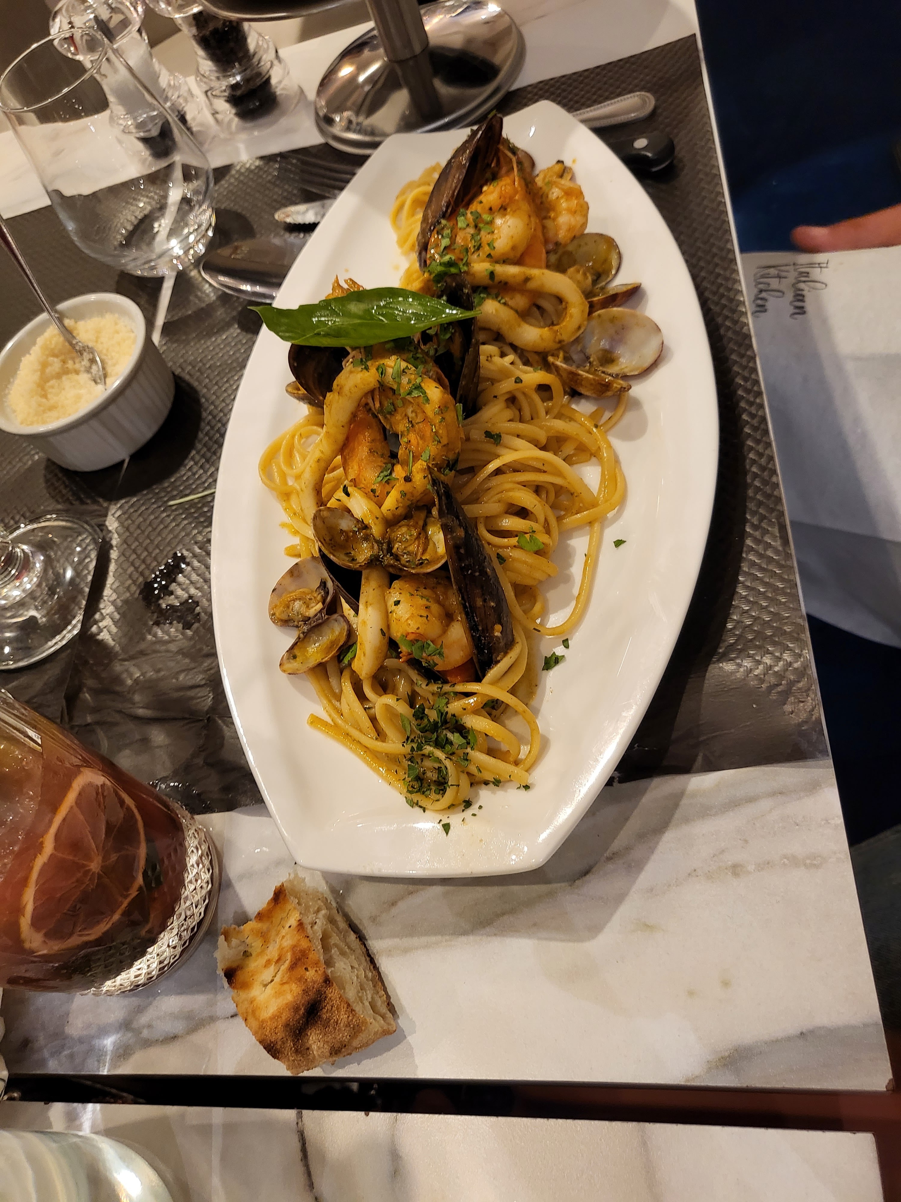 Découverte de ce restaurant. L'accueil est parfait, le service est rapide avec des serveurs à l'écoute et agréables. Un régal pour les papilles gustatives, un grand choix de plats pour plaire à tous les goûts. Une burrata di bufala au four à ne pas râter en entrée. Un tiramisu maison aux pistaches en dessert ... incroyable! Et je me suis laissée tentée par les linguine aux fruits de mer! Un délice. Je reviendrai les yeux fermés dans ce superbe établissement.