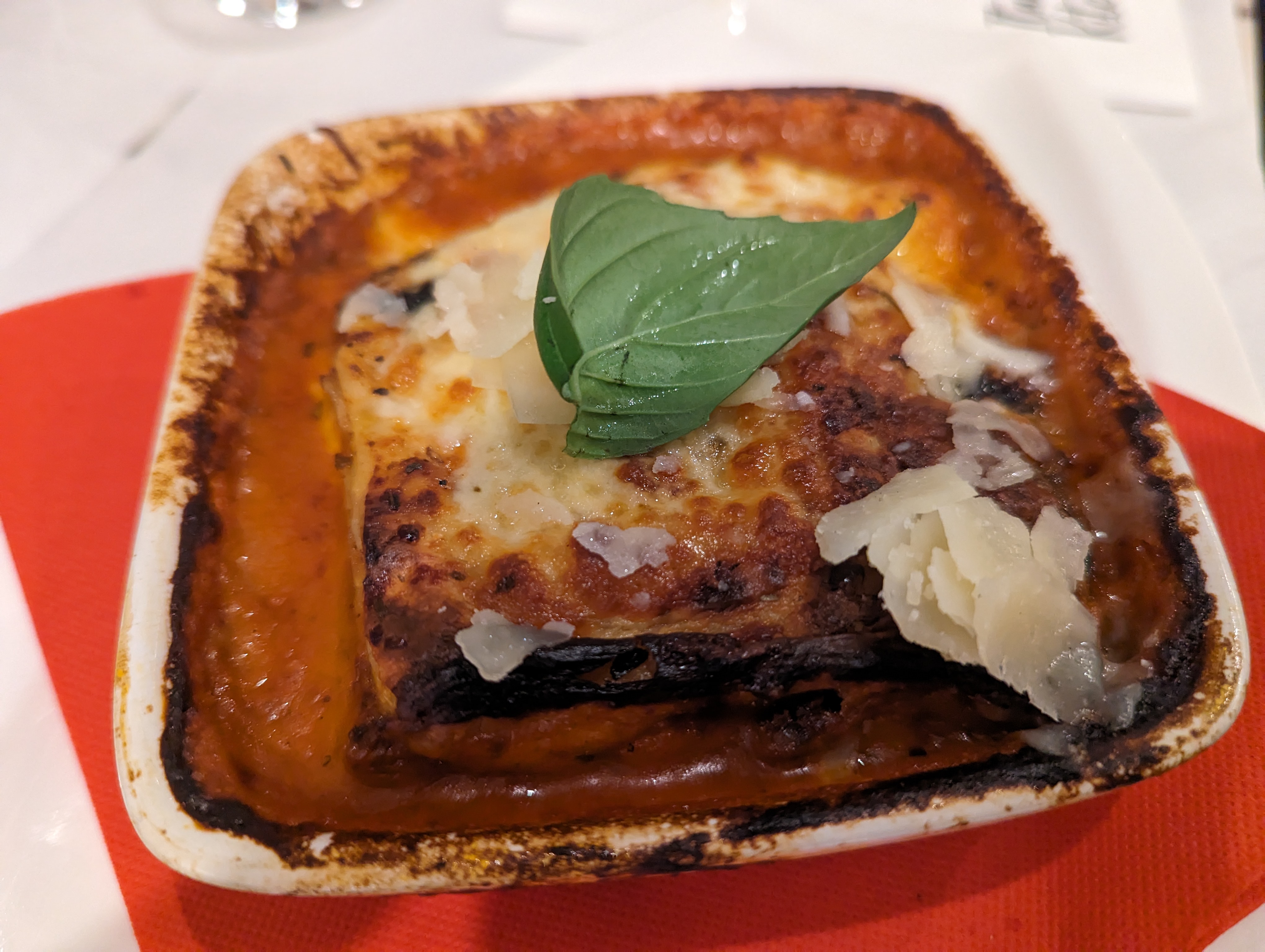 Restaurant très propre et service efficace. Venue pour une envie de lasagnes et repartie avec un estomac plus que satisfait. Merci à Adrien pour sa bienveillance. Revenue 3 jours après avec un super service de Paulo Axes d’amélioration : les set de tables sur les petites tables casse la classe de l’établissement, petite frustration sur les stocks manquants de thé glacés italiens et une salade serait la bienvenue en accompagnement des lasagnes.