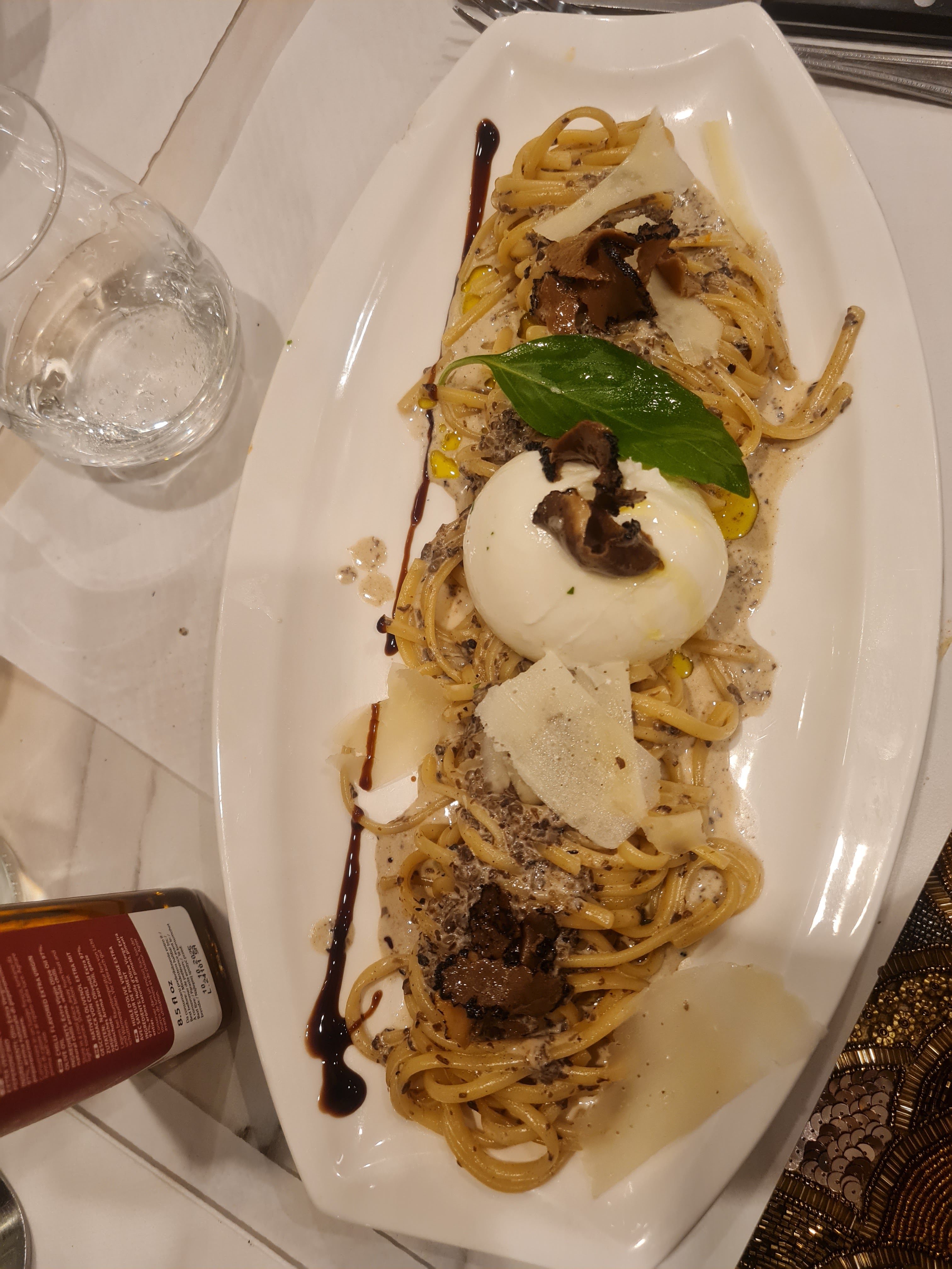 Honnêtement, tout était parfait que dire. La nourriture est tout juste exquise. J’ai pris des pâtes à la truffe, les meilleures que j’ai mangé de toute ma vie. Mention spéciale au tiramisu pistache qui est juste excellent. L’accueil y est chaleureux. Une bonne ambiance intimiste est au rendez vous et une décoration luxueuse. Le rapport qualité prix est raisonnable. Tout est propre franchement allez-y sans hésiter. Service voiturier en plus!