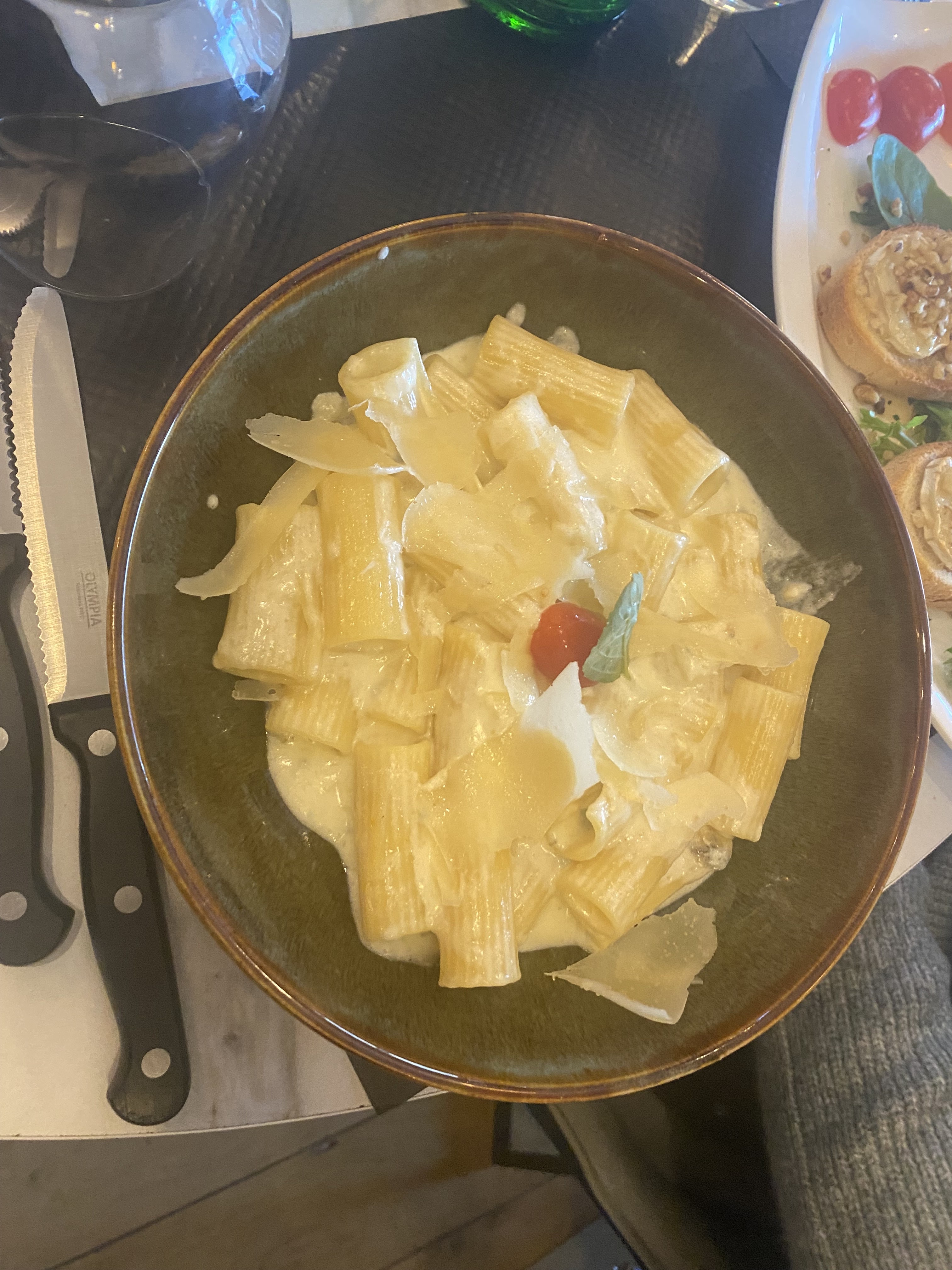 Je n'ai jamais mangé de pâte dans un restaurant c'est parce que je la fais à la maison mais celui-ci était incroyable, j'y suis allée pour mon 1er anniversaire avec mon mari, il a pris de la truffe avec de la purée de viande et j'ai pris des pâtes au saumon fumé, c'était comme en Italie 🇮🇹, il y avait un peu de monde et nous avons dû attendre un moment mais nous avons apprécié. Le tiramisu pistache est fortement recommandé ♥️