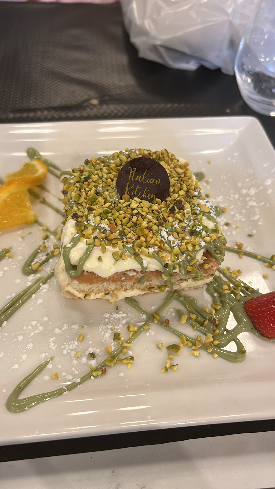 Cliente exigeante, j'ai du mal à trouver des restaurants sympathiques dans les environs (95/93). Pour autant, j'ai beaucoup apprécié ma venue à Italian kitchen de Bagnolet. Il y a du choix en entrées, plats et desserts ; même pour ceux qui ne mangent pas de viande. Les plats sont bien exécutés et c'est délicieux. Le service est incroyable : les serveurs sont souriants et vous ne vous sentez pas pressés le midi pour finir votre assiette comme dans certains autres restaurants. Il y a aussi un parking pas loin, ce qui est un point non négligeable dans la zone. Très bonne expérience, je recommande fortement et il me tarde de revenir. Photos : burrata pesto Al forno ; raviolis tartuffo et joker tiramisu (assortiment de 4 tiramisus dont 1 aux dattes, très original et magnifiquement bon)