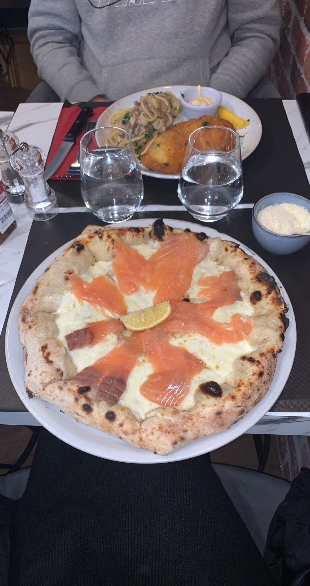 Mes copines et moi-même, nous nous sommes régalée. En entrée nous avons prit une burrata classique qui était excellente. En plat, pizza feu de bois au thon et pâte à la truffe et pâte saumon excellente. Le prix est très abordable. Je recommande et je reviendrai avec plaisir !!! Prenez le tiramisu café vous n’allez pas être déçu, délicieux!!!!