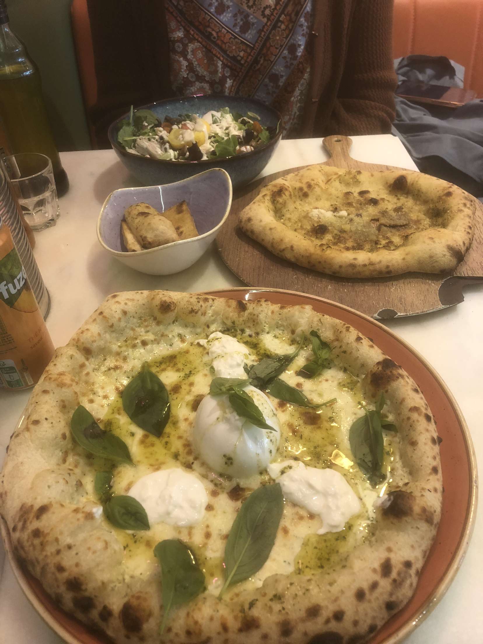 Accueil et service au top, très bonnes pizzas avec un large choix, je recommande le queen’s burrata, un plateau avec de la burrata à la truffe, de la burrata, stratacella et une bufala 🤩