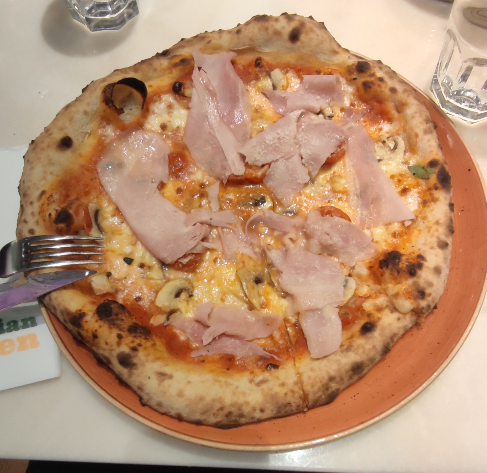 Le restaurant et sa décoration sont tellement adorables. La pizza n'était pas si spéciale, la bonne chose était une pâte très fine. L’endroit est tellement bondé qu’on s’entend à peine. Les tables sont si proches les unes des autres que les serveurs pouvaient à peine se déplacer entre les tables. Le service est relativement rapide. Vous avez la possibilité de commander vous-même.