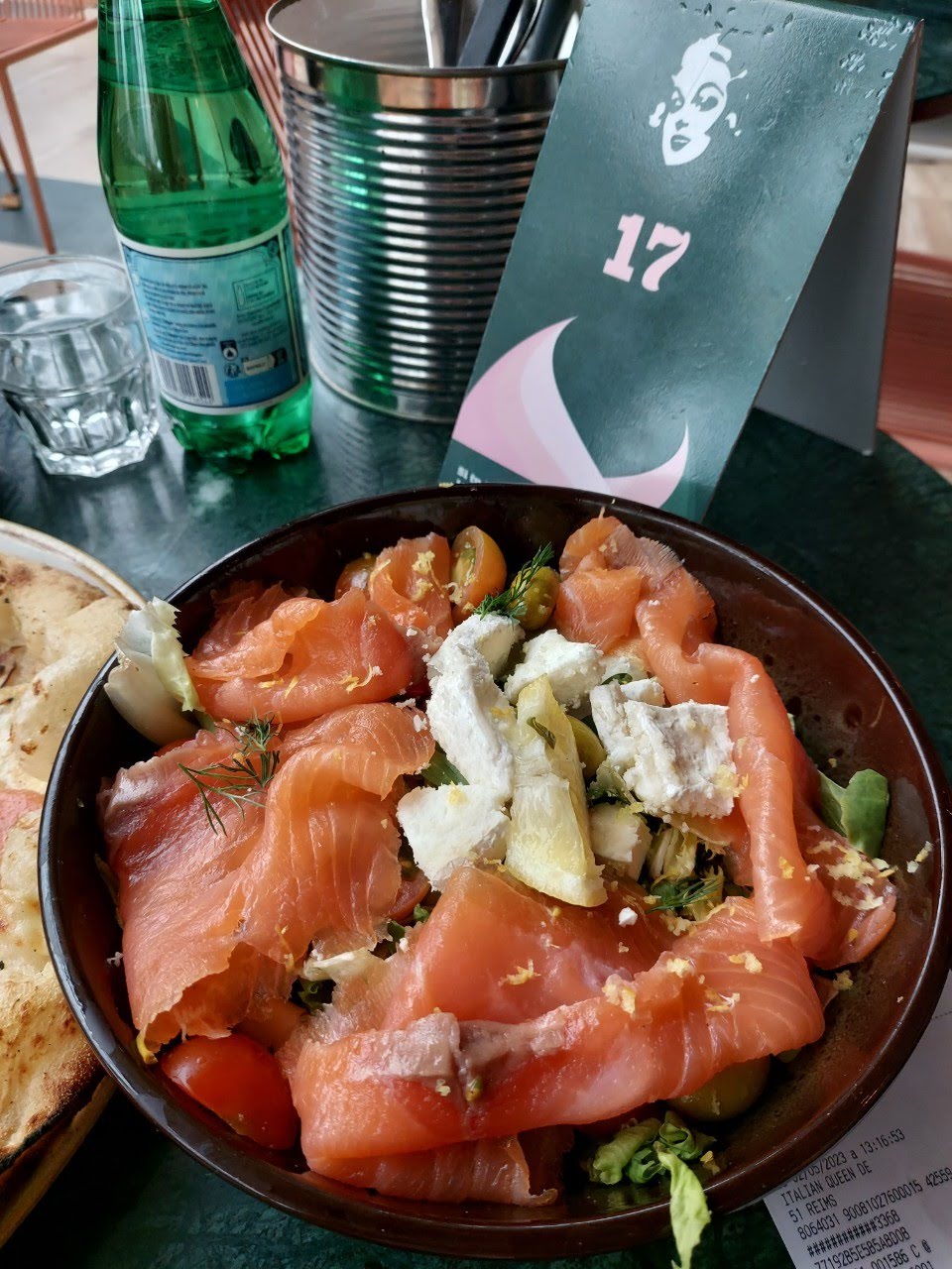La pâte à pizza est bonne et moelleuse ! Prix abordable, petit coup de cœur pour la pizza au Saumon 🥰