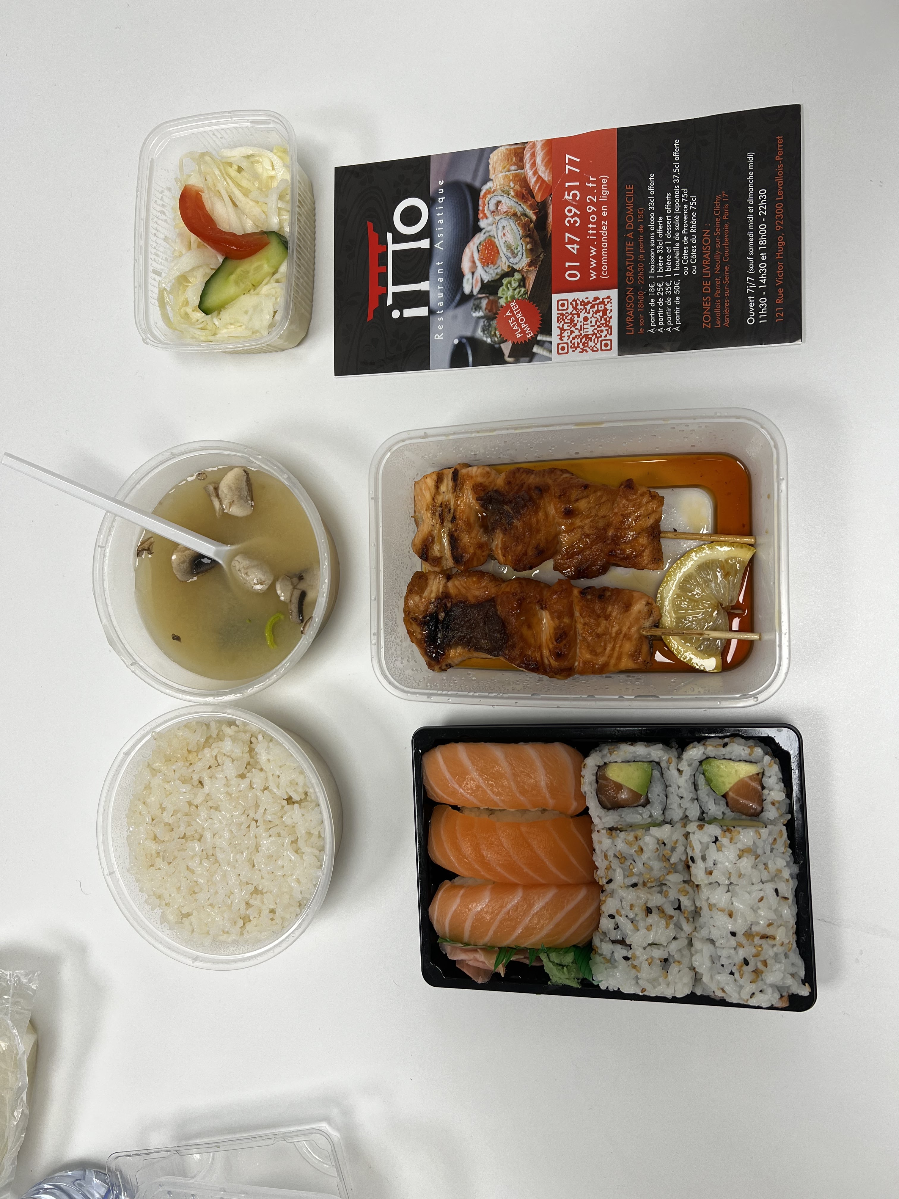 On commande toujours chez vous, on n'a jamais été décus, les prix sont abordables pour des sushis correctes et on adore la petite salade et la soupe qui viennent avec le menu :)