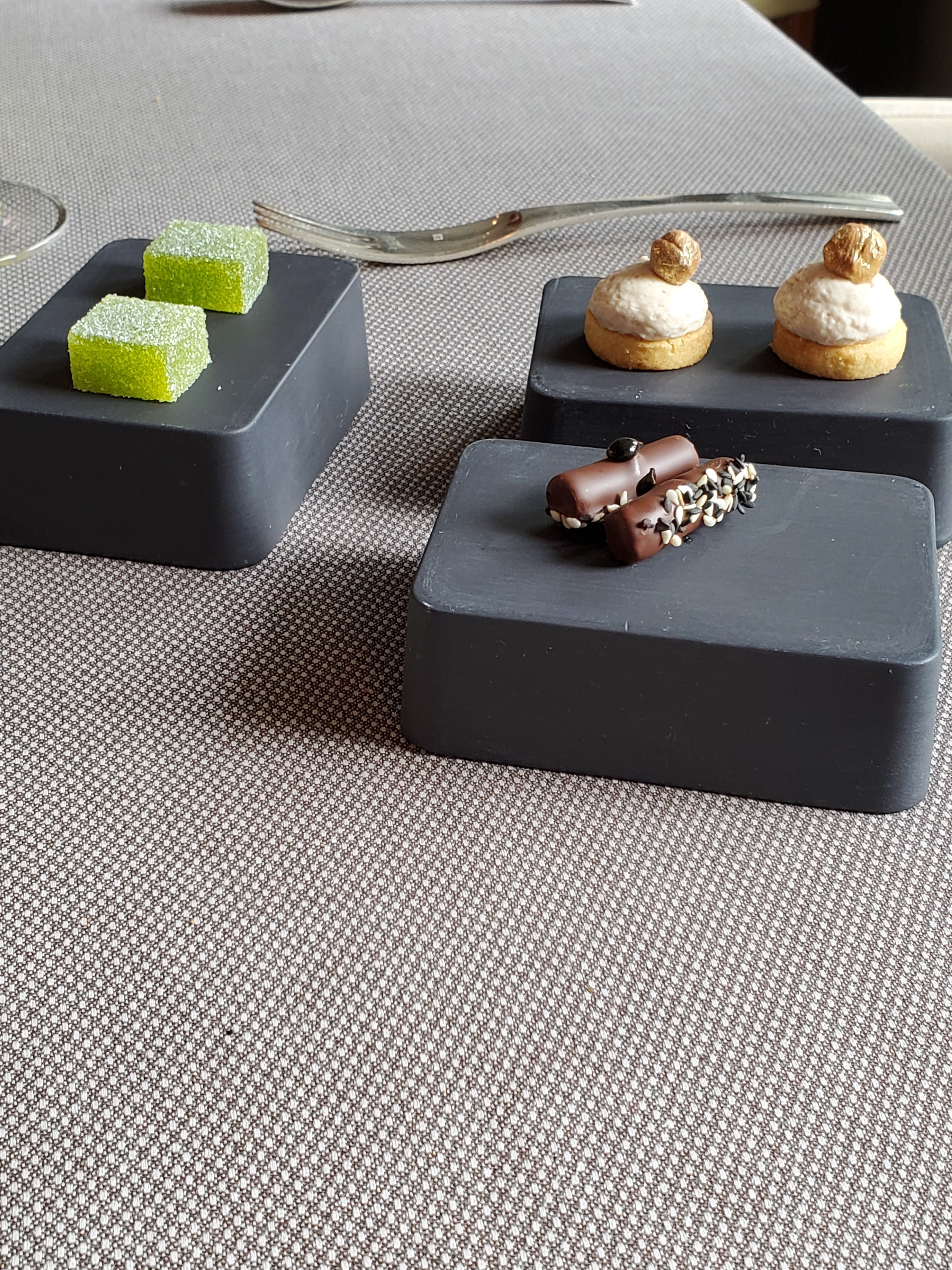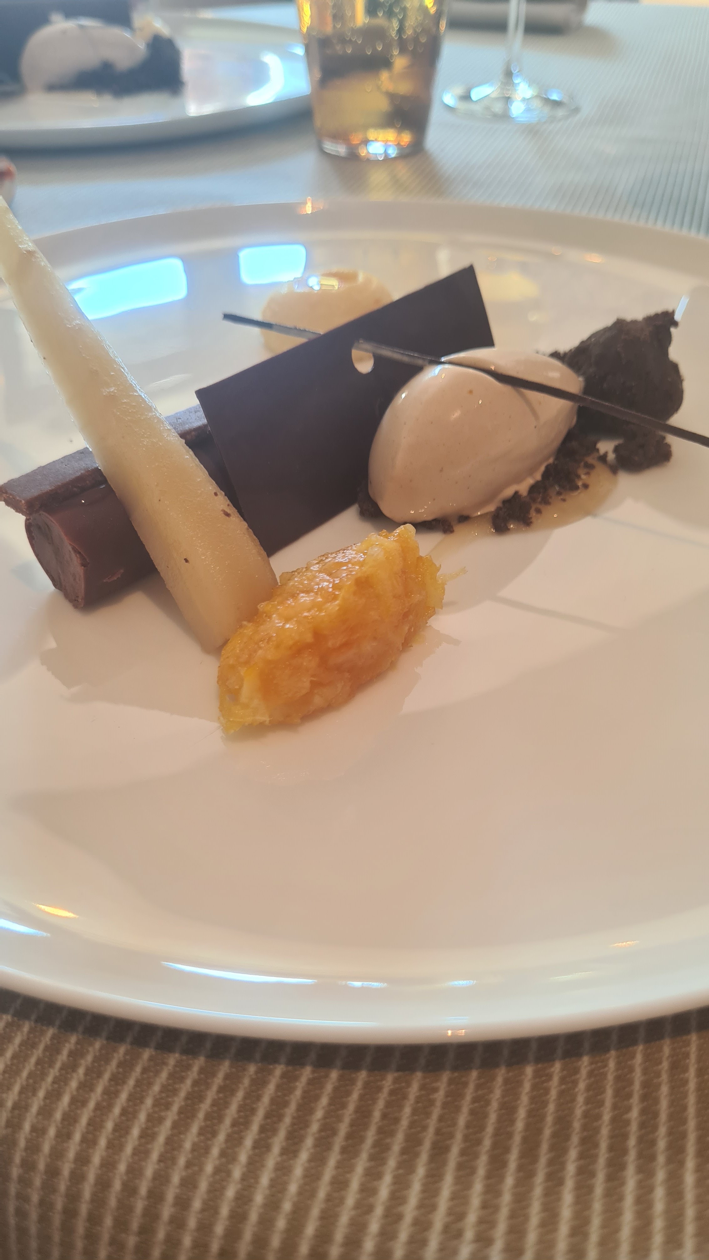 Très bon repas. Un bémol sur la fin du service. Nous sommes arrivés à 13h, le service du menu en 7 plats s'est effectué à une cadence soutenue et les deux desserts nous ont été en même temps. C'est dommage surtout quand les deux desserts comportent un sorbet. J'ai effectué moi même le service de la fin de notre bouteille d'alcool. Ma femme ne s'est pas vue proposé de mignardises avec son café. Pour finir à 15h30 le serveur nous a expliqué qu'il devait partir et qu'en cas de besoin on devait s'adresser à la réception. Dommage pour un restaurant étoilé.