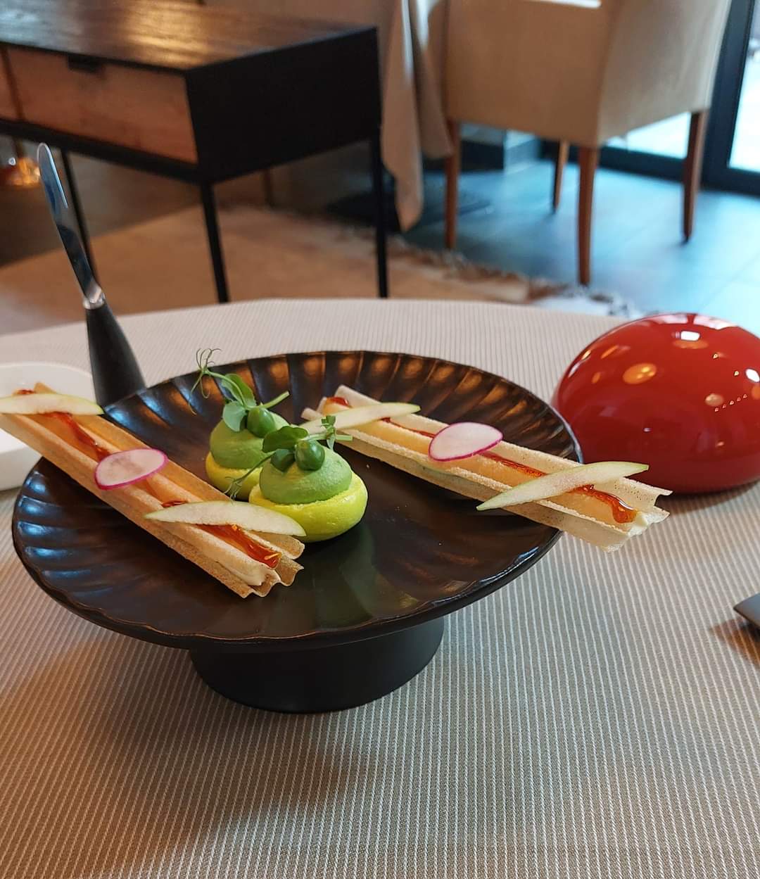 Nous avons passé un petit séjour à l'hôtel, avec mon chien, tout le personnel était au petit soin tout en étant discret. Nous avons mangé au restaurant le soir de notre arrivée, nous avons passé une super soirée, le chef et son équipe on réussi à faire manger des fruits à mon ami alors qu'il déteste vraiment ça! Tous les plats étaient maîtrisés, avec originalité! Ca donne des idées, pas pour cuisiner, mais pour revenir! Le personnel de salle était top également, malgré le masque on a sentis le sourire, la bonne humeur de tous les membres du personnel alors un grand merci pour nous avoir fait passer un beau séjour. Un grand merci à tous et à bientôt