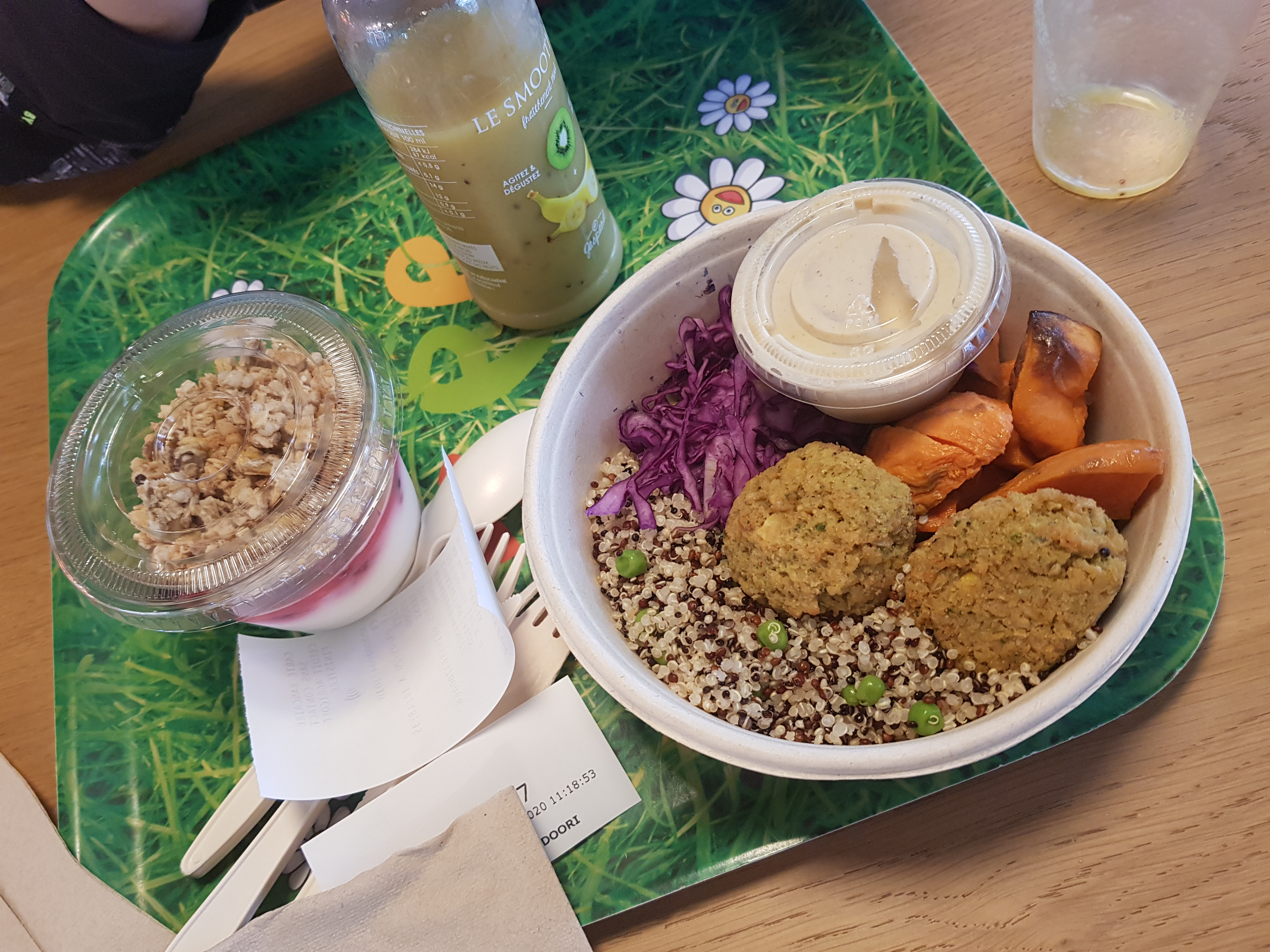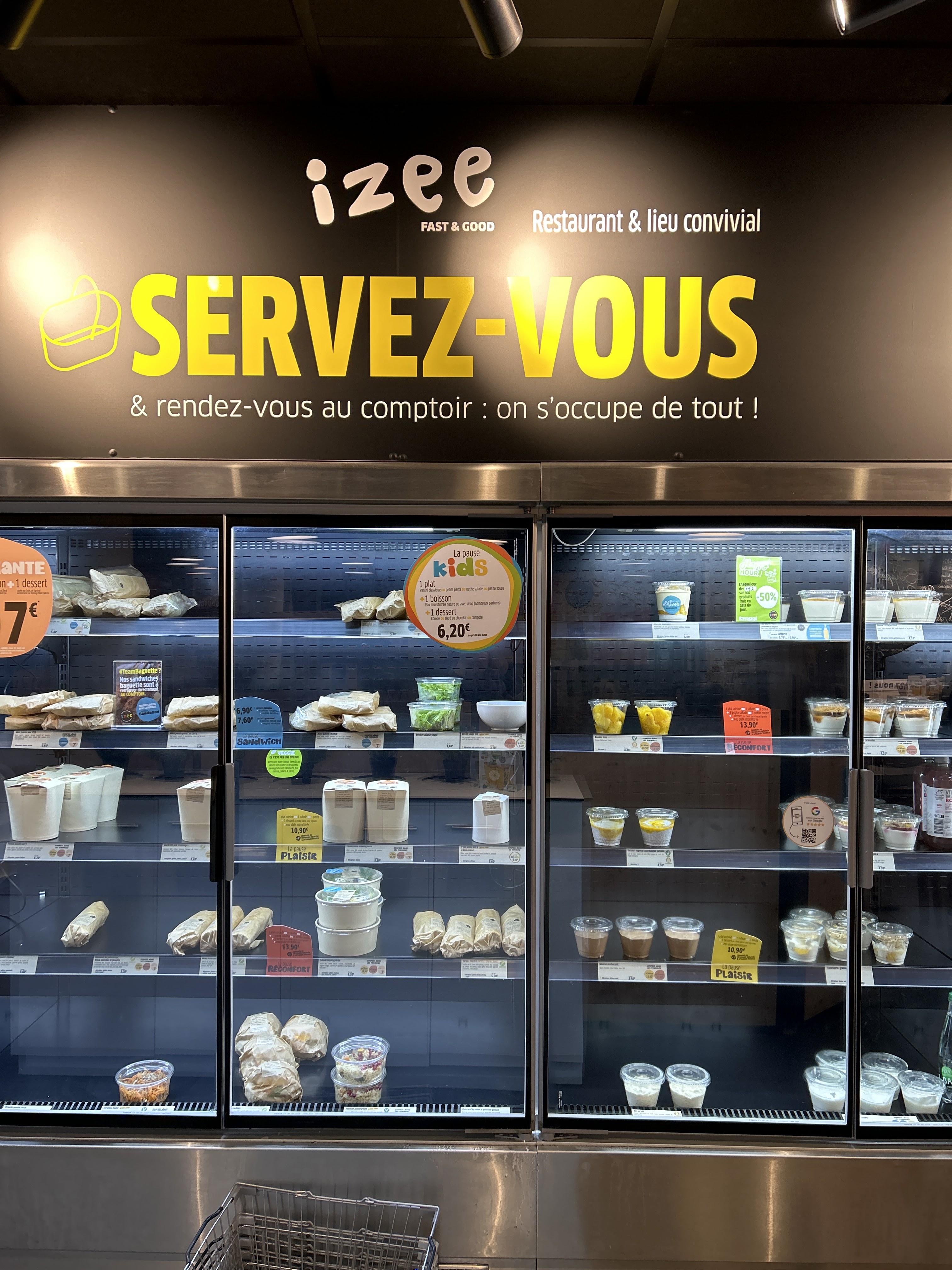 Visite chez izee pour la première fois. Et, j’ai découvert un drôle de concept. On choisit le plat chaud dans un frigo qu’on nous réchauffe ensuite. Pas d’assiette, pas de verre 😳. Je suis pas sûr que se soit très bon pour la santé et la planète de manger dans du carton. Cependant, on a bien mangé. Les serveurs étaient sympa et ont compris qu’on était des novices.