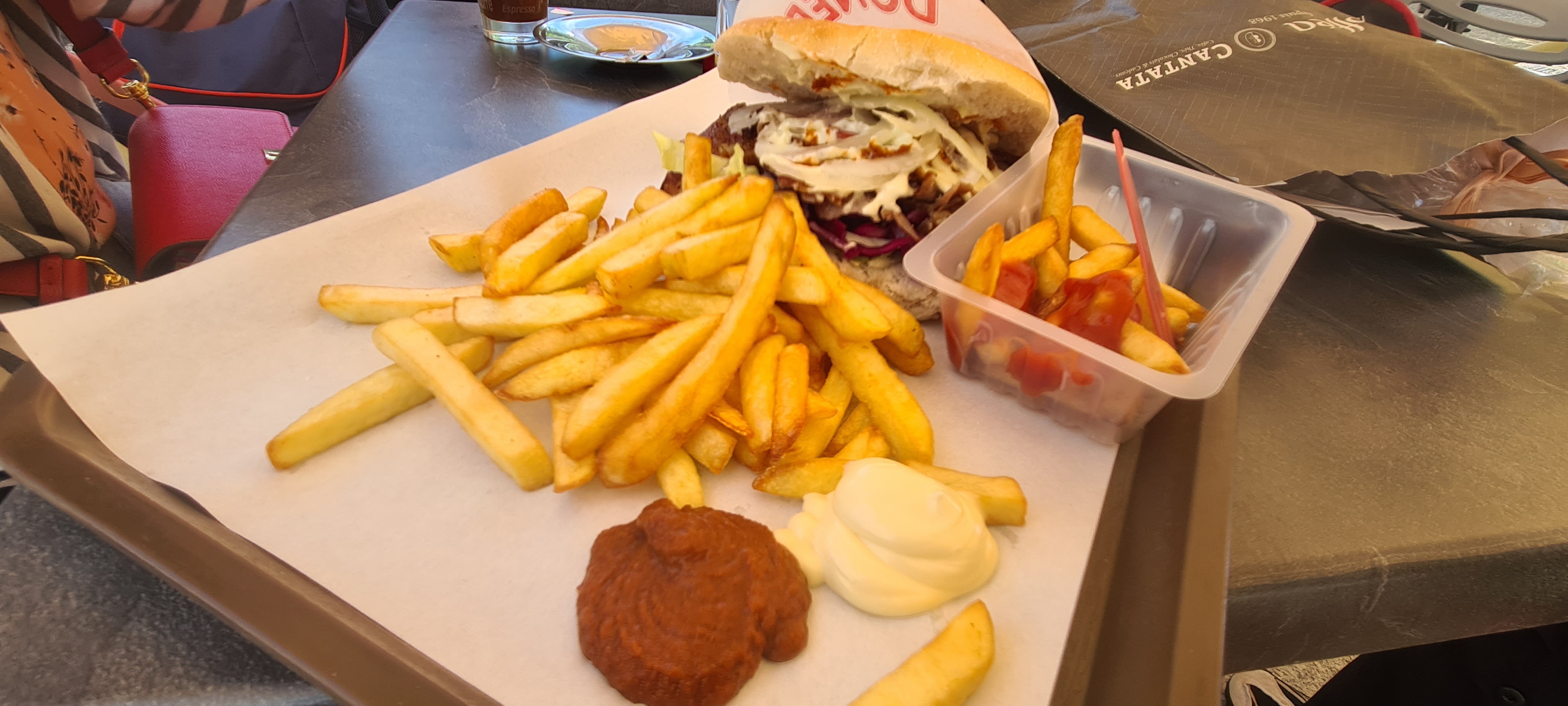 Le serveur (petit de taille clope à la main h24) à des regards gênants sinon bon kebab